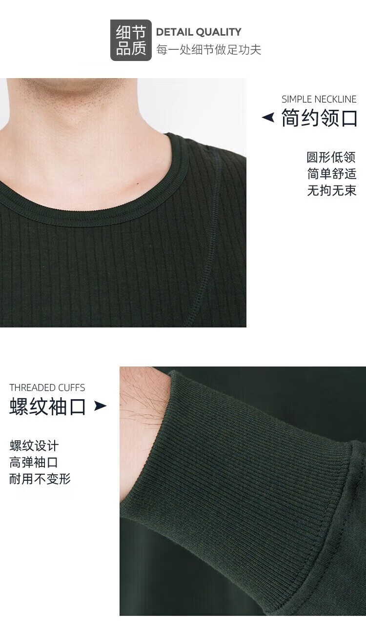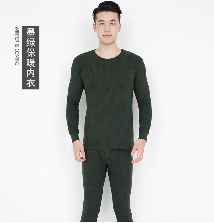 To commemorate military fans, autumn clothes and long trousers set, thermal underwear, men's thickened cold-proof and warm round neck underwear set for military fans, autumn clothes and trousers, dark green 175/92-96
