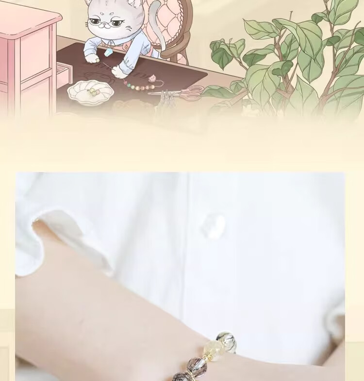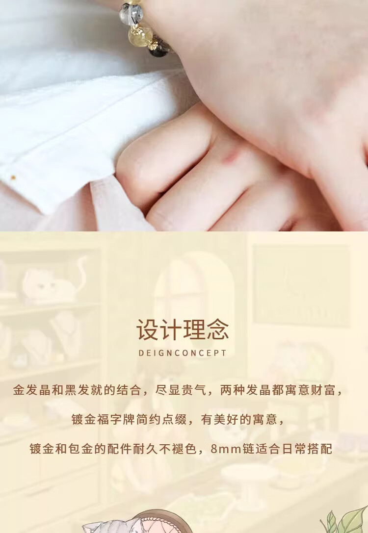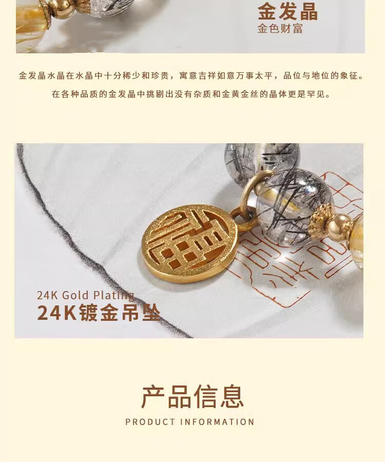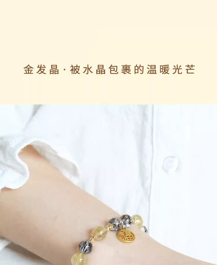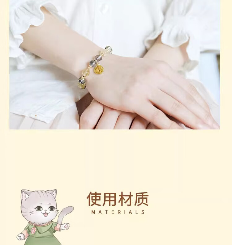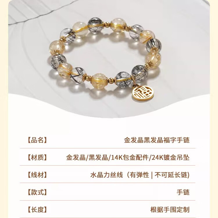 BOSFRU High-quality Blonde Crystal Bracelet Black Hair Crystal Chinese Style Fu Crystal Bracelet Black Hair Crystal Gift for Best Friend Jewelry Suitable for Clean Hands 14cm
