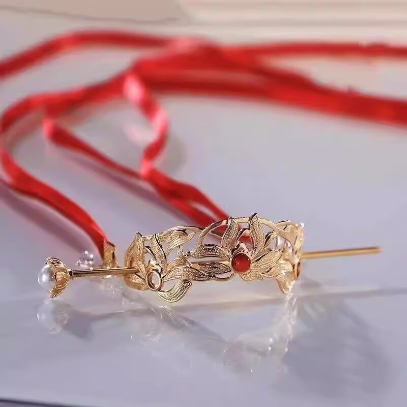 Tang Funi ancient style Hanfu headdress for girls, hairpin, horse-faced skirt, Chinese style children's hairpin, hairpin, costume streamer accessories, full set of hair accessories, hairpin + hairpin + streamer