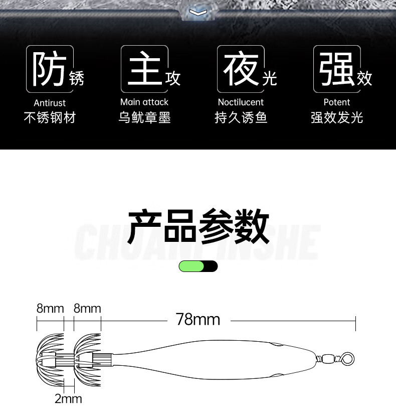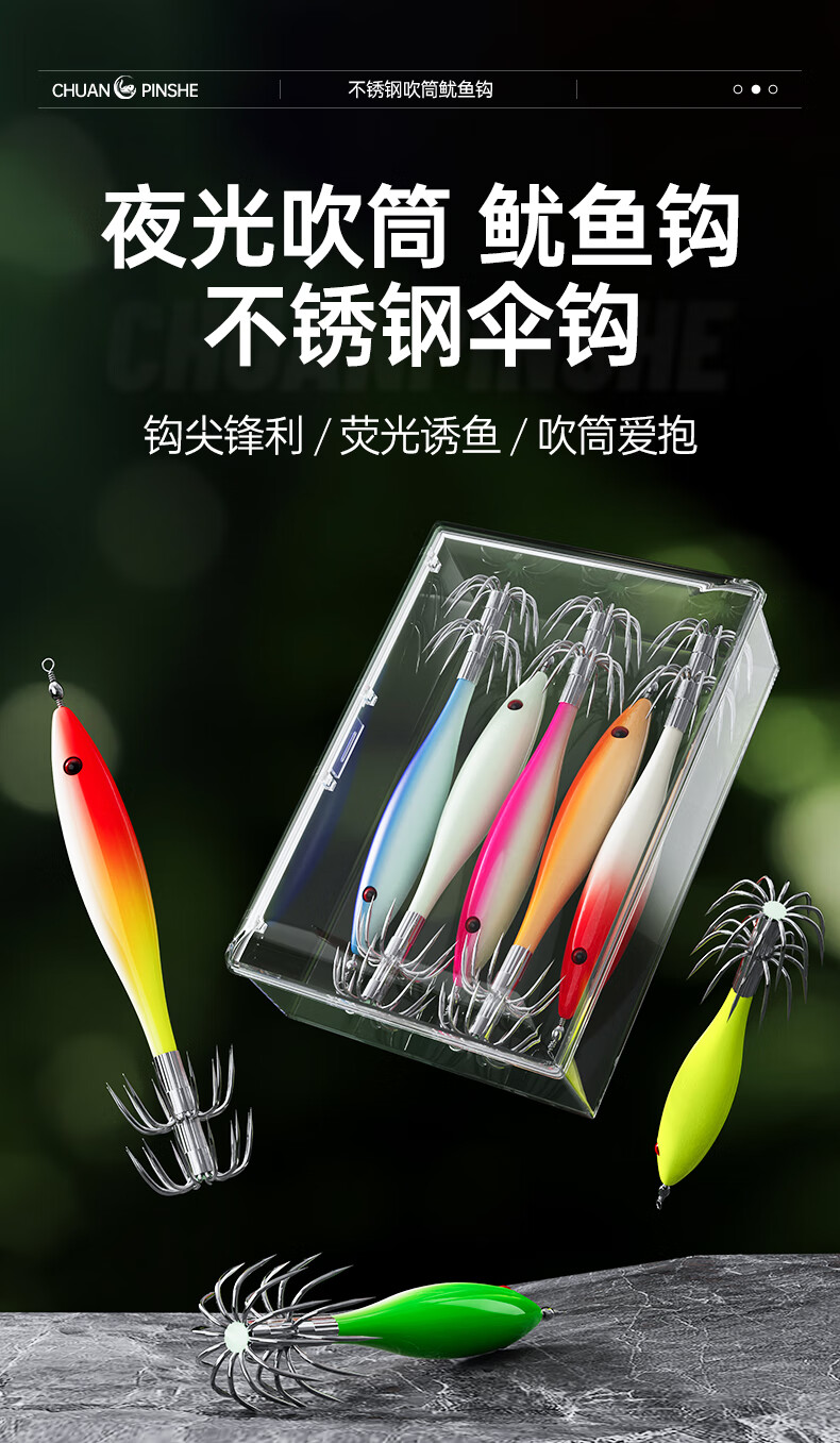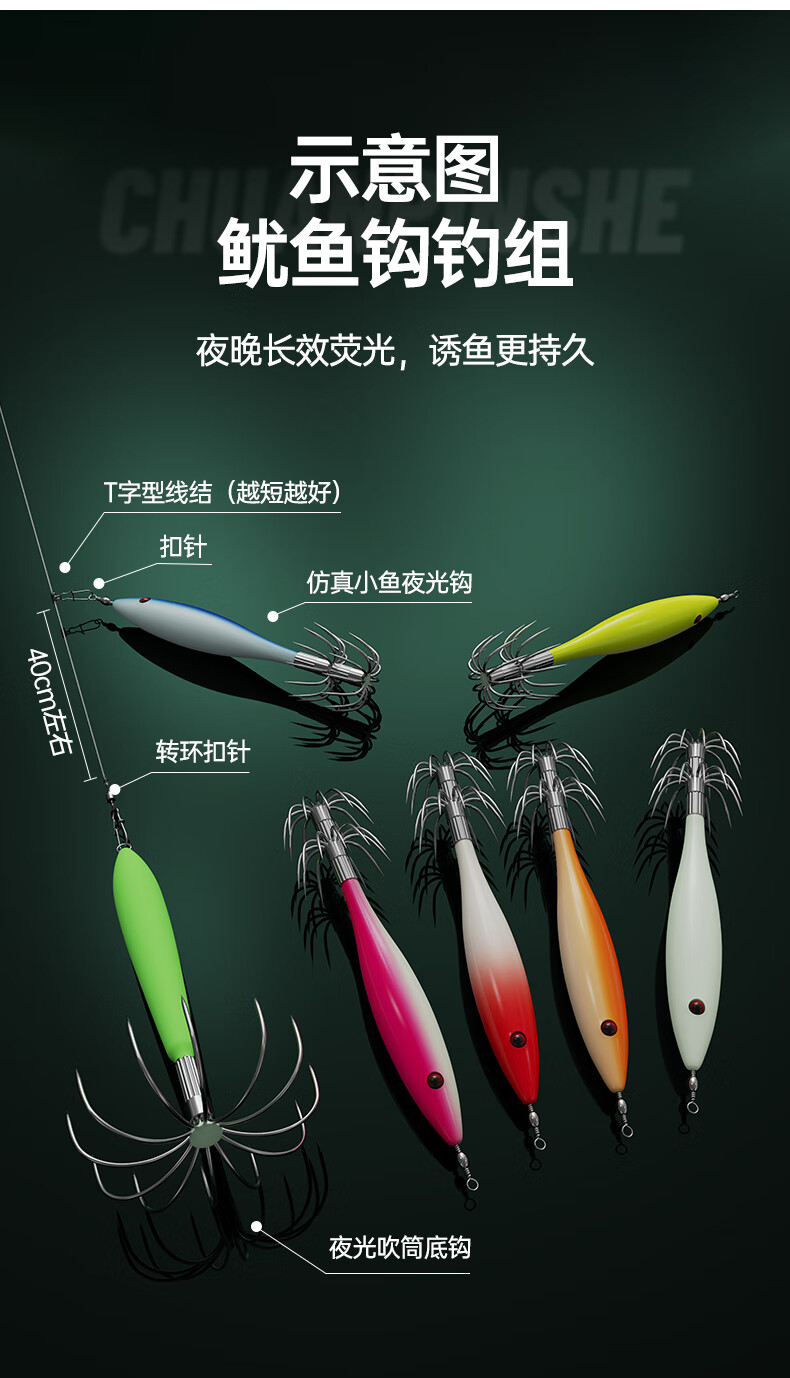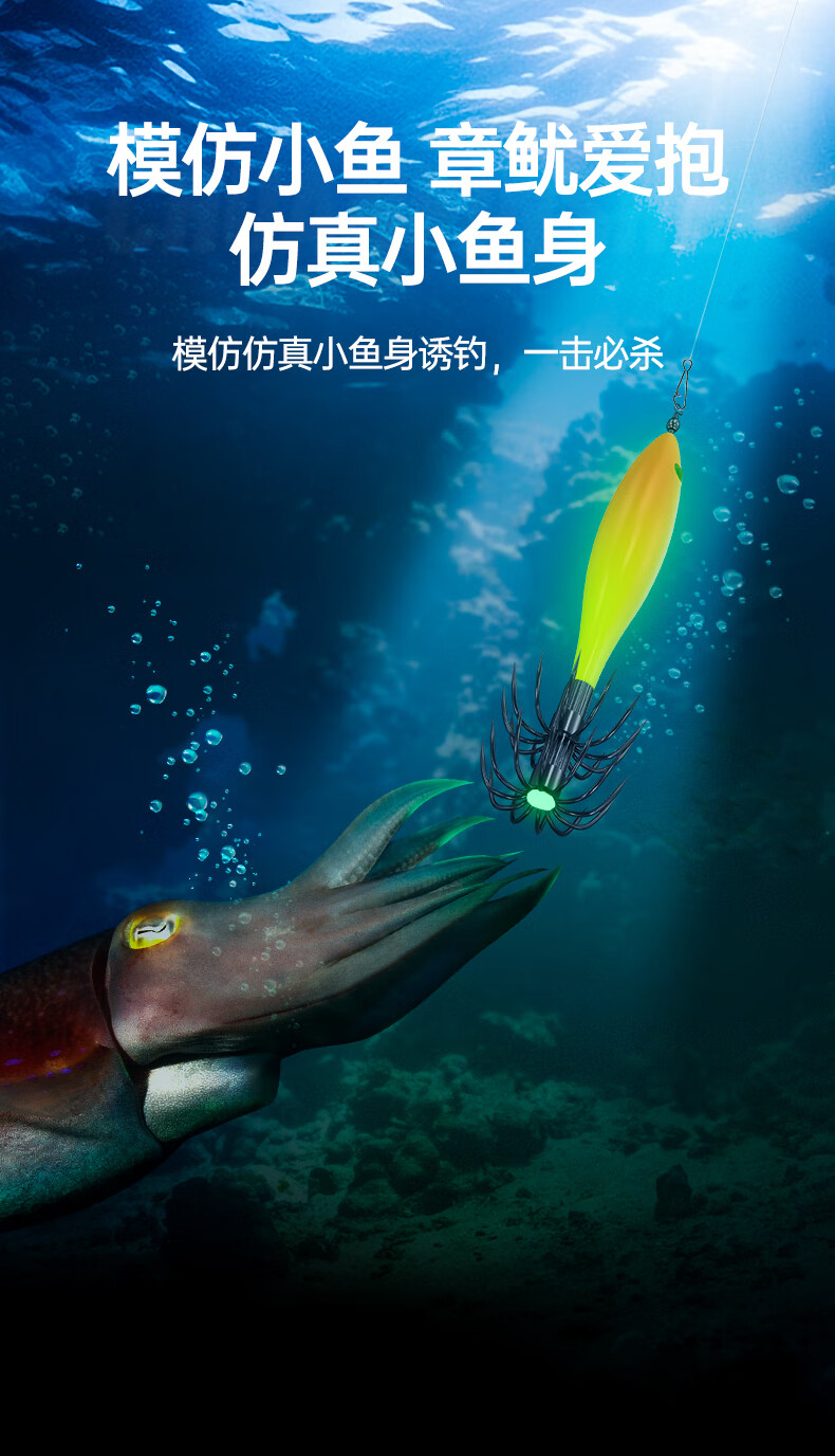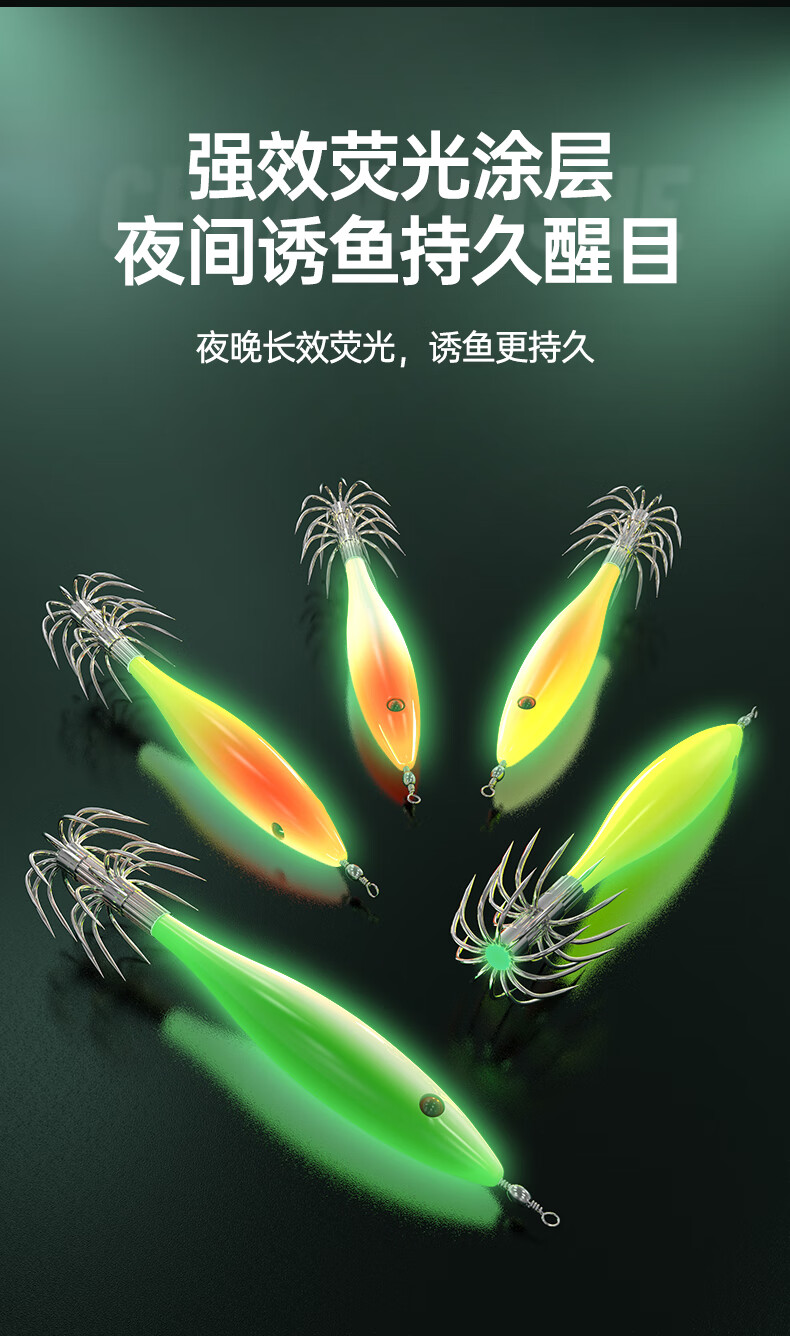 Kawapinshe blow tube artifact mini squid hook luminous octopus fish hook sea fishing boat fishing cuttlefish squid stainless steel rocket wood shrimp mix and match luminous 5 boxes random color