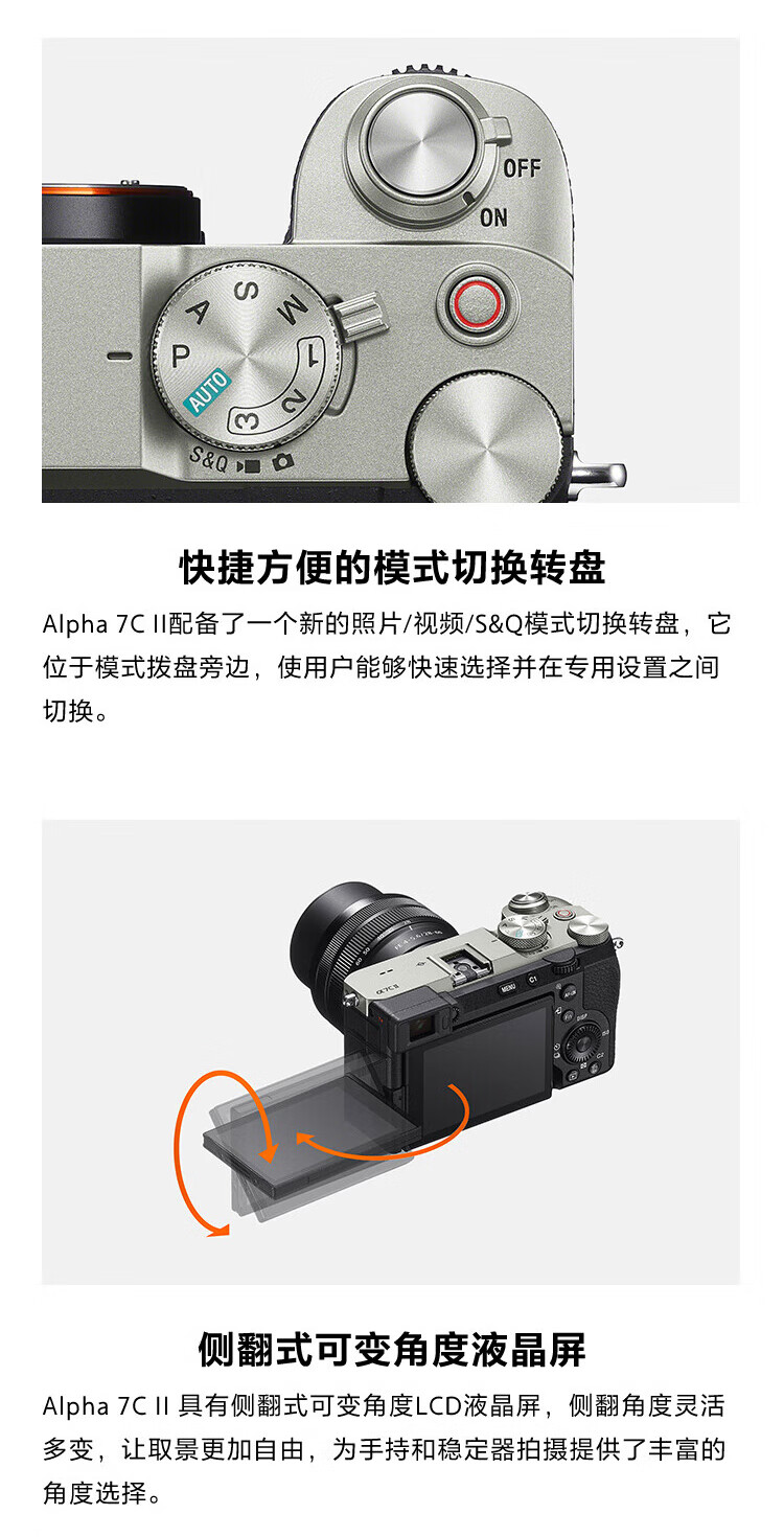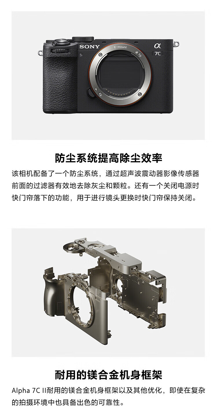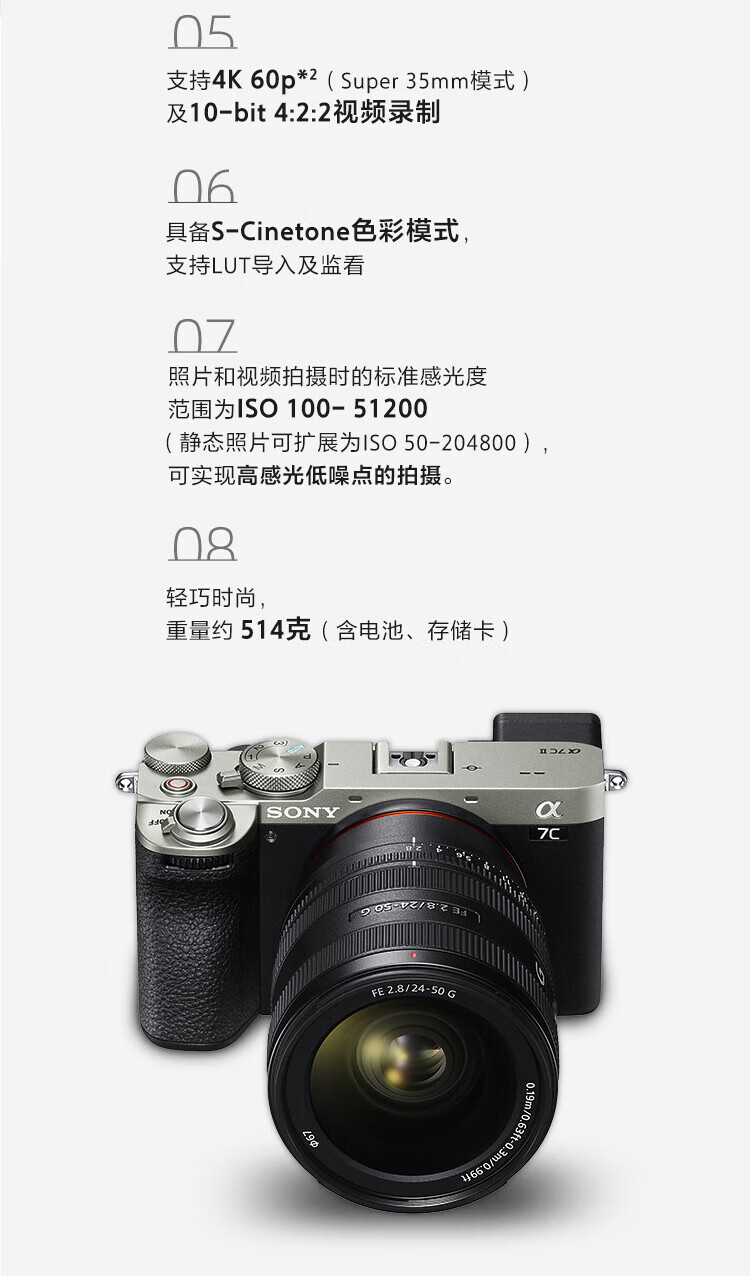 Sony (SONY) Alpha 7C II new generation full-frame dual image small 7 A7C2 A7C second generation A7Cii silver stand-alone, free 128G card + camera bag + battery + leather case, etc. Official standard configuration