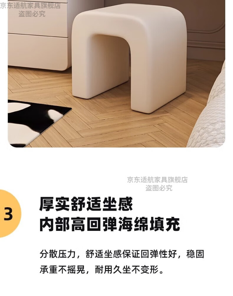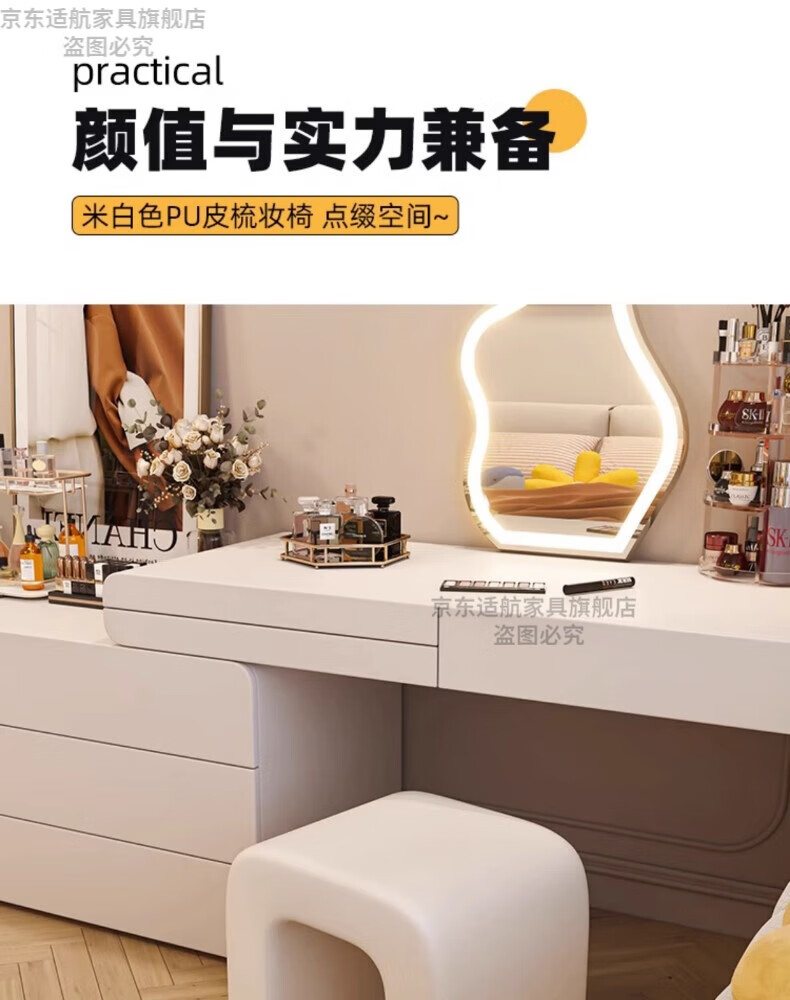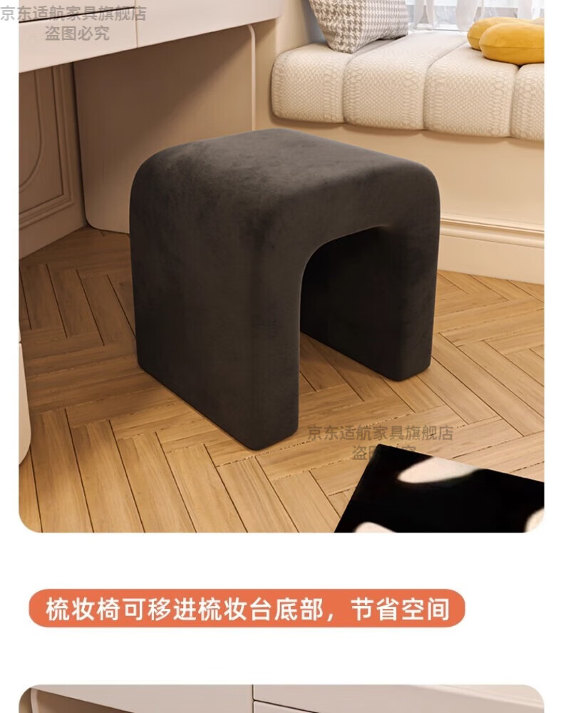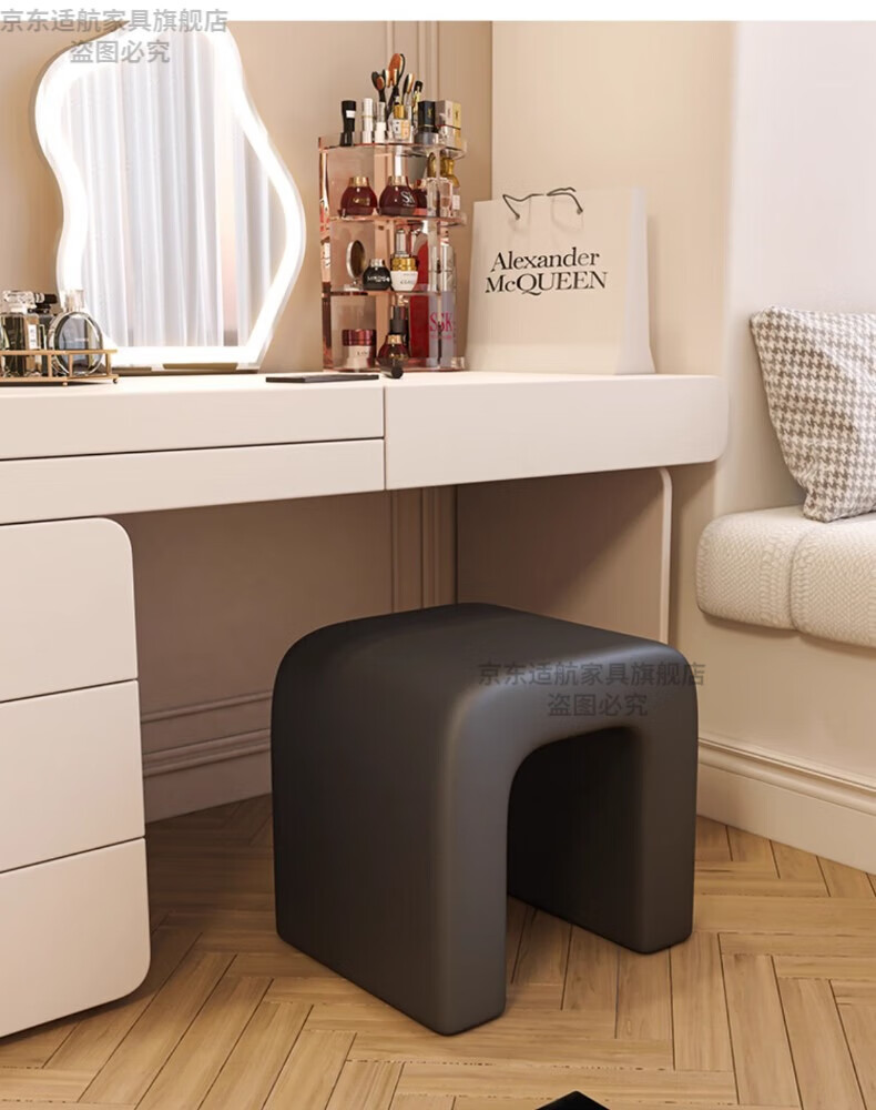 Seaworthy dressing stool, dressing table chair, bedroom light luxury and high-end dressing chair, cream style dressing chair, modern simple stool, off-white PU leather