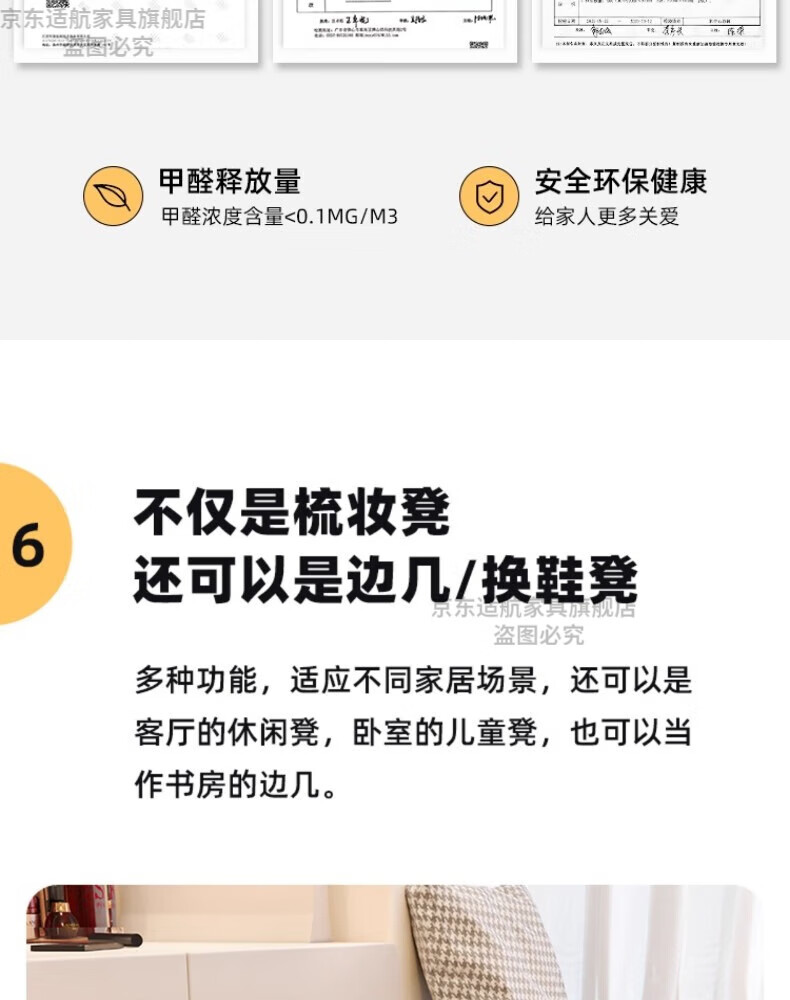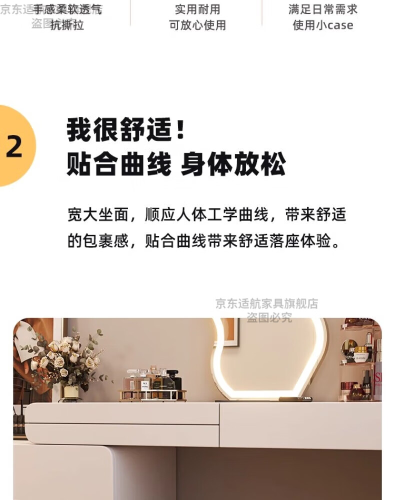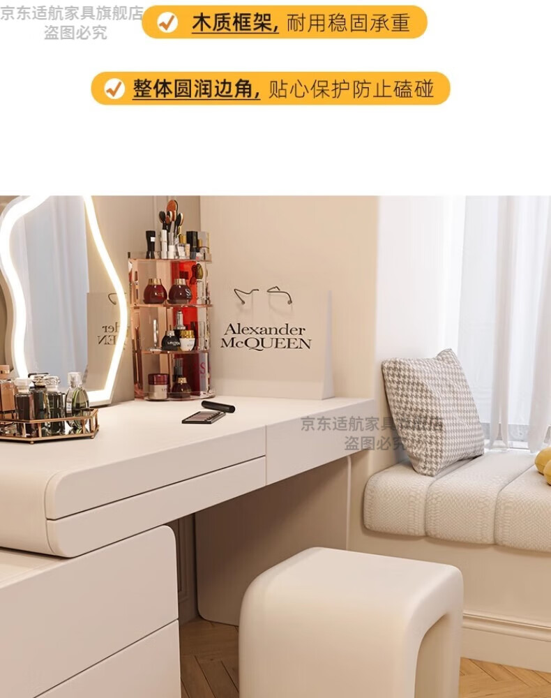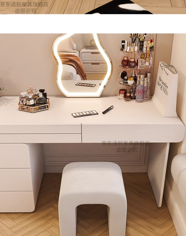 Seaworthy dressing stool, dressing table chair, bedroom light luxury and high-end dressing chair, cream style dressing chair, modern simple stool, off-white PU leather