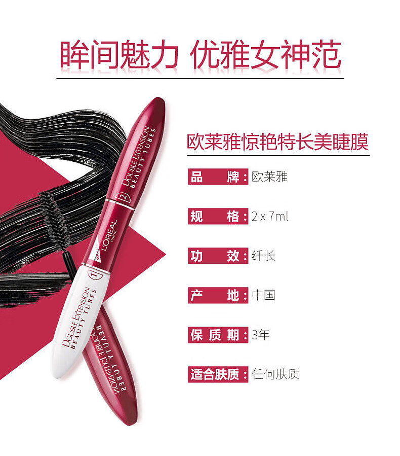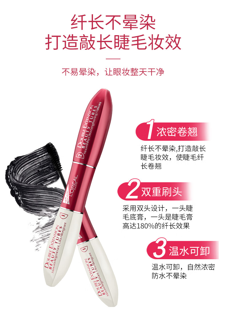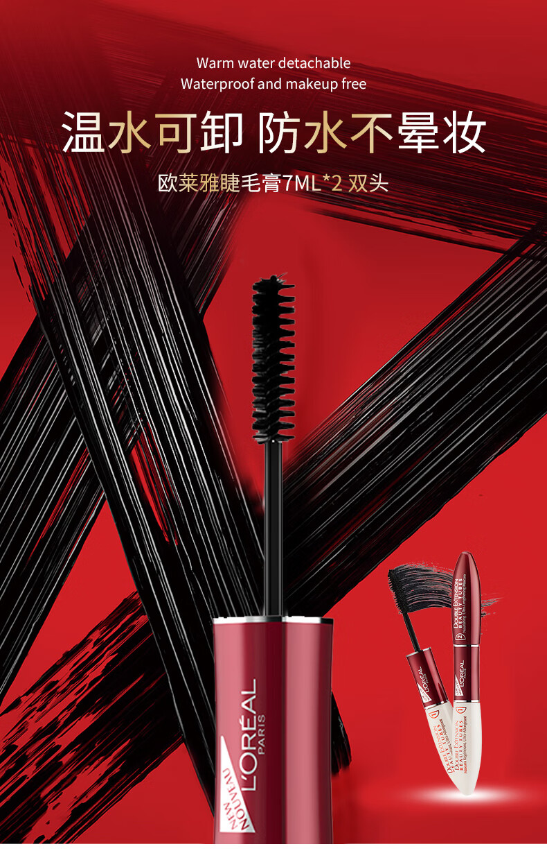 L'Oreal Mascara Stunning Special Long Double-ended Eyelash Mask Slim and Curly Waterproof Not Easy to Smudge Natural Roots Defined and Styled Slim Magic Tube Mascara 14ml #01 Black