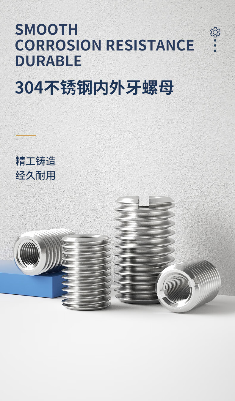 Guwanji 304 stainless steel internal and external tooth conversion nut variable diameter brace screw sleeve thread sheath national standard fasteners without slot M4xM6x10 (5 pieces)