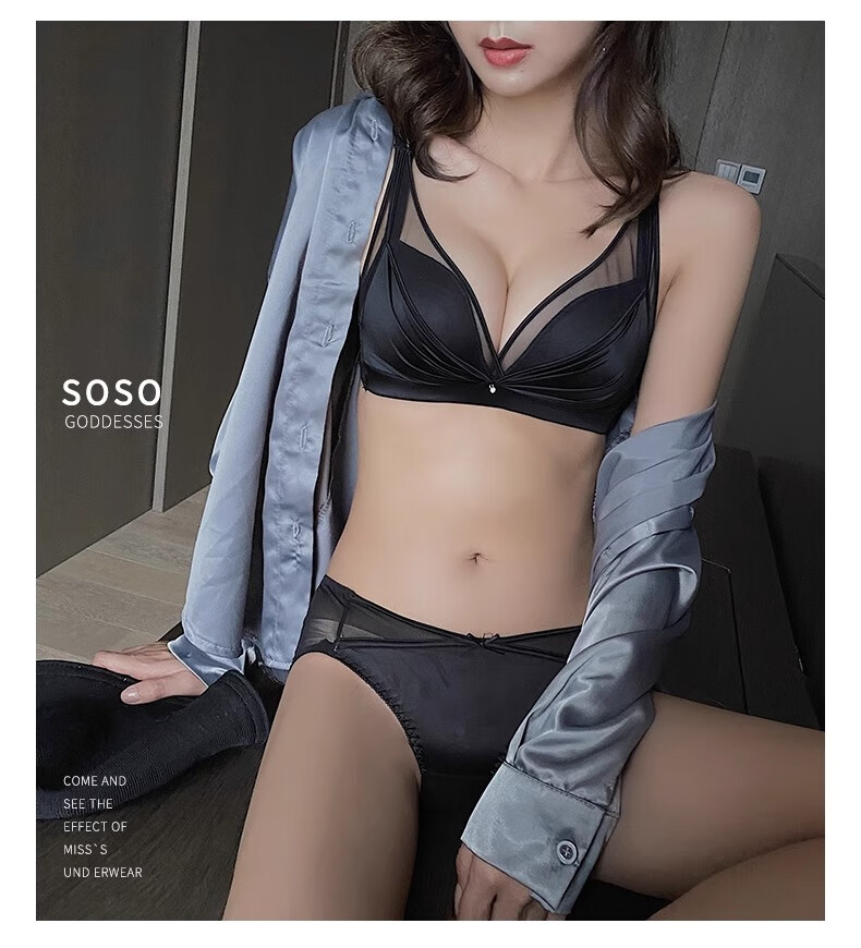 Aimu Qiuxia brand underwear for women without wire bra, small breast push-up, secondary breast adjustment type, birth year thickened bra set, blue set 36/80A