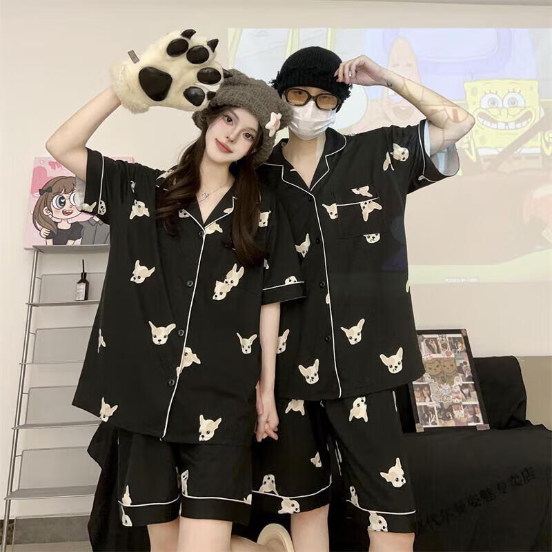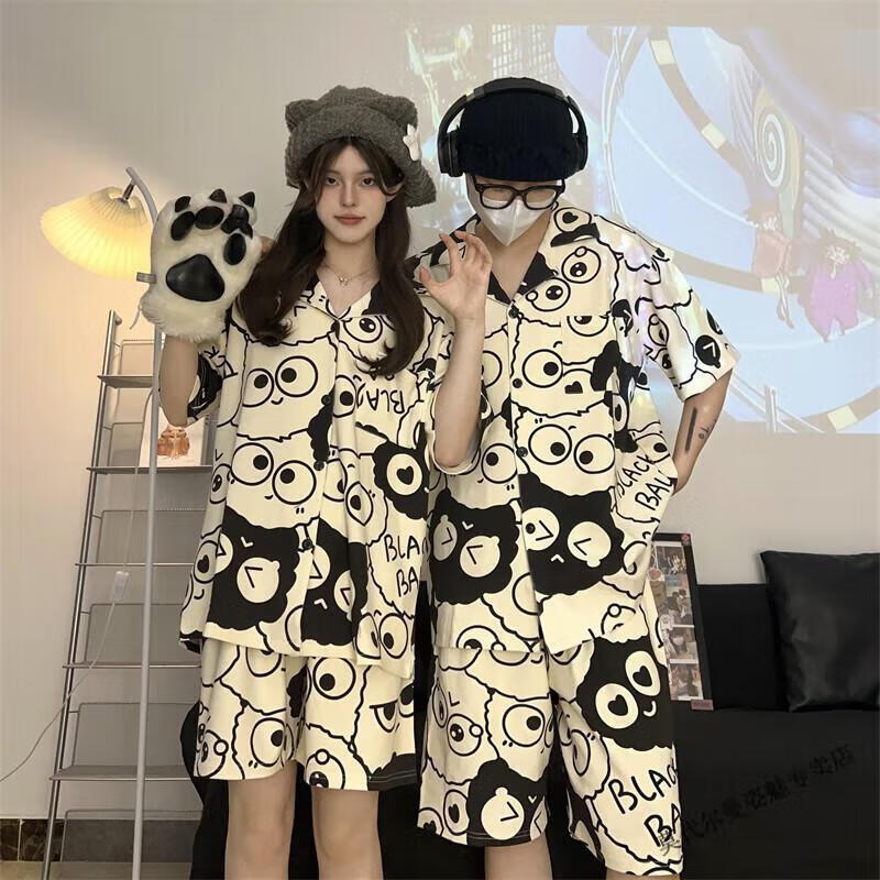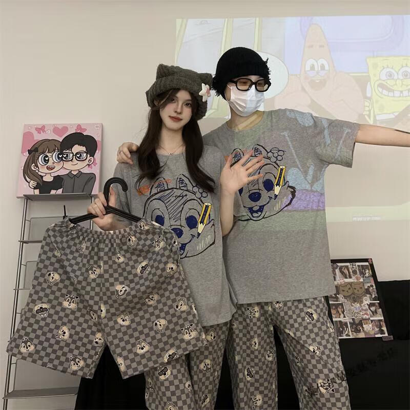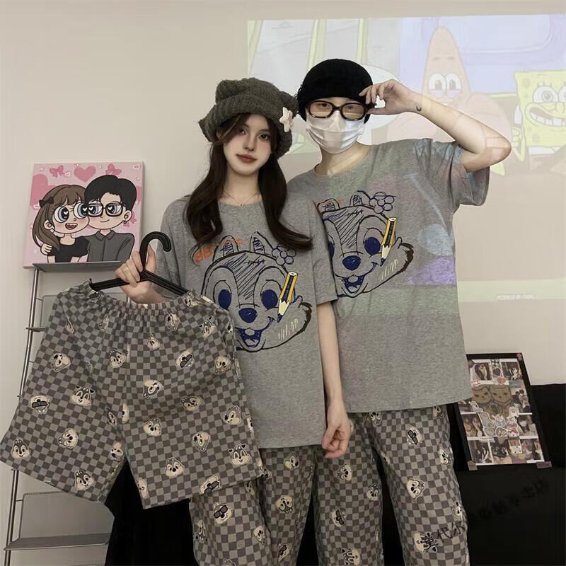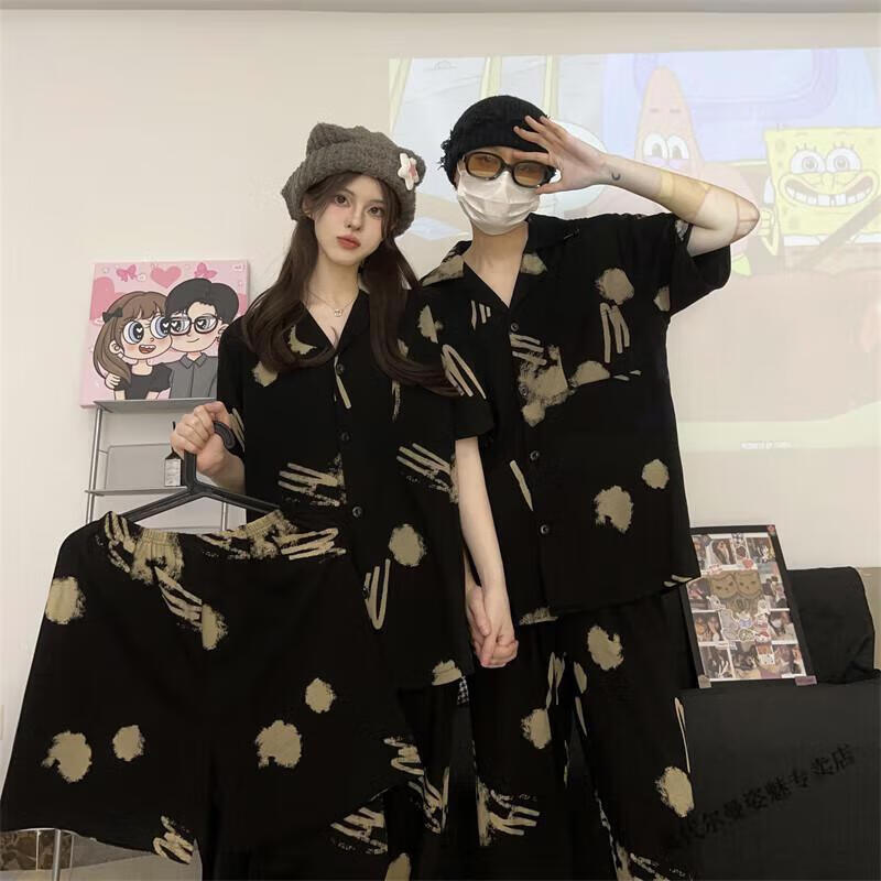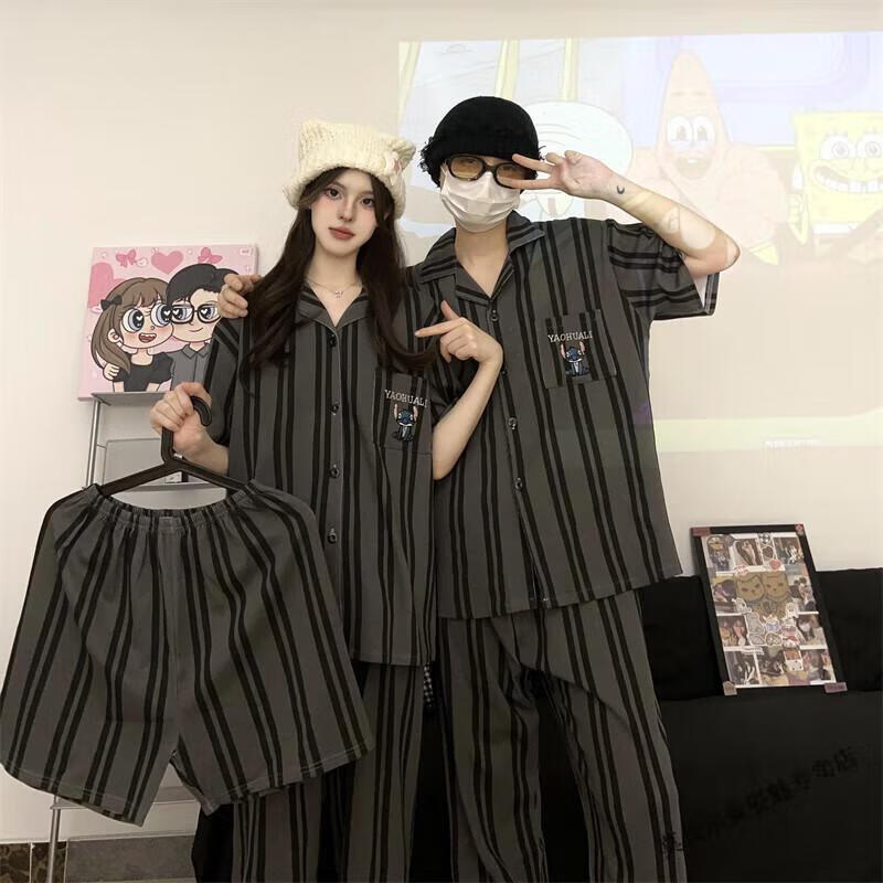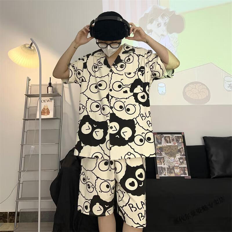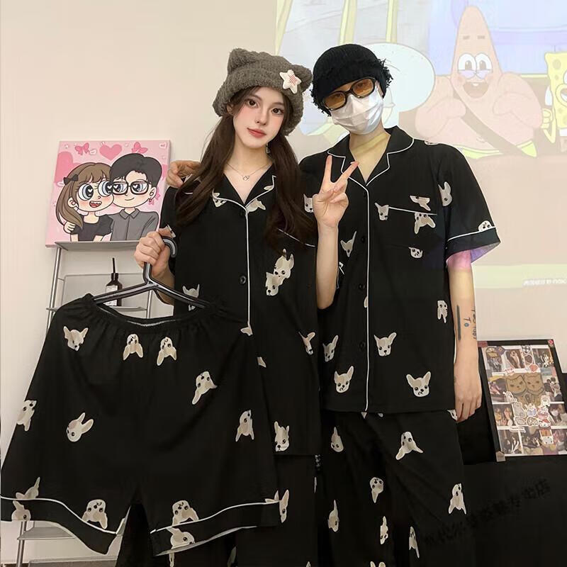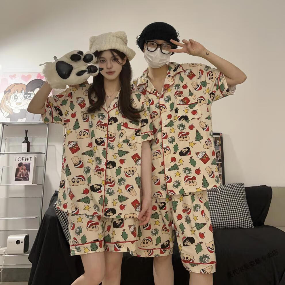 Modal Japanese cute Crayon Shin-chan couple pajamas for women summer pure cotton short-sleeved summer men's home wear three-piece suit White Crayon Shin-chan short sleeves + shorts + trousers Men's L size 90-120 Jin Jin equals 0.5 kg Wear