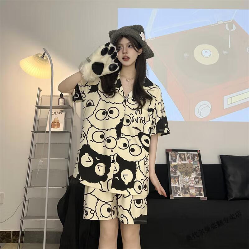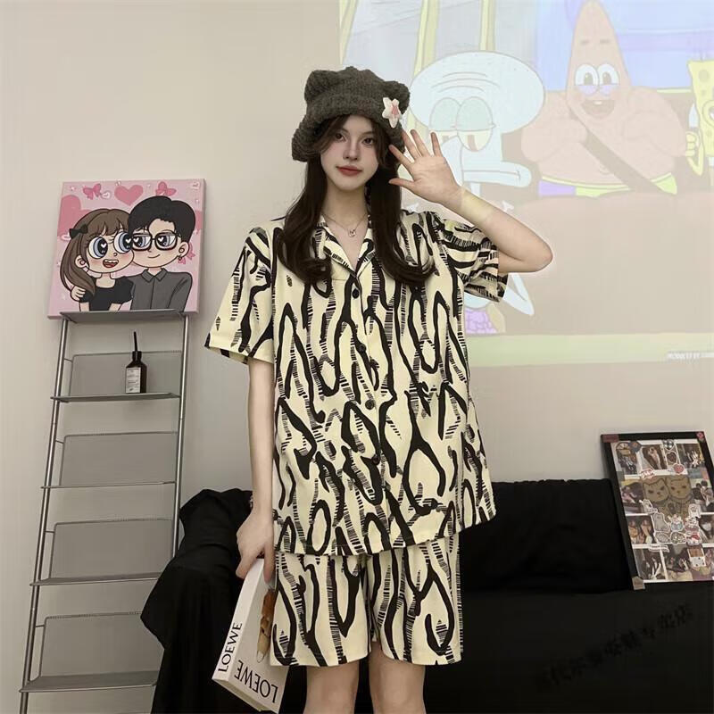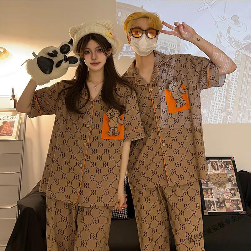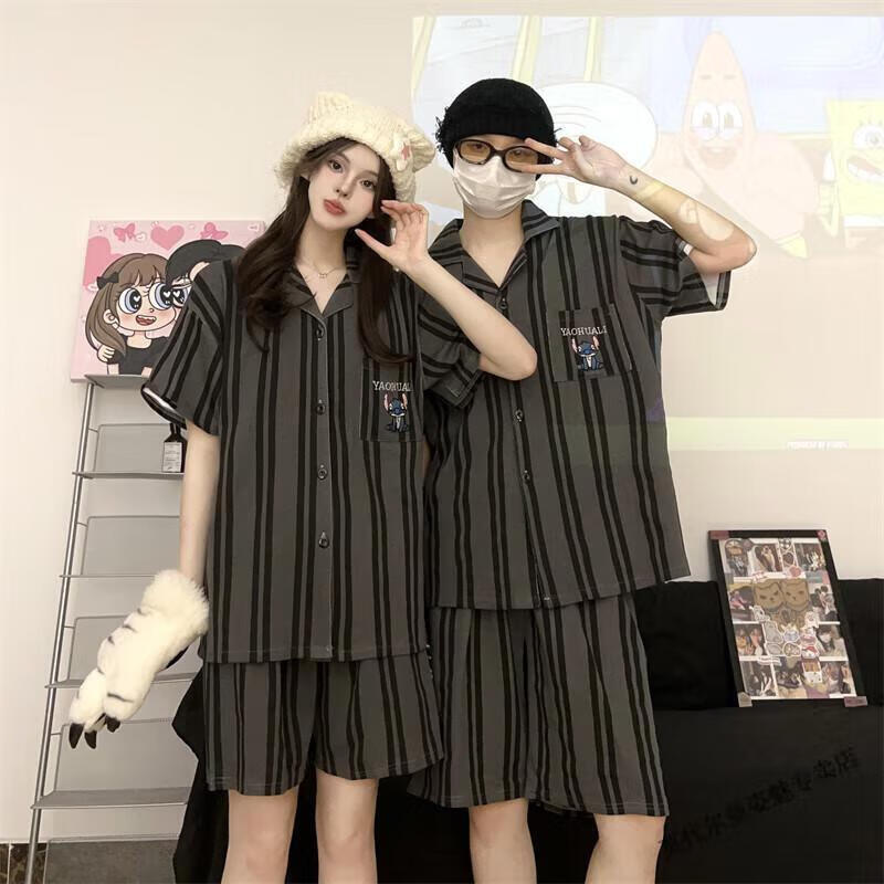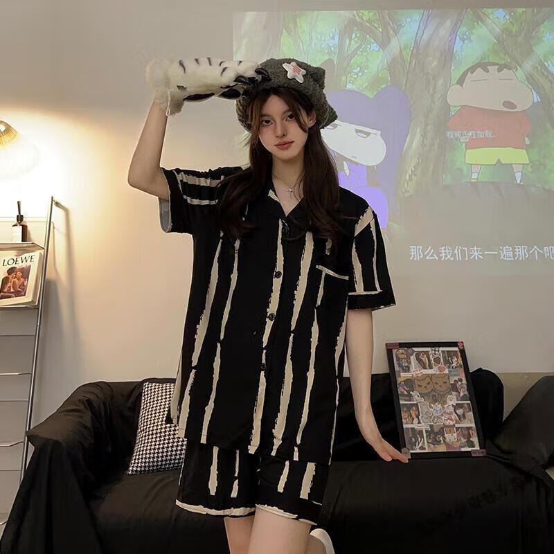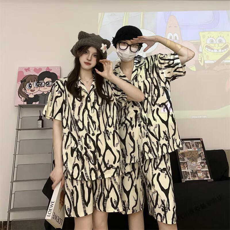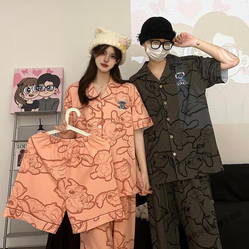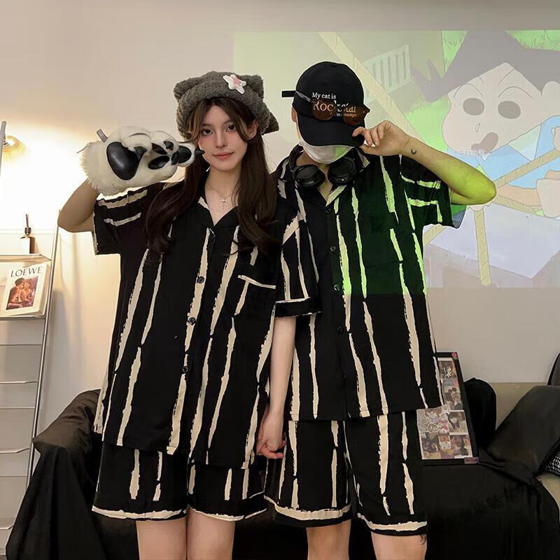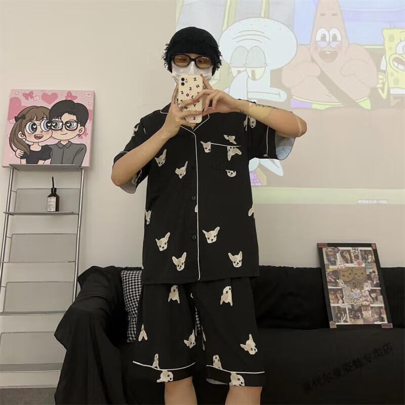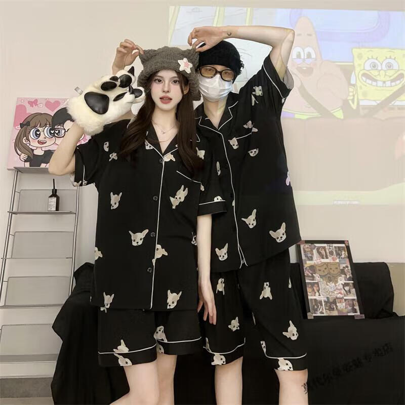 Modal Japanese cute Crayon Shin-chan couple pajamas for women summer pure cotton short-sleeved summer men's home wear three-piece suit White Crayon Shin-chan short sleeves + shorts + trousers Men's L size 90-120 Jin Jin equals 0.5 kg Wear