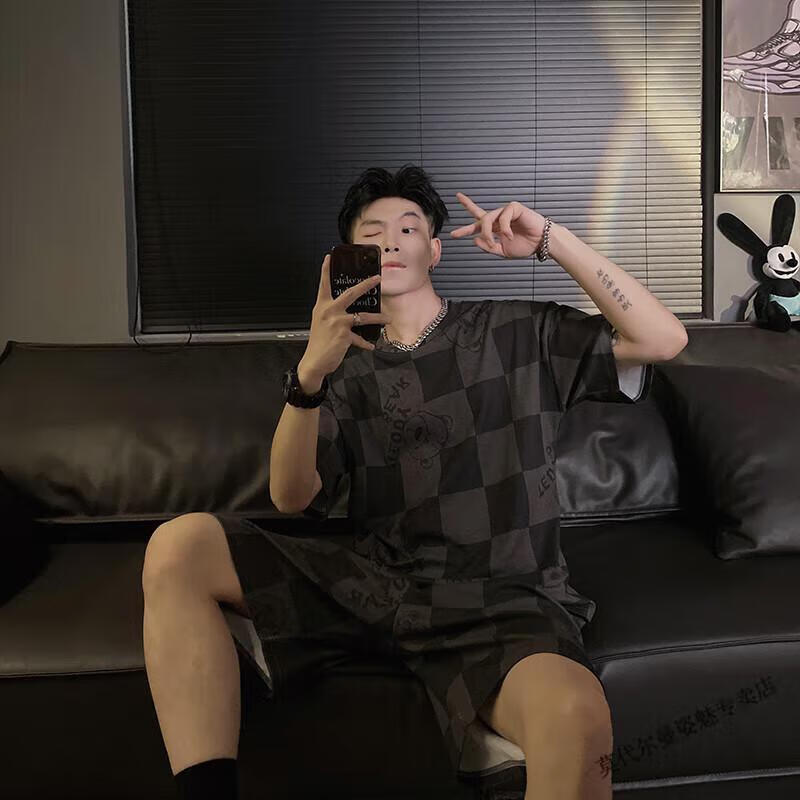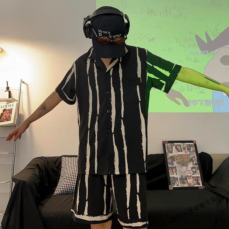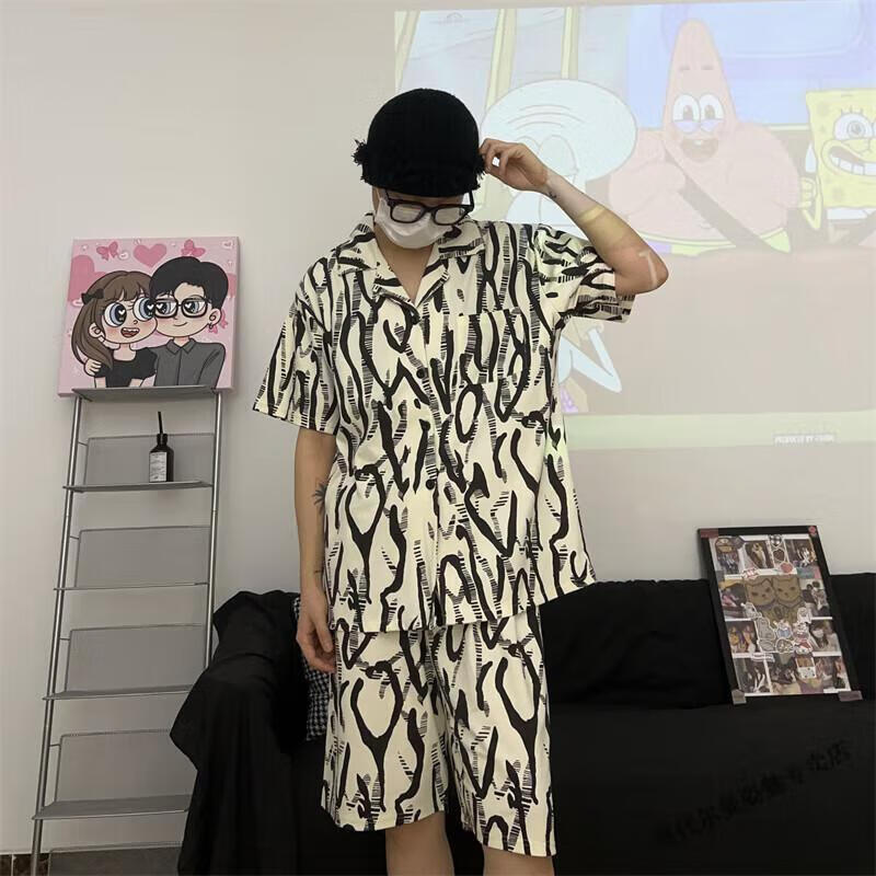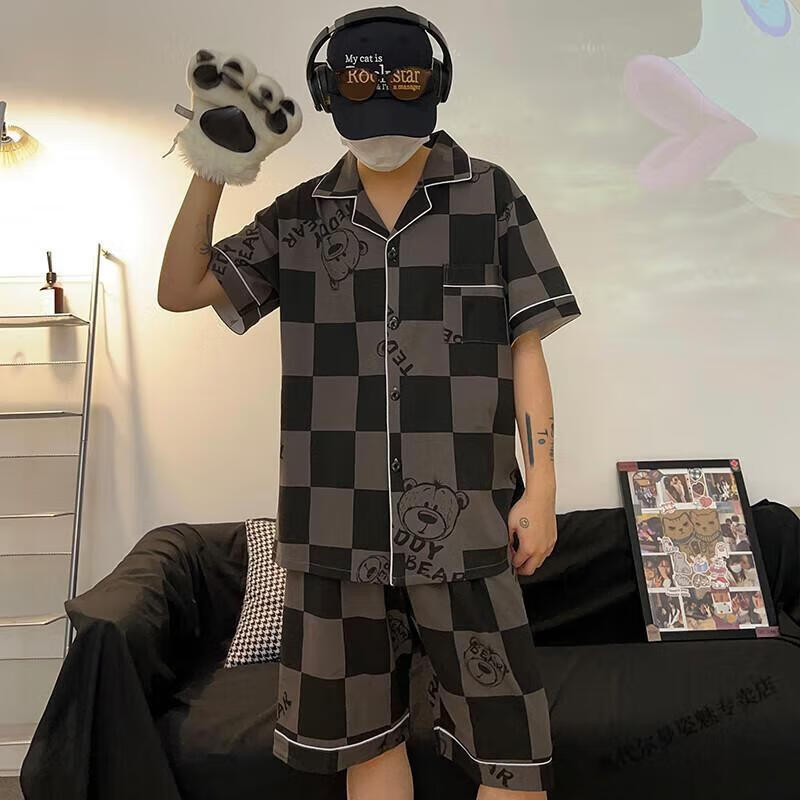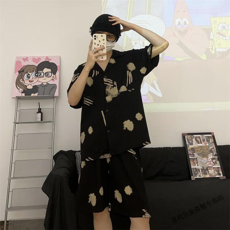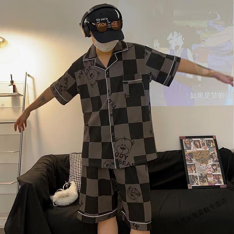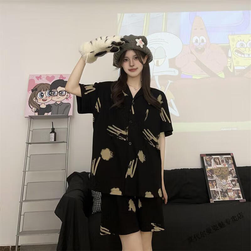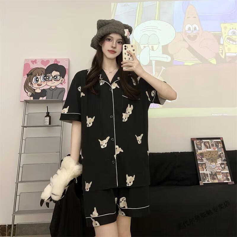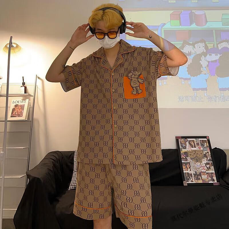 Modal Japanese cute Crayon Shin-chan couple pajamas for women summer pure cotton short-sleeved summer men's home wear three-piece suit White Crayon Shin-chan short sleeves + shorts + trousers Men's L size 90-120 Jin Jin equals 0.5 kg Wear