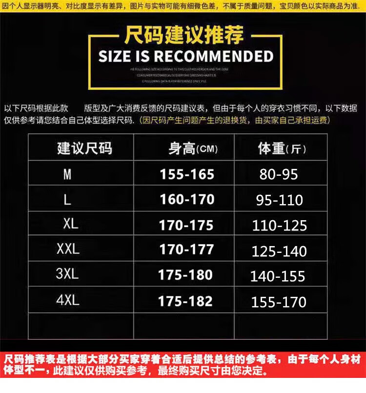 China (cm) 160-165/84-86 165-170 / 88-90 167-172 / 92-96 168-173 / 98-102 170-176 / 106-110