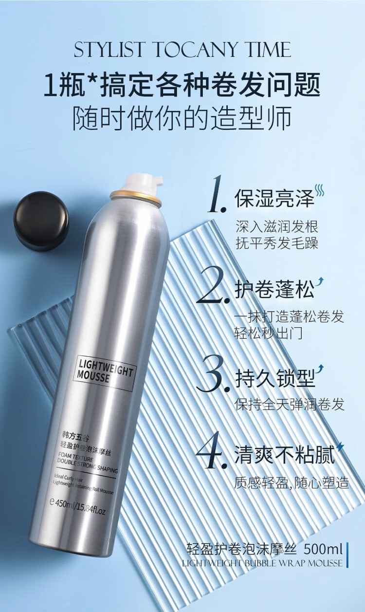 Korean herbal grain foam hair wax for women to protect curly hair, French wool curls, elastin mousse, fragrance, moisturizing, fluffy and styling for men and women, foam hair wax 450ml*1