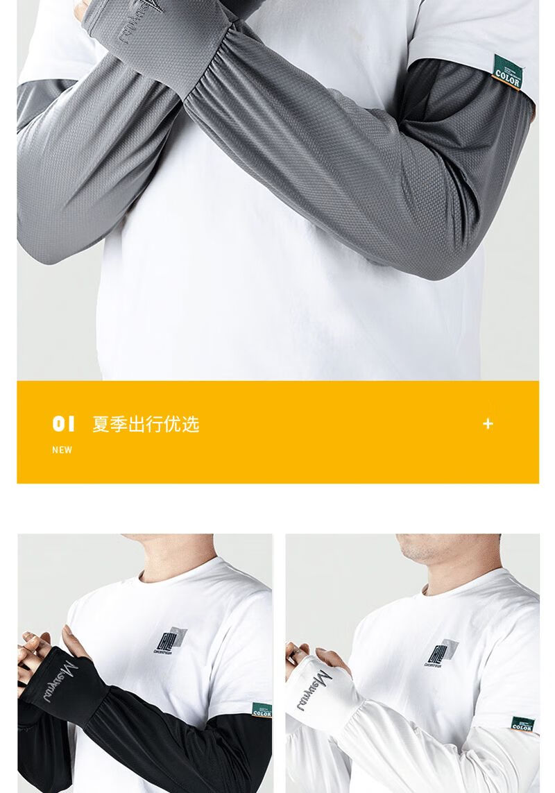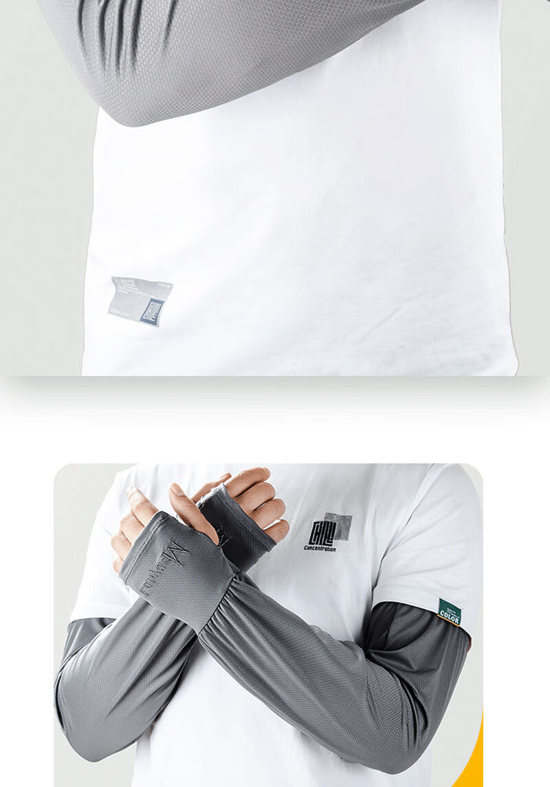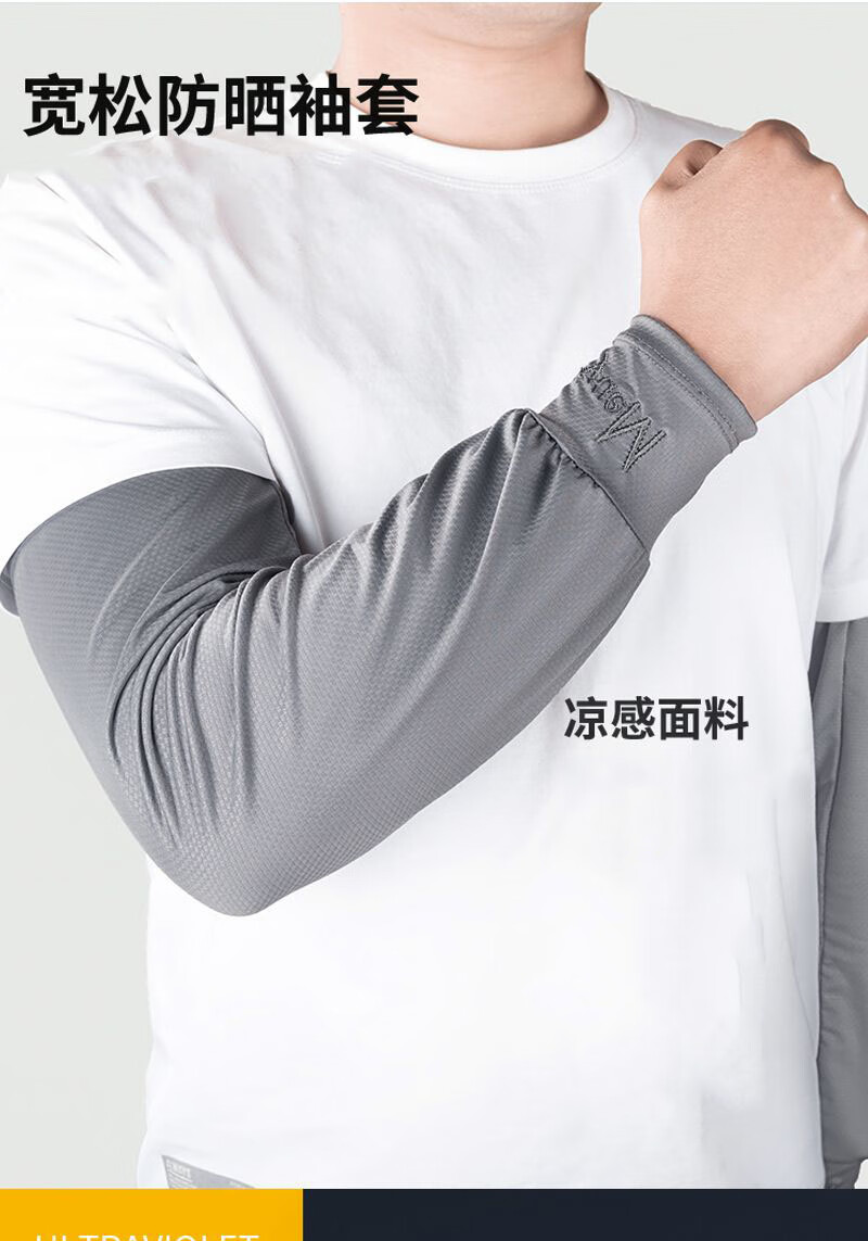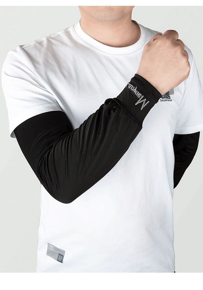 QUEEN TRIP 45cm extended ice sleeves men's loose version plus fattening full arm sun protection ice silk sleeves summer arm sleeves 1 pair black _wrist protection style