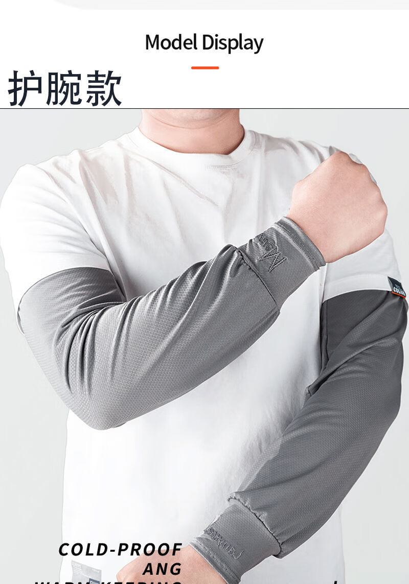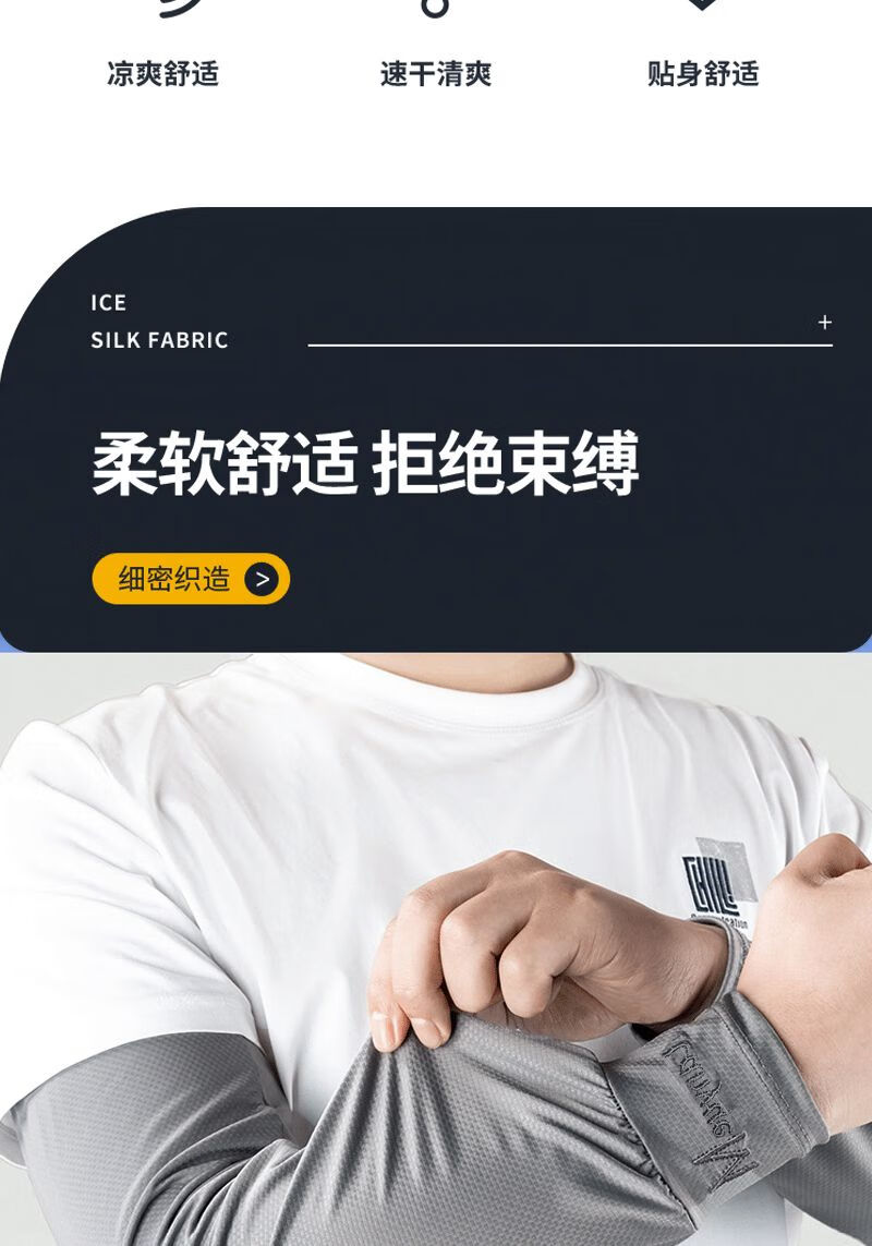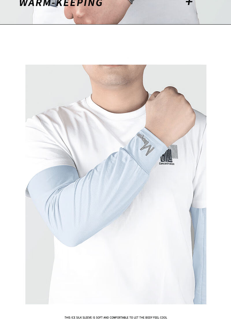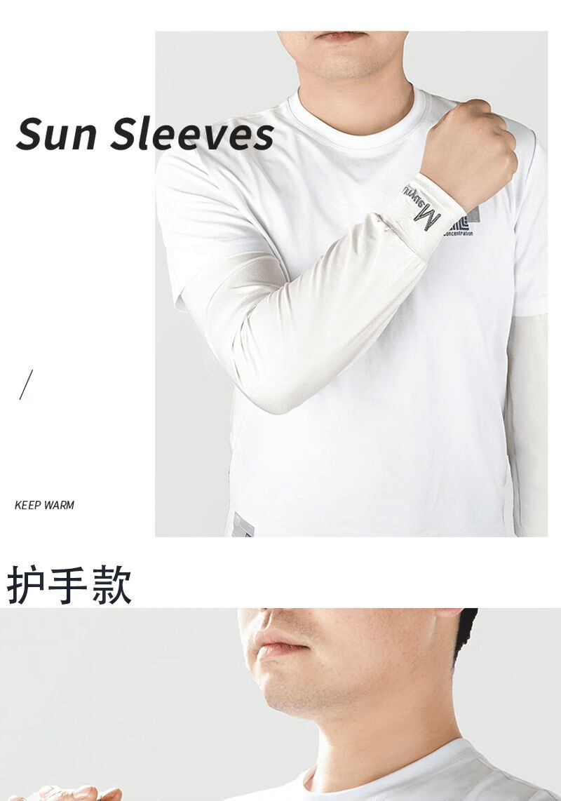 QUEEN TRIP 45cm extended ice sleeves men's loose version plus fattening full arm sun protection ice silk sleeves summer arm sleeves 1 pair black _wrist protection style