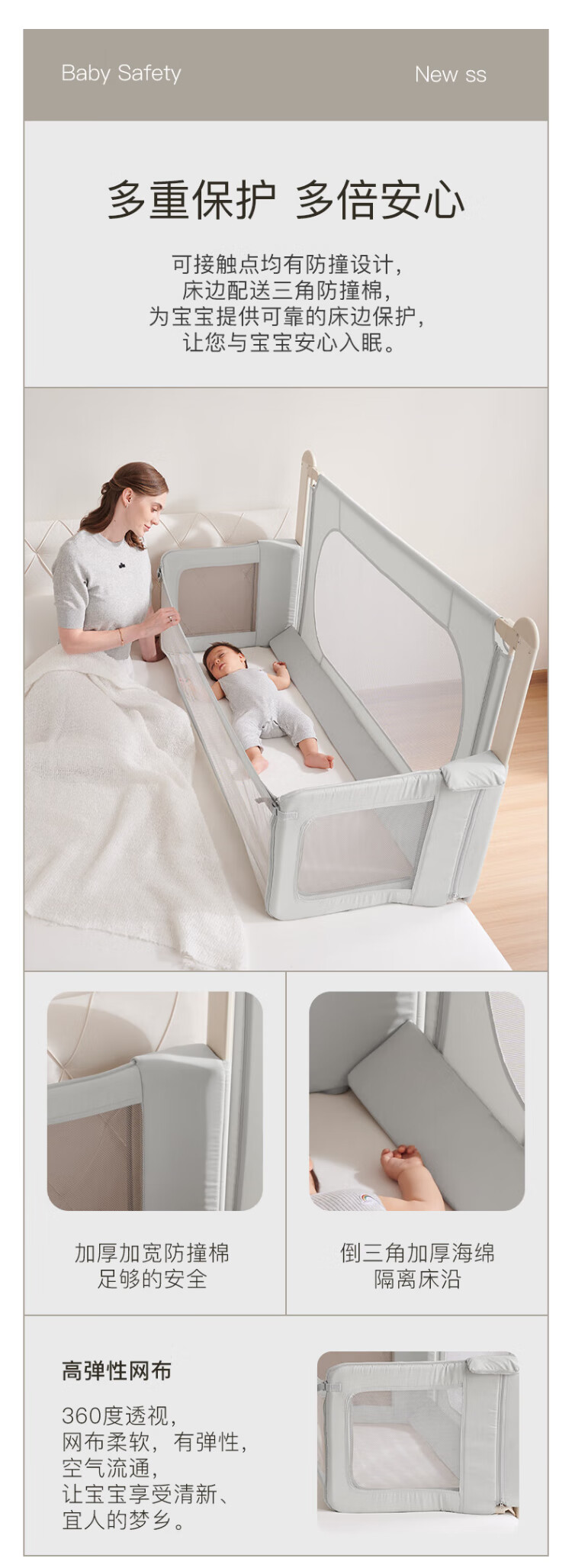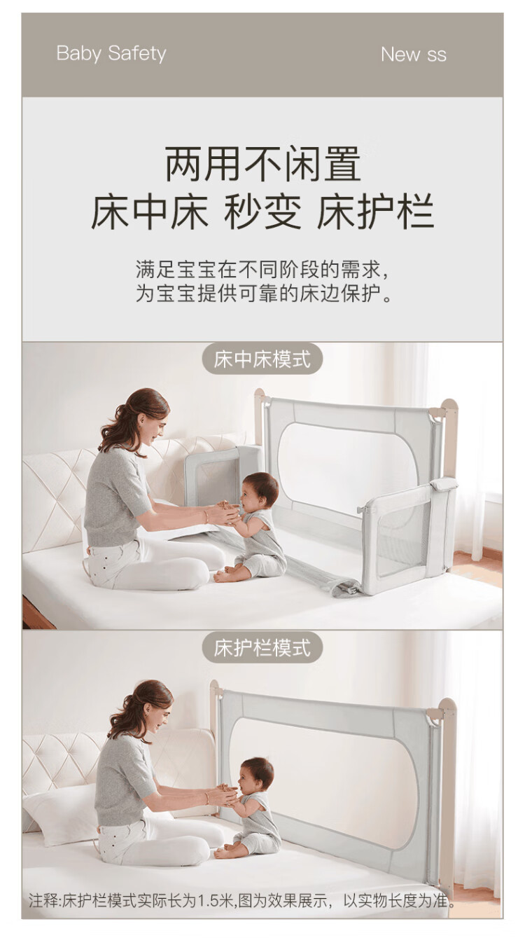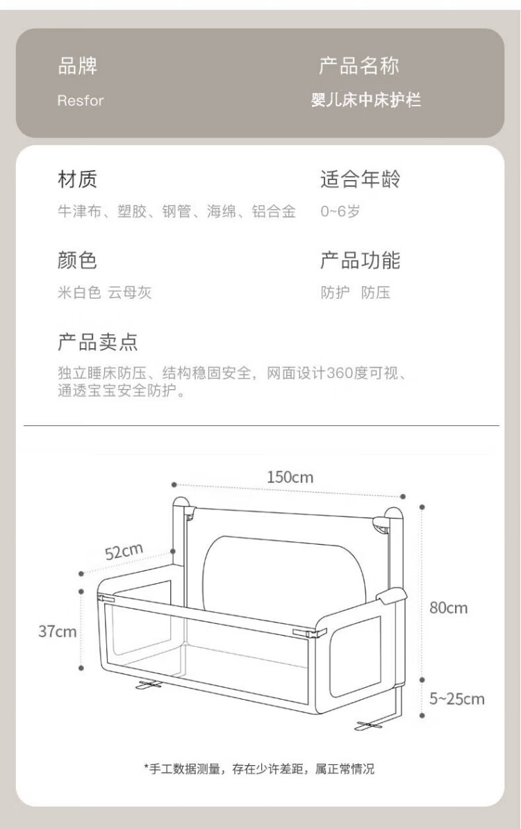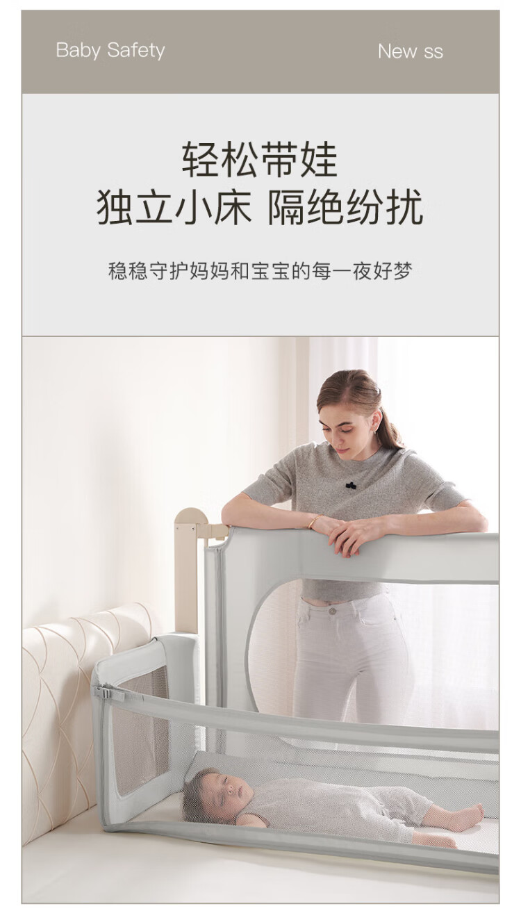 RESFOR crib in bed baby bed fence anti-pressure bed children's bed guardrail newborn multi-functional splicing bedside bed mica gray | bed in bed + free mosquito net 1.5 meters (can be lifted)