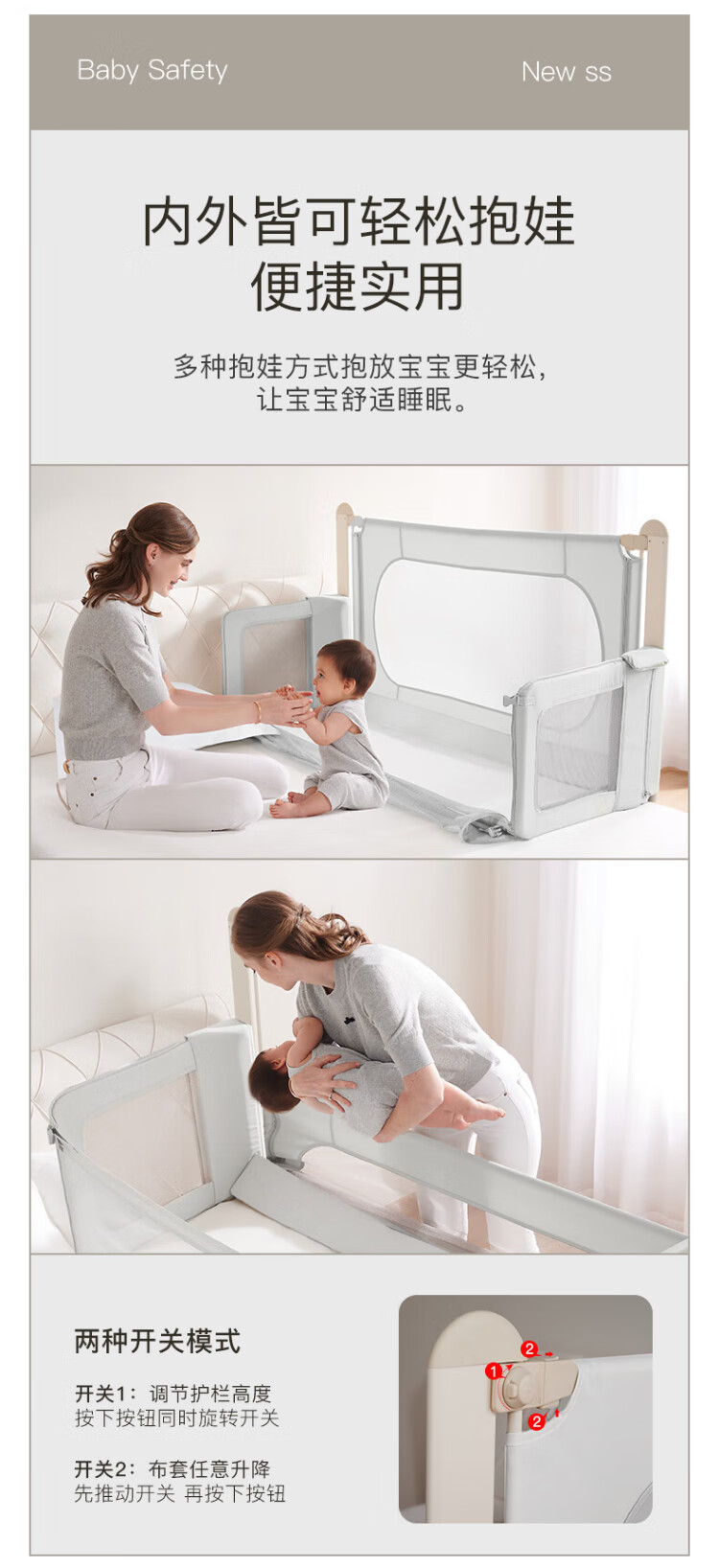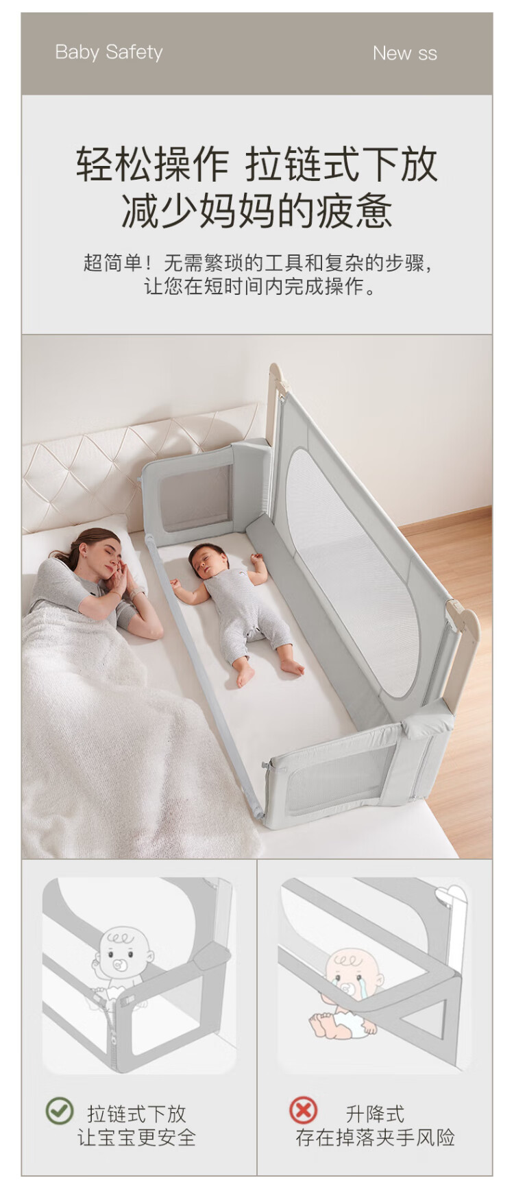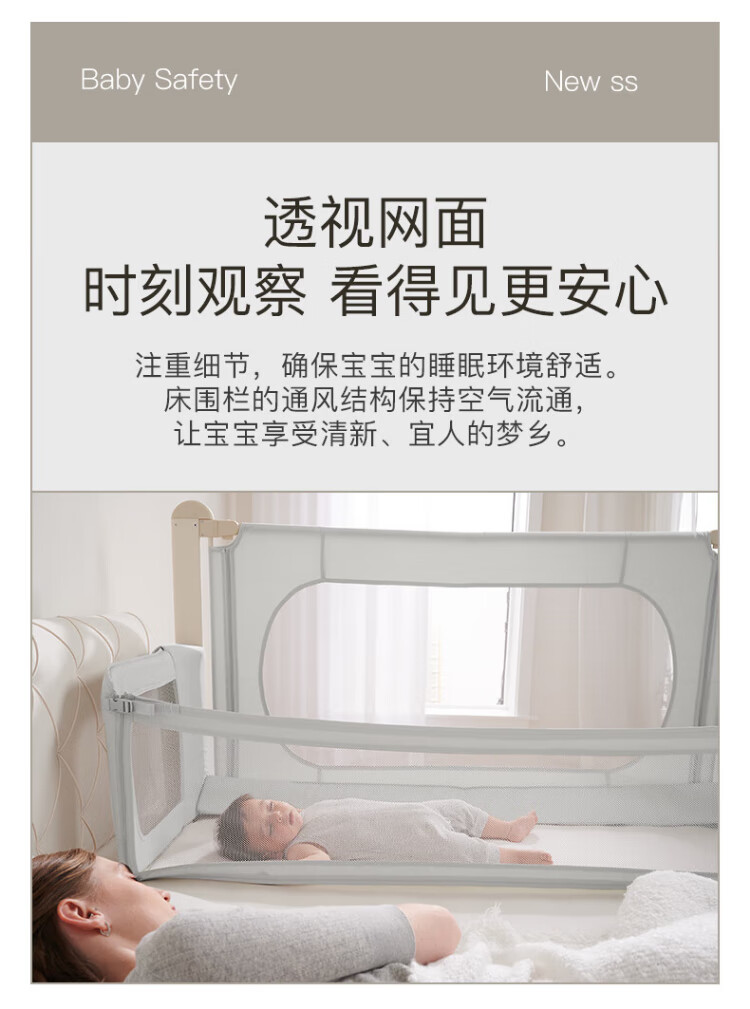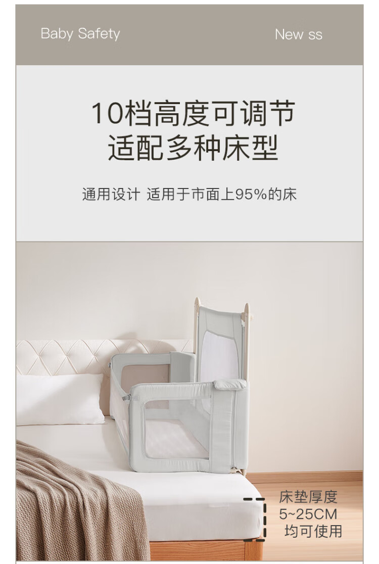 RESFOR crib in bed baby bed fence anti-pressure bed children's bed guardrail newborn multi-functional splicing bedside bed mica gray | bed in bed + free mosquito net 1.5 meters (can be lifted)
