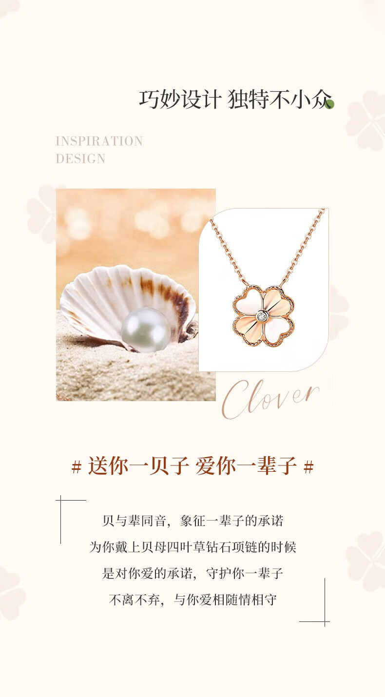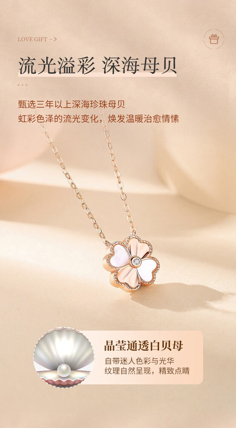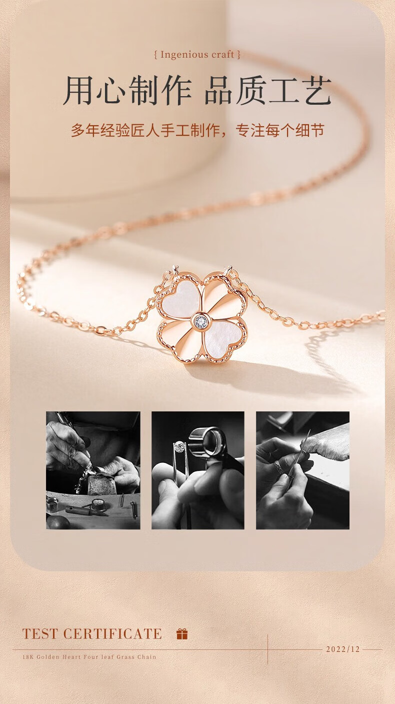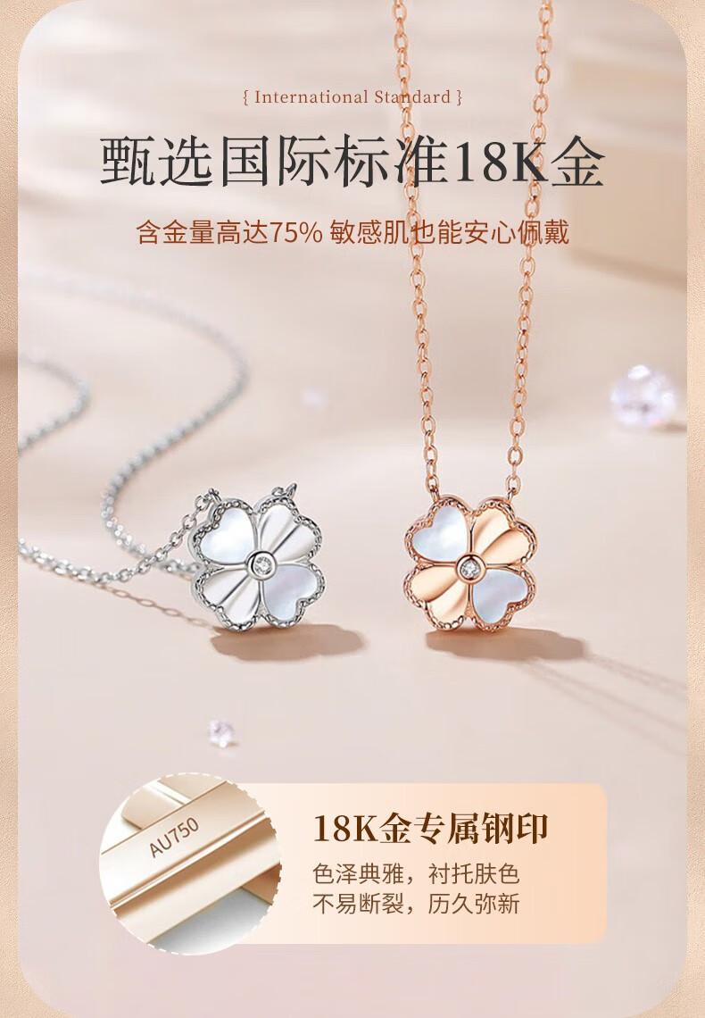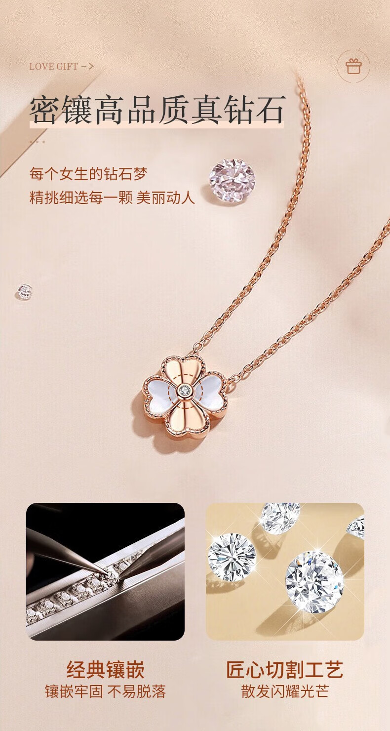 Farcoko luxury 18K color gold necklace women's four-leaf clover diamond pendant Valentine's Day gift for girlfriend and wife 520 18K gold diamond necklace SF Express can engrave greeting cards