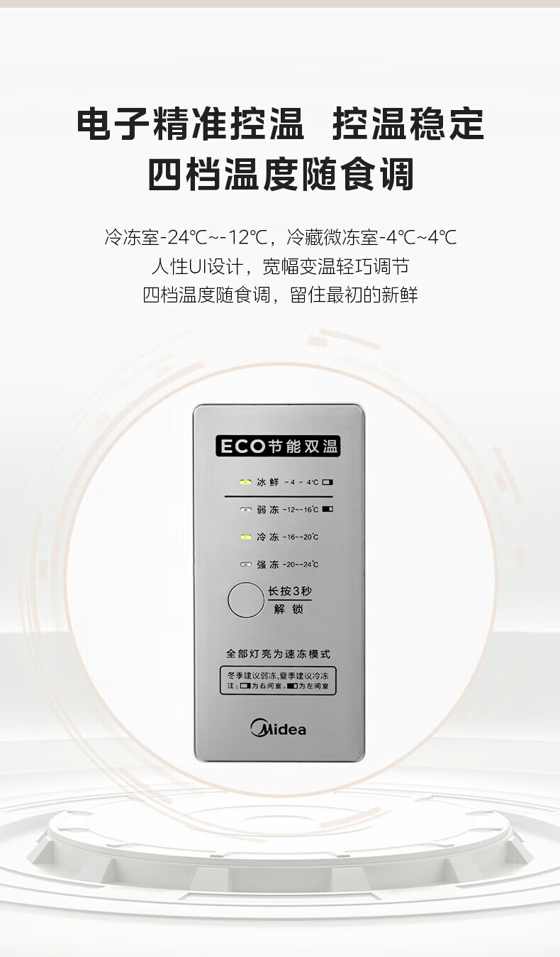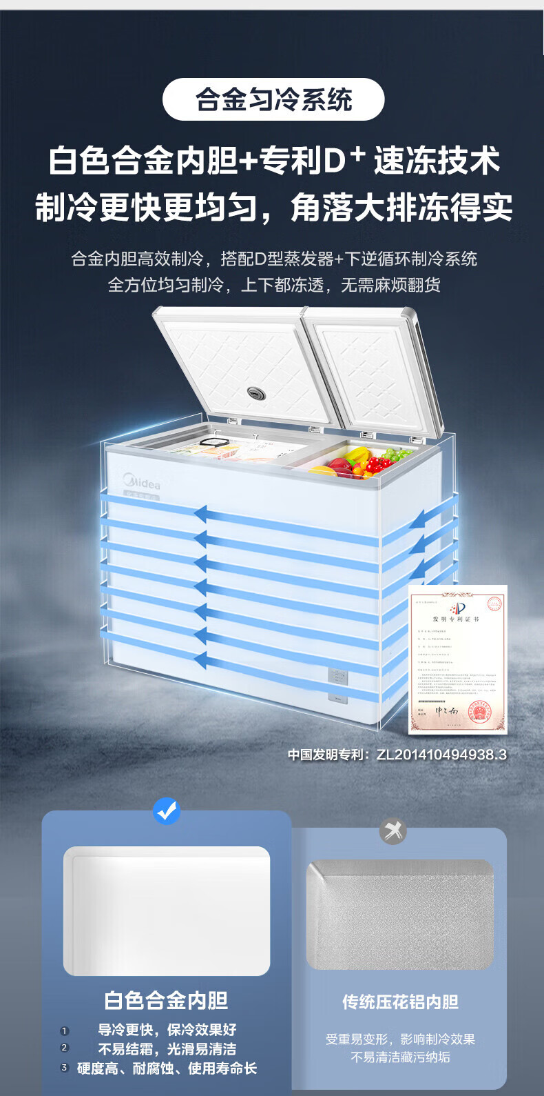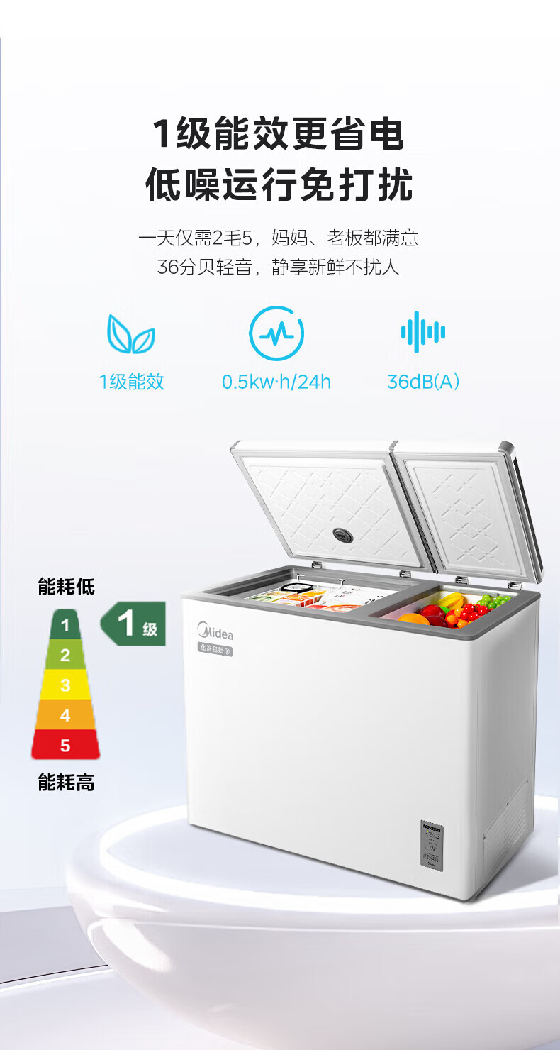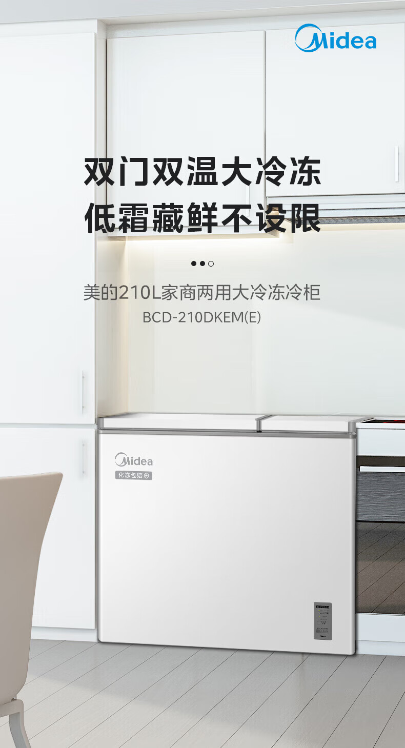 Midea Midea Freezer 210 liters for both home and business use, refrigerated and frozen dual-temperature double-box freezer, first-class energy efficiency electronic temperature control, white 210L BCD-210DKEM(E) 210 liters