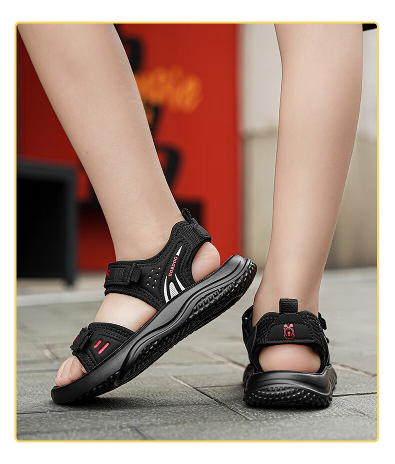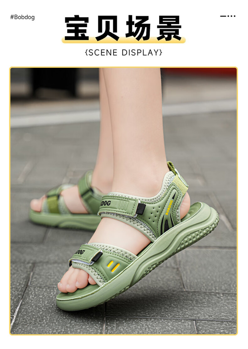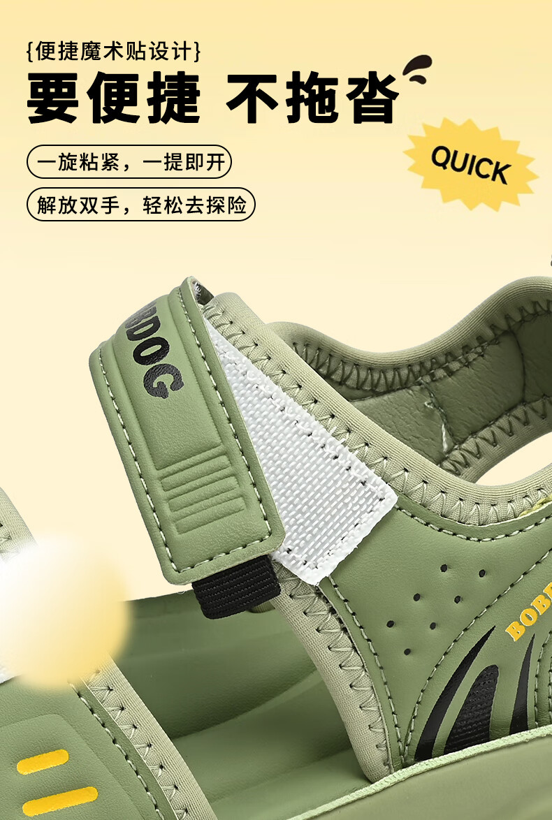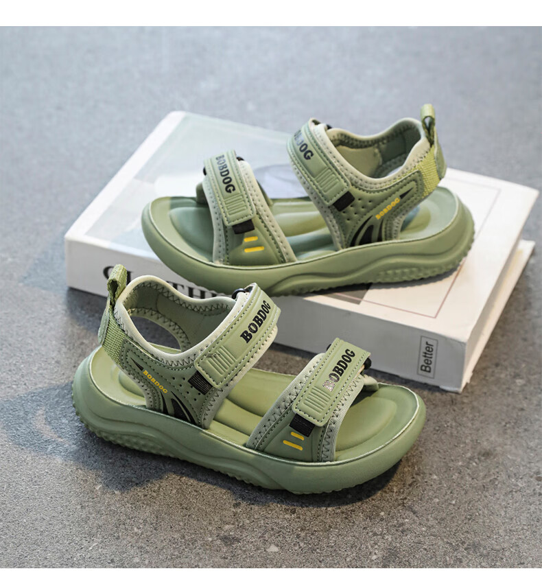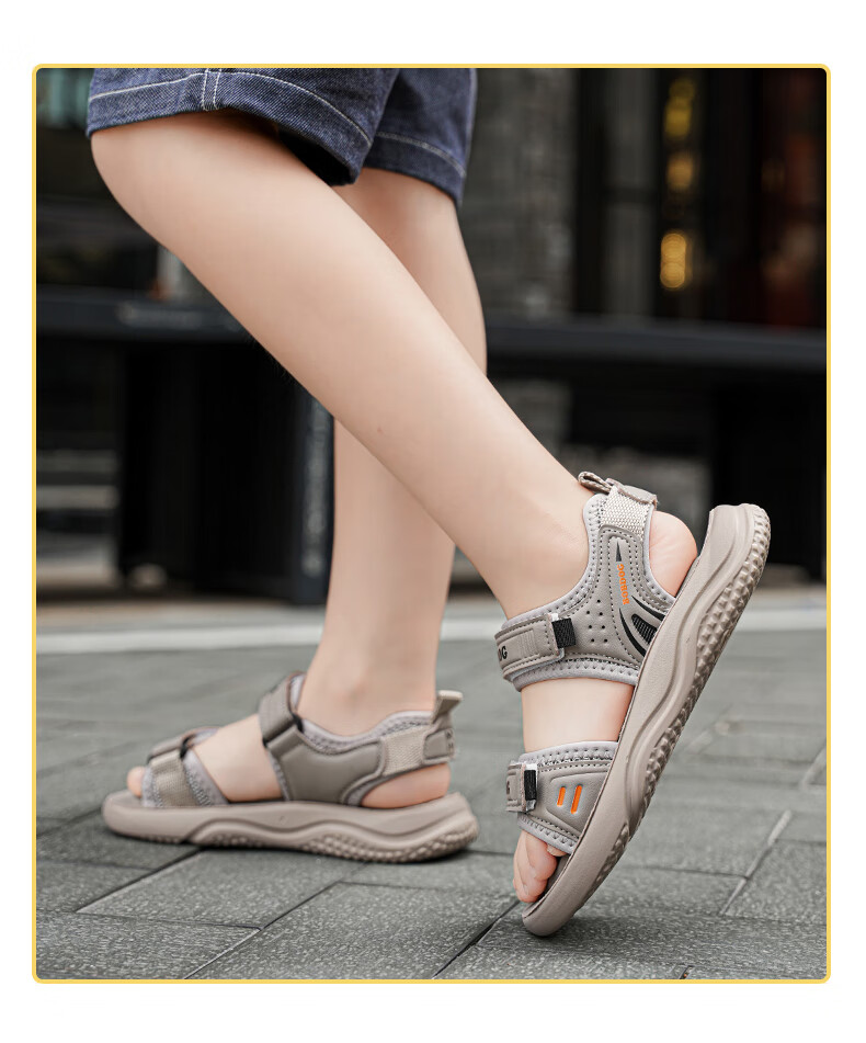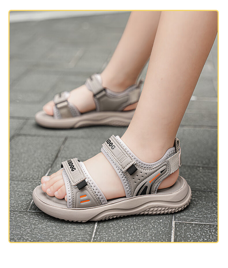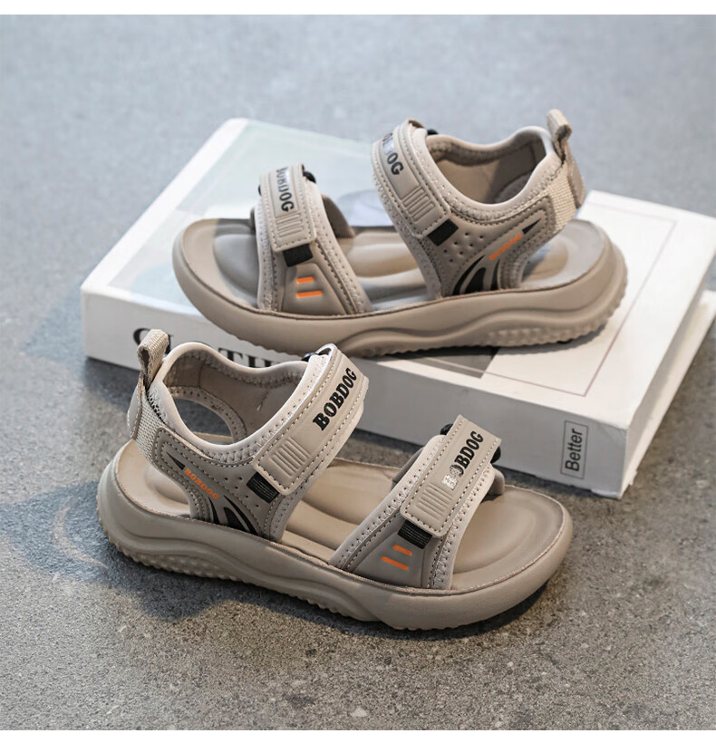 BOBDOG boys' shoes, children's sandals, summer style, boys' fashionable Velcro open-toe sandals, non-slip, lightweight beach shoes, trendy TS6004 light brown 27, inner length 17cm