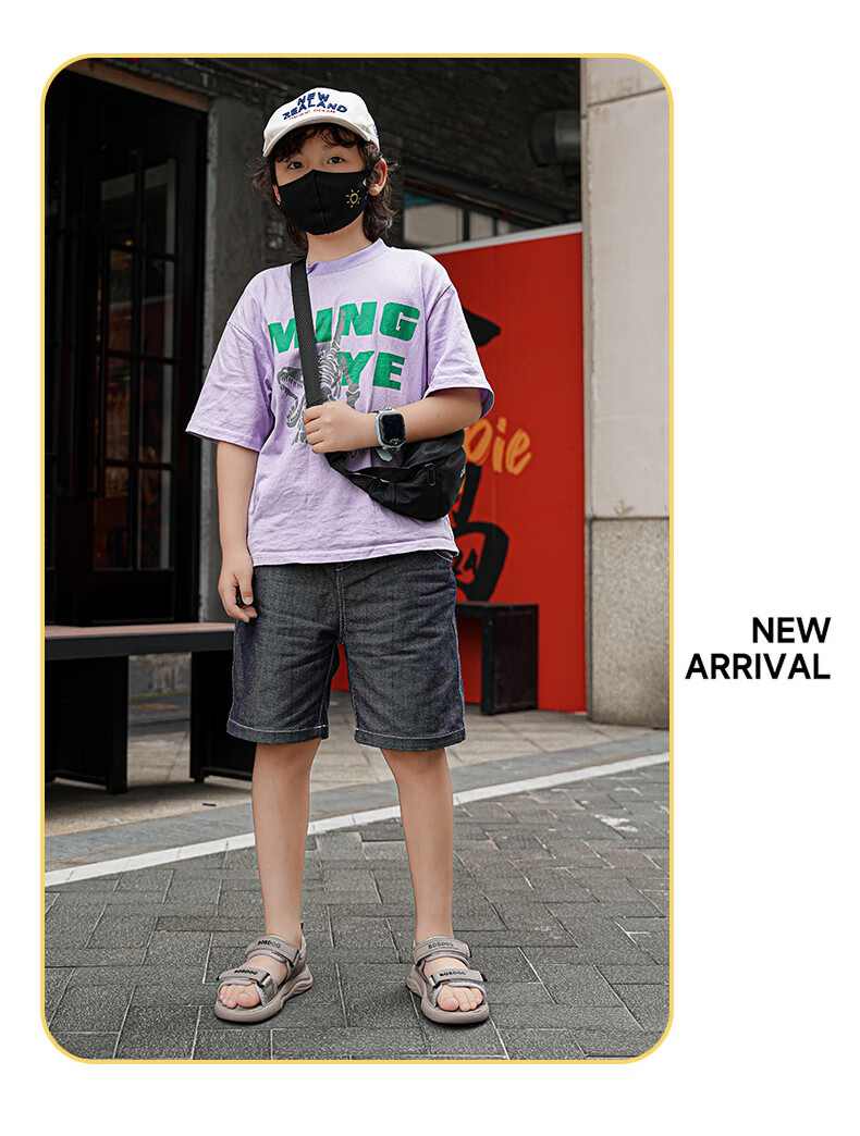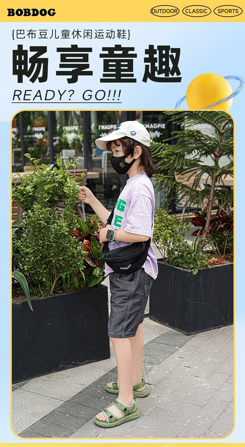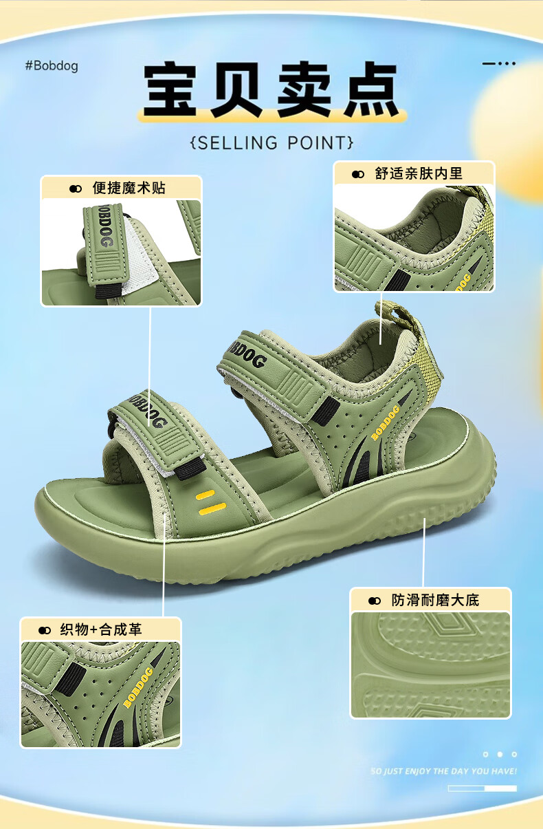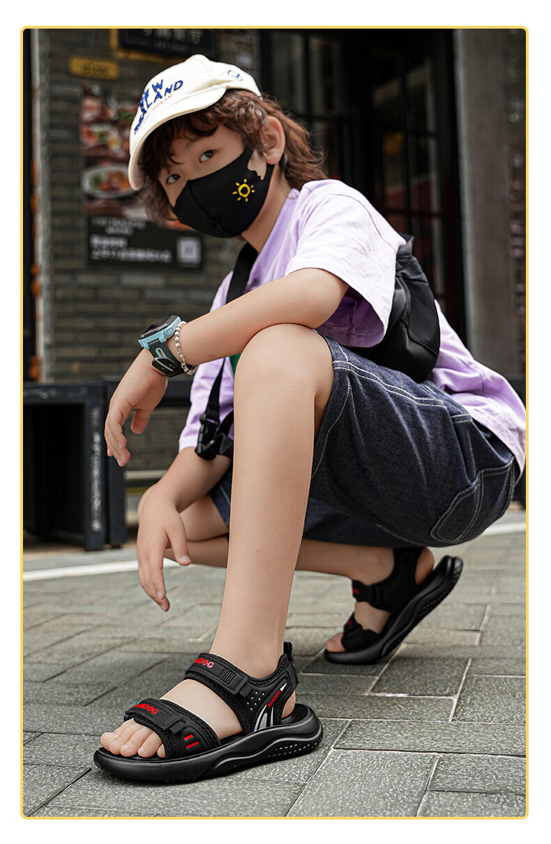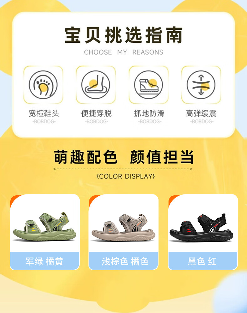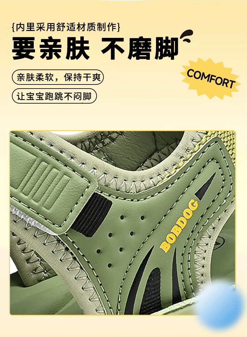 BOBDOG boys' shoes, children's sandals, summer style, boys' fashionable Velcro open-toe sandals, non-slip, lightweight beach shoes, trendy TS6004 light brown 27, inner length 17cm