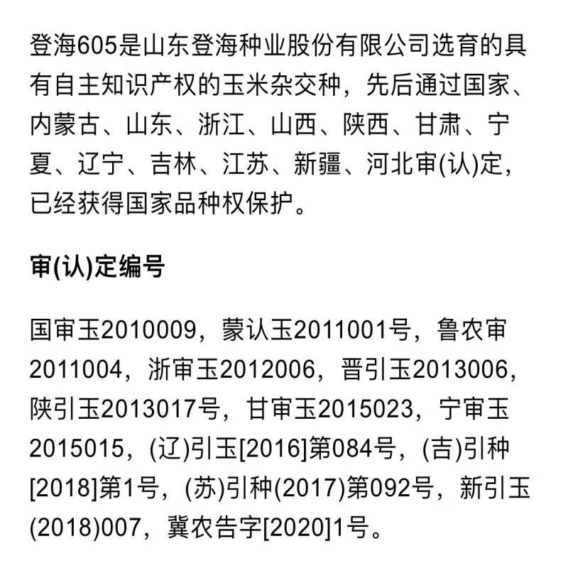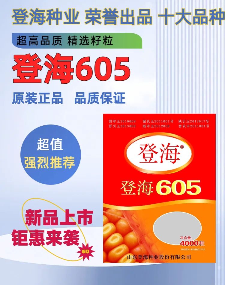 National-approved new species Denghai 605 corn seeds, double national-approved short-stem, high-yielding, red-shaft, large-cob corn seeds, national-approved quality Denghai 605, one bag, 4,000 grains, 1 mu of land