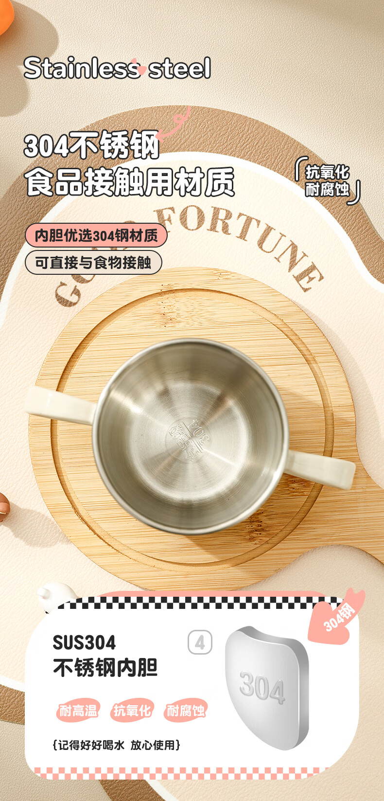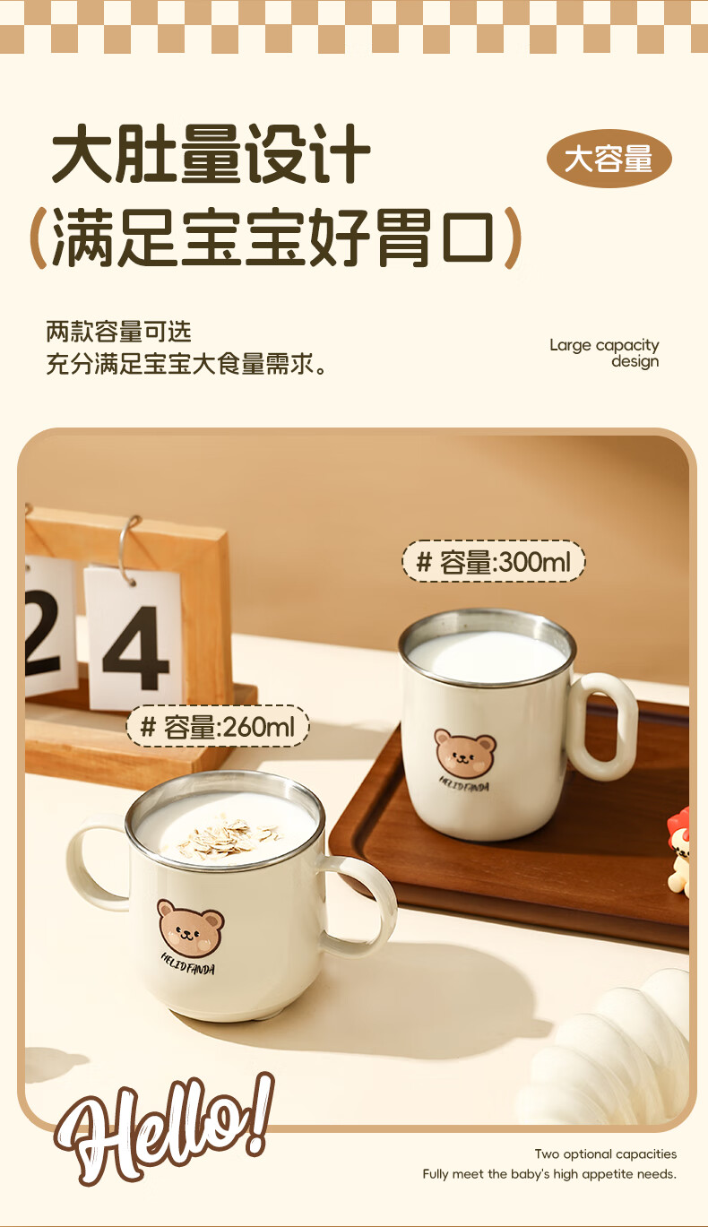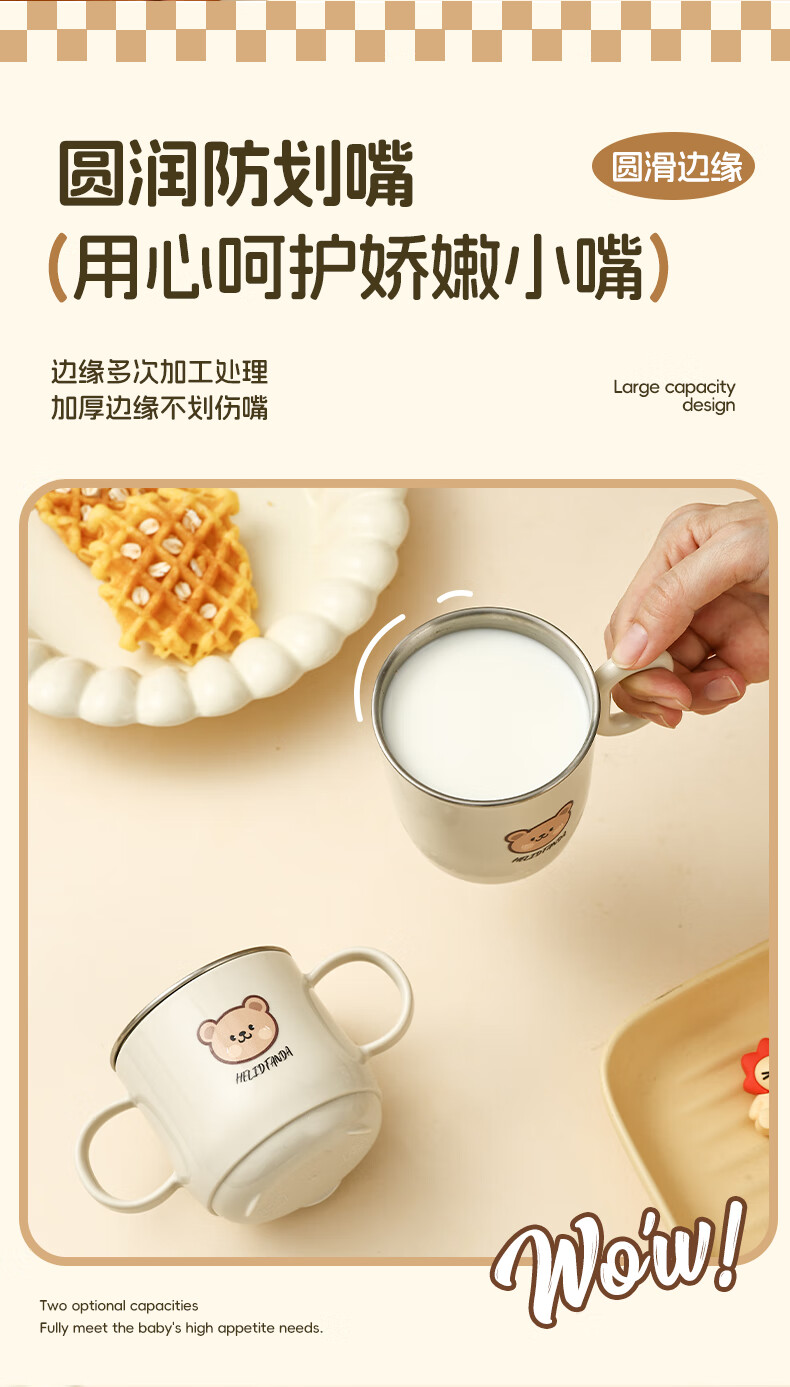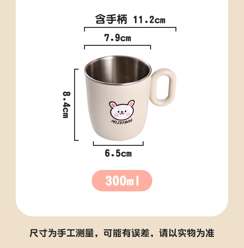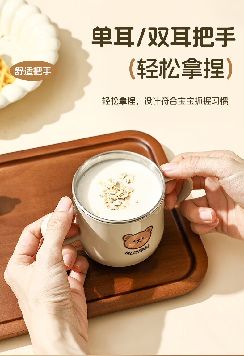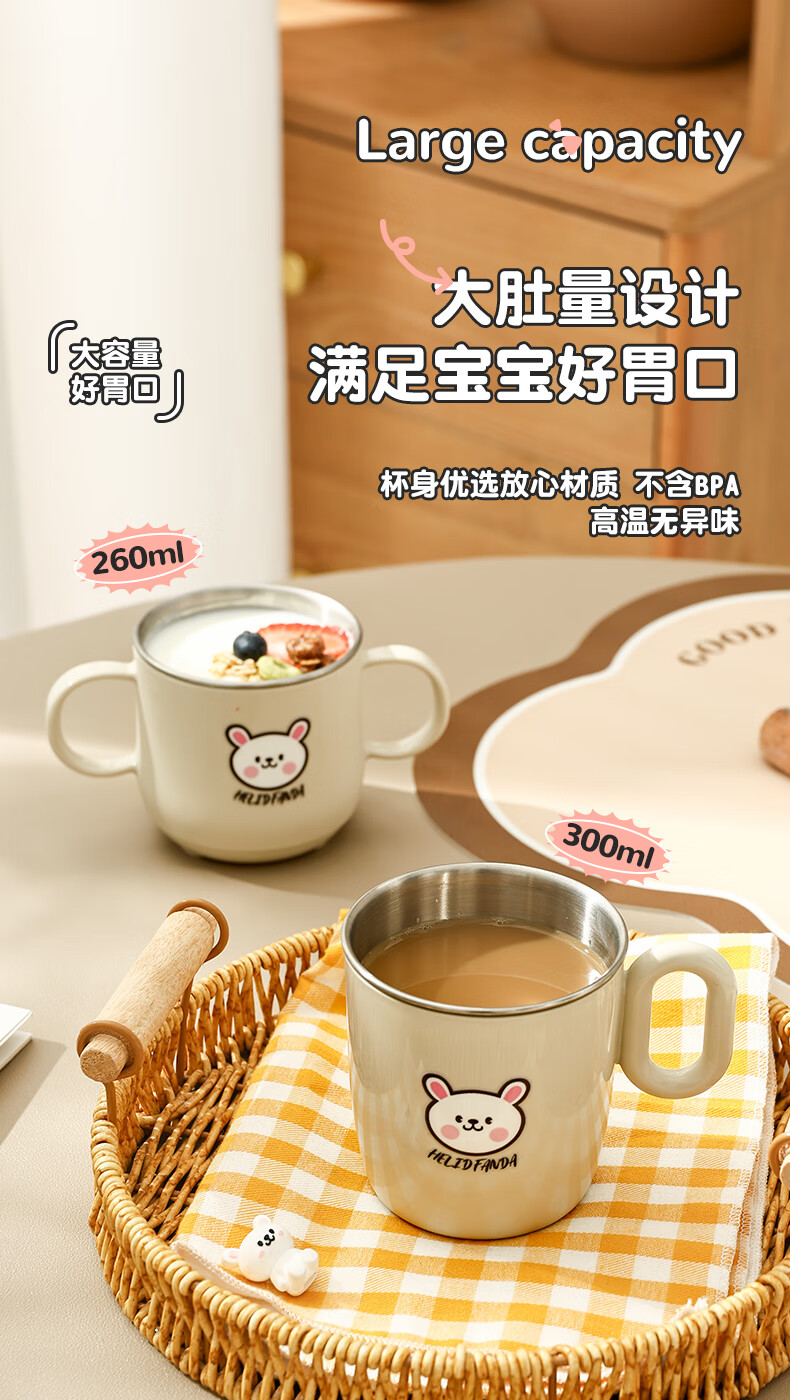 WORTHBUY children's water cup, baby milk cup with handle, anti-scalding and anti-fall direct drinking cup, stainless steel household learning cup, single-ear cup, 1 piece 300ml