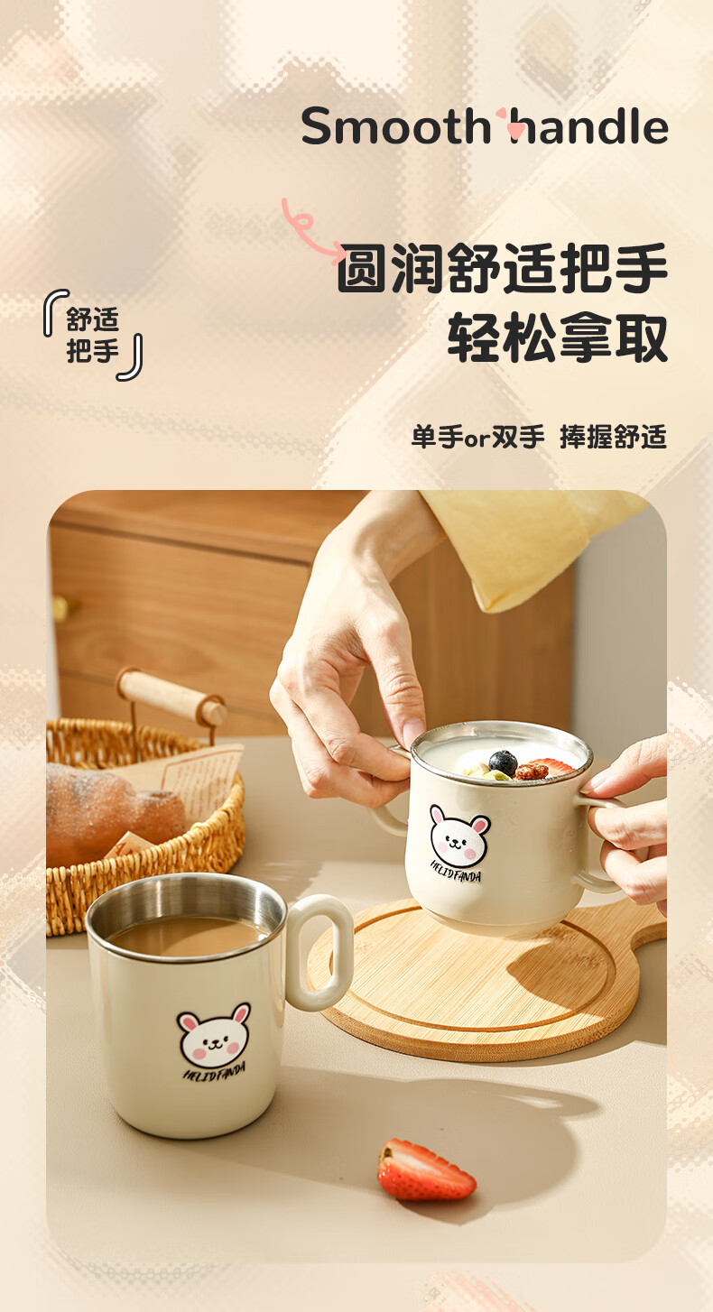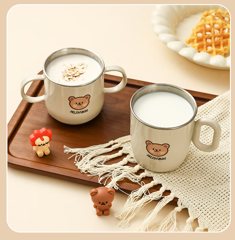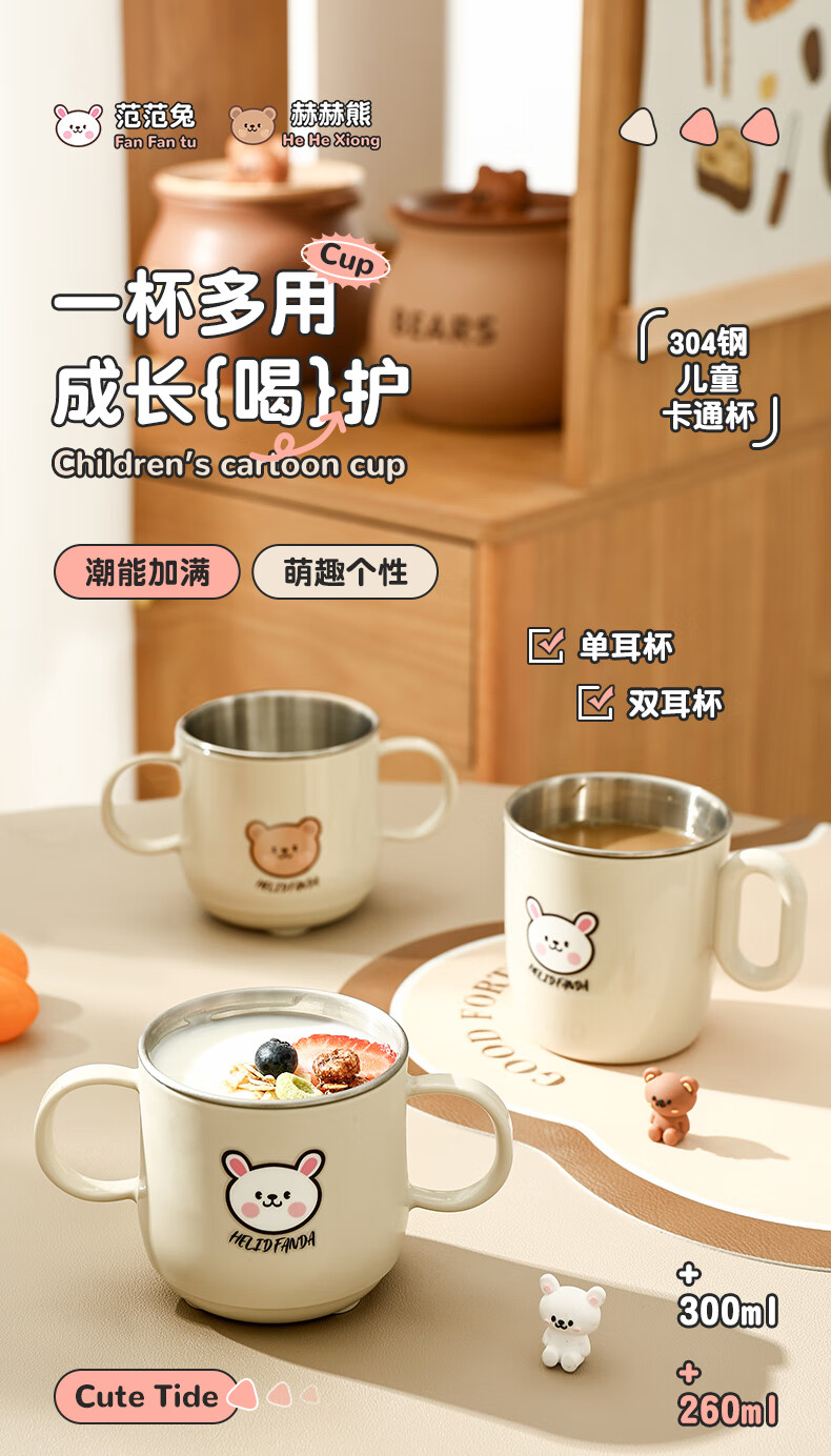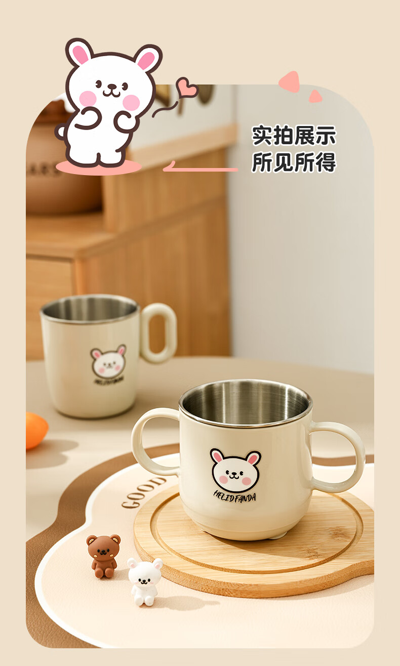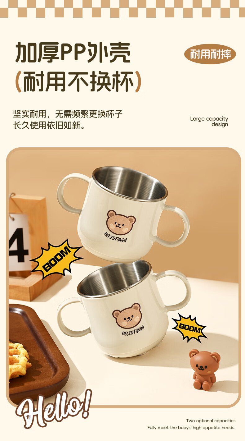 WORTHBUY children's water cup, baby milk cup with handle, anti-scalding and anti-fall direct drinking cup, stainless steel household learning cup, single-ear cup, 1 piece 300ml