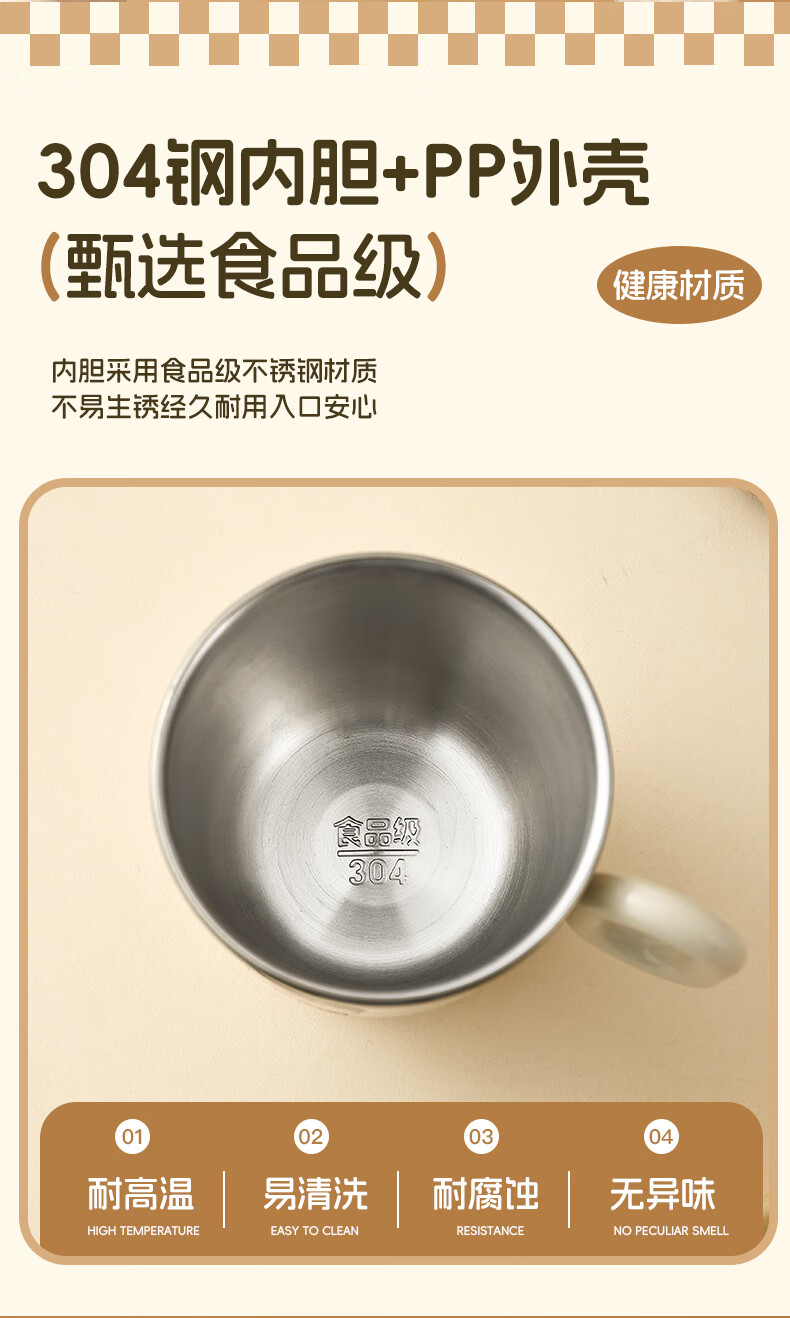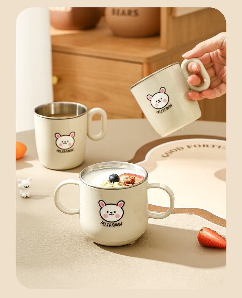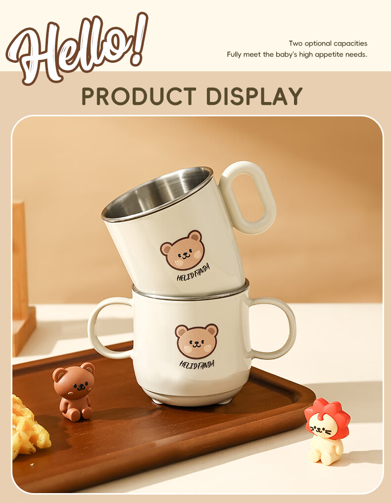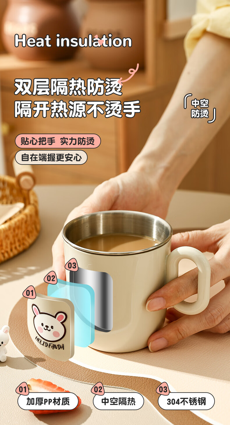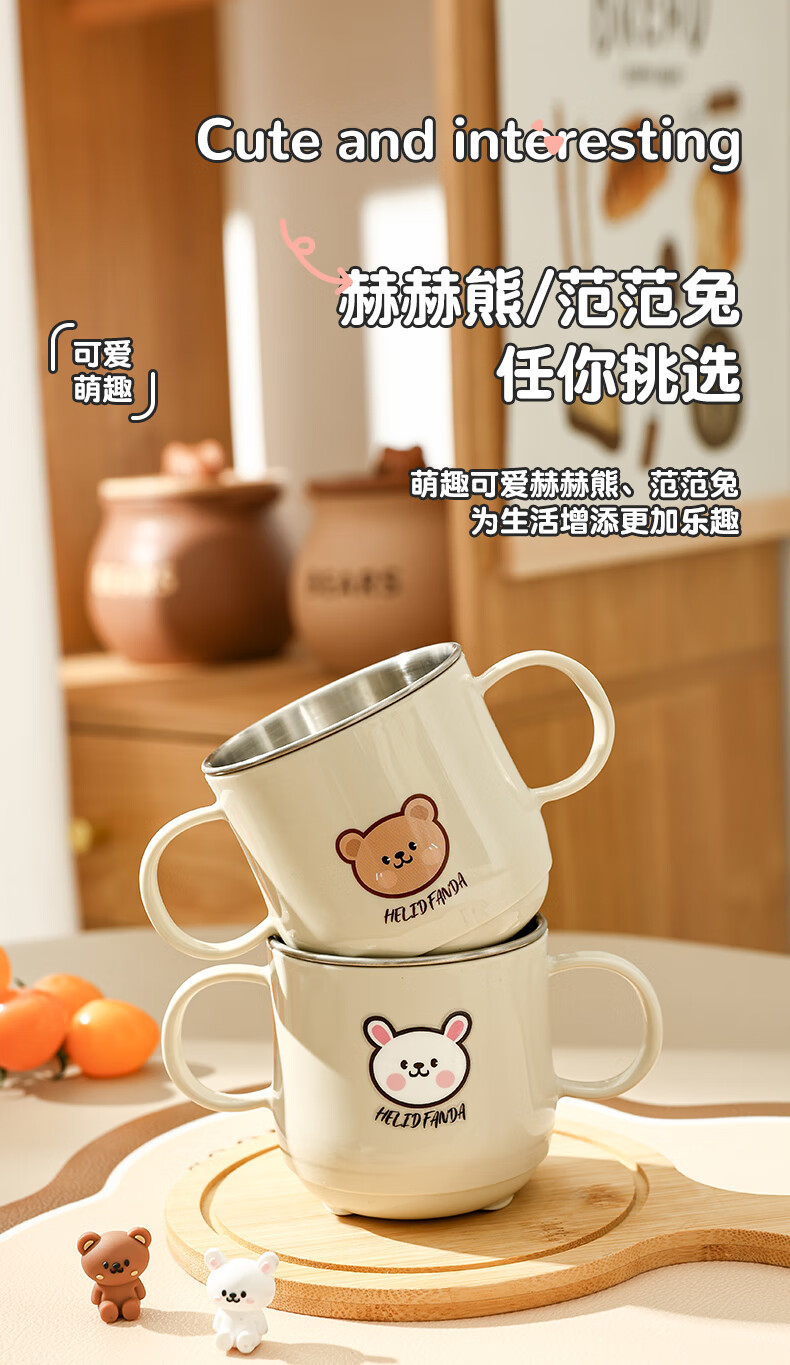 WORTHBUY children's water cup, baby milk cup with handle, anti-scalding and anti-fall direct drinking cup, stainless steel household learning cup, single-ear cup, 1 piece 300ml
