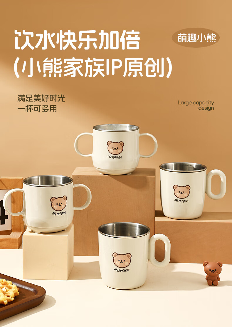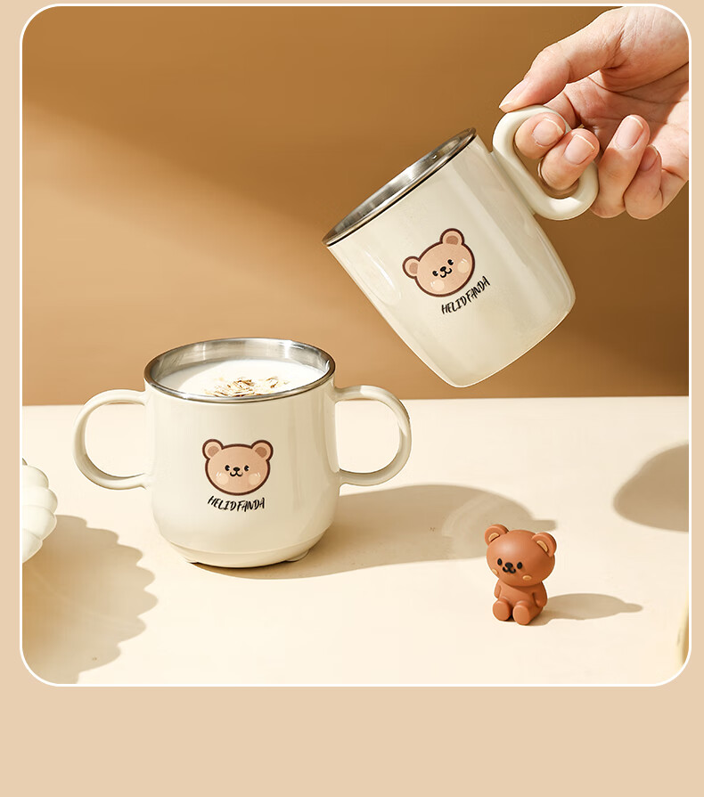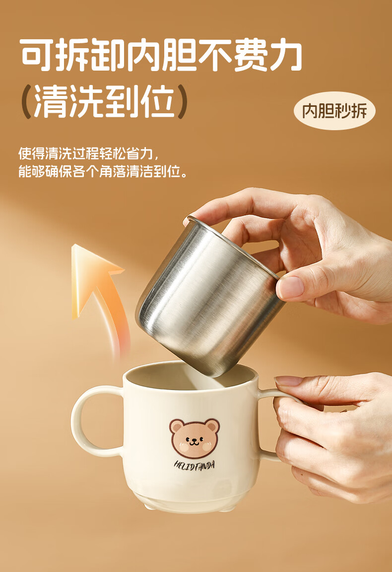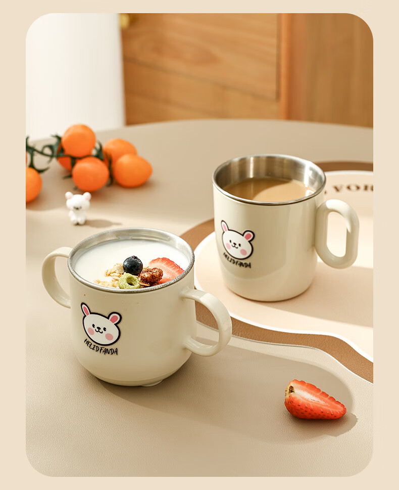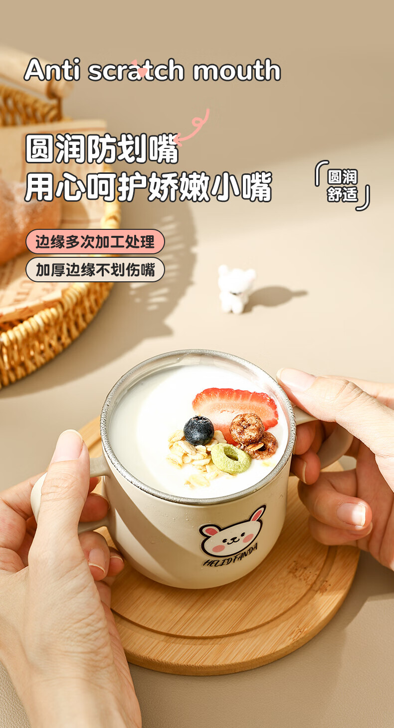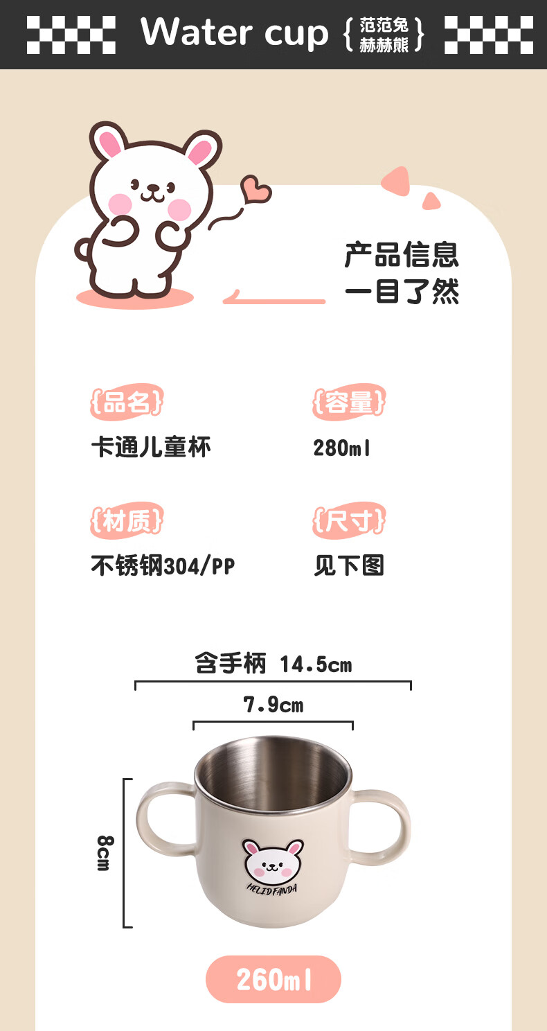 WORTHBUY children's water cup, baby milk cup with handle, anti-scalding and anti-fall direct drinking cup, stainless steel household learning cup, single-ear cup, 1 piece 300ml