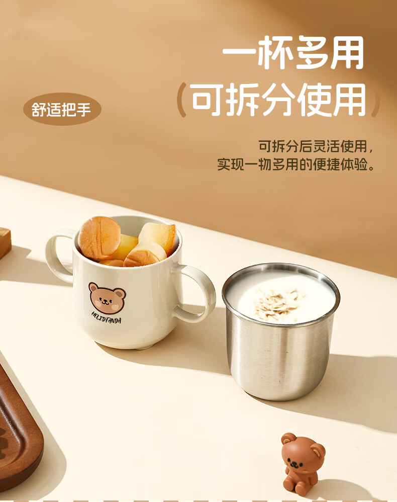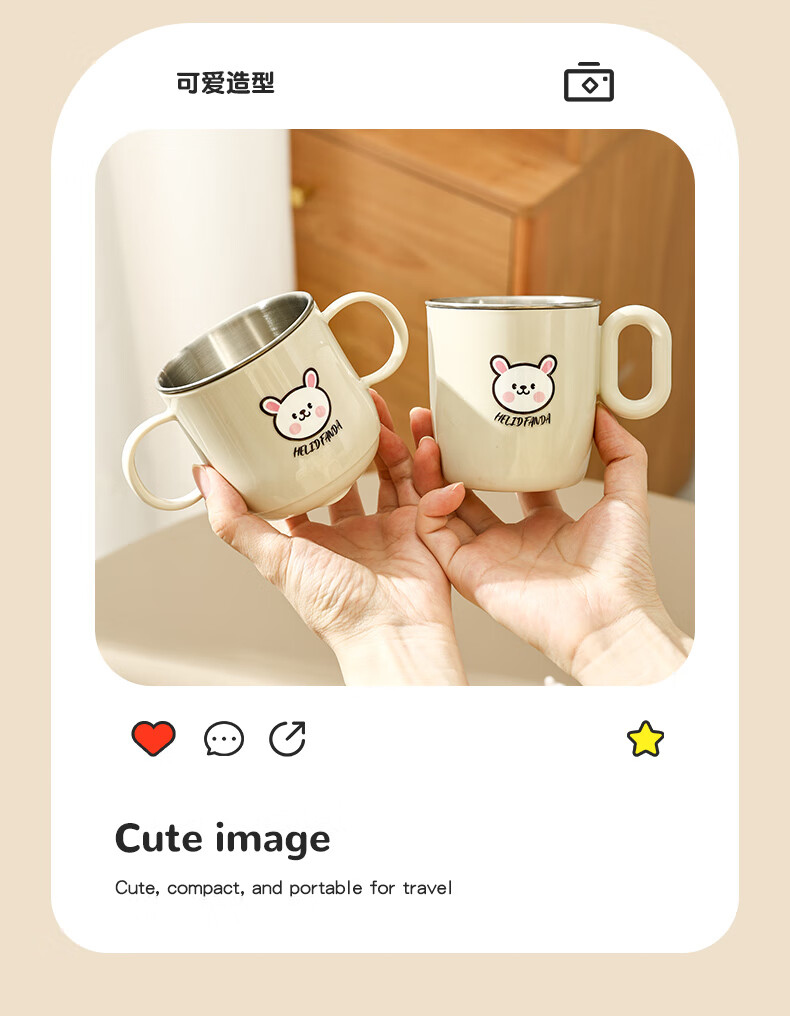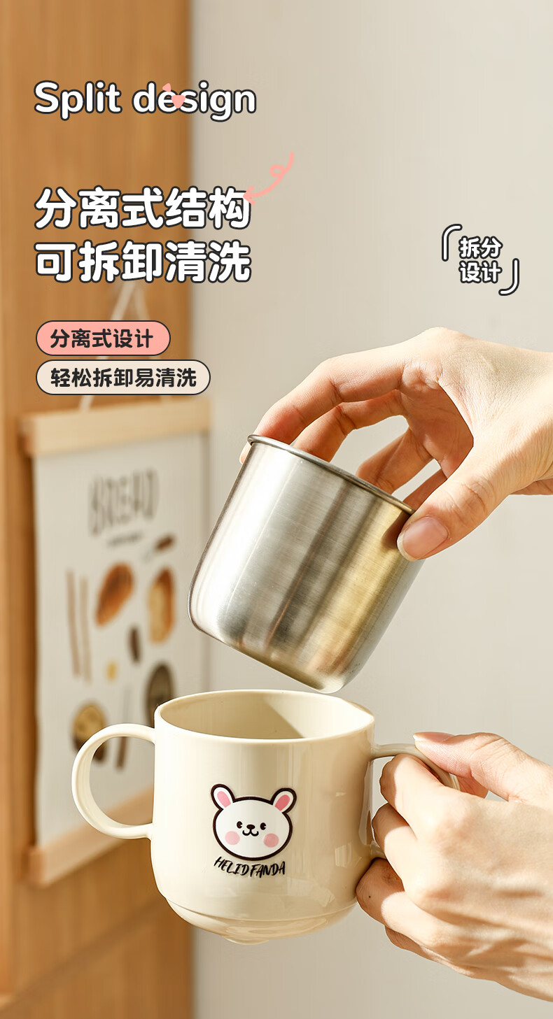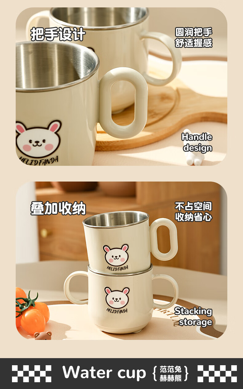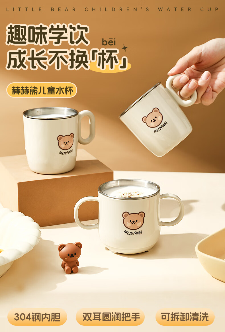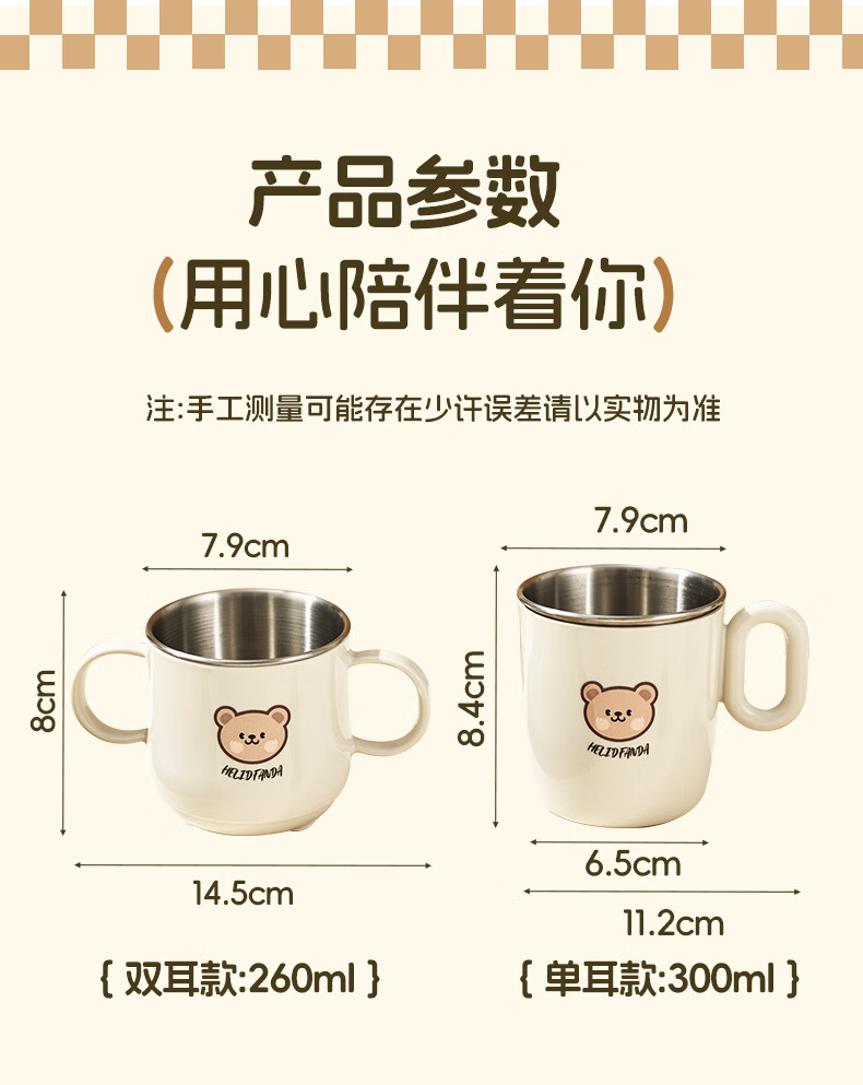WORTHBUY children's water cup, baby milk cup with handle, anti-scalding and anti-fall direct drinking cup, stainless steel household learning cup, single-ear cup, 1 piece 300ml
