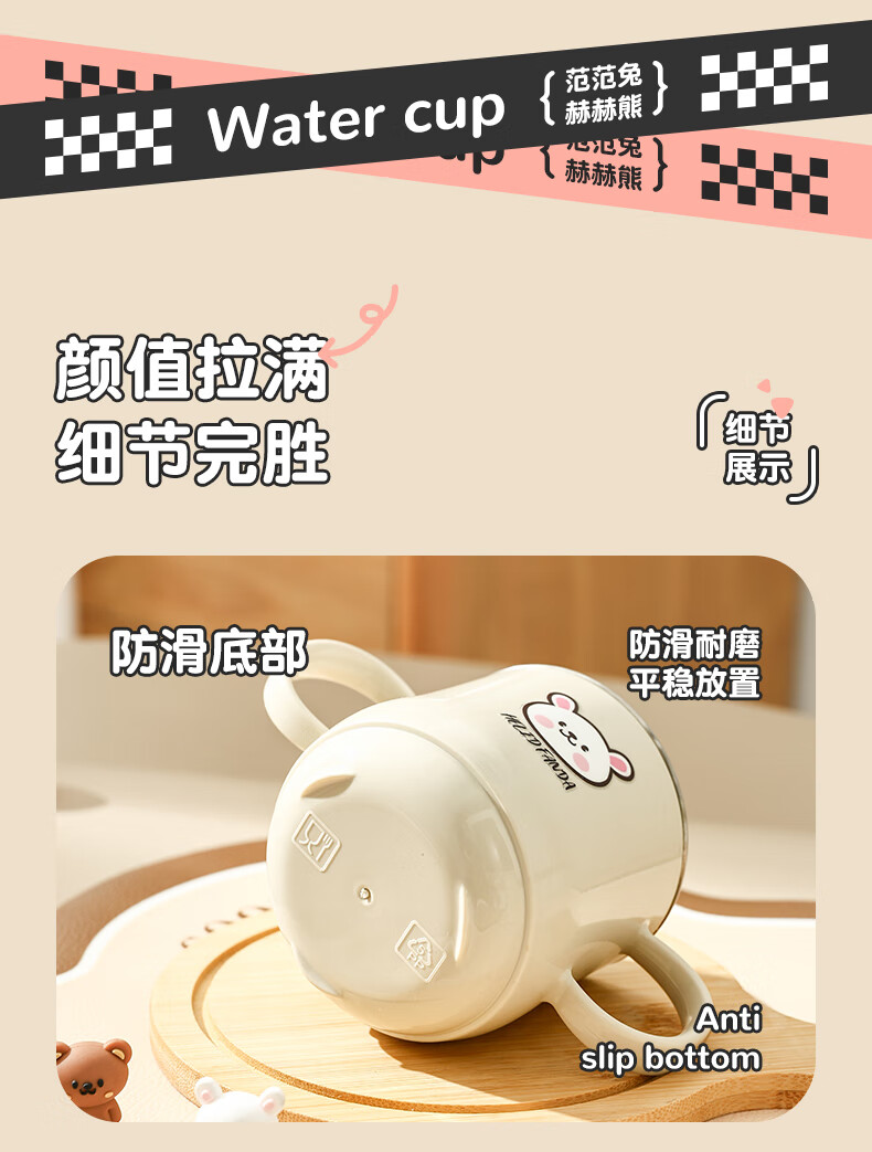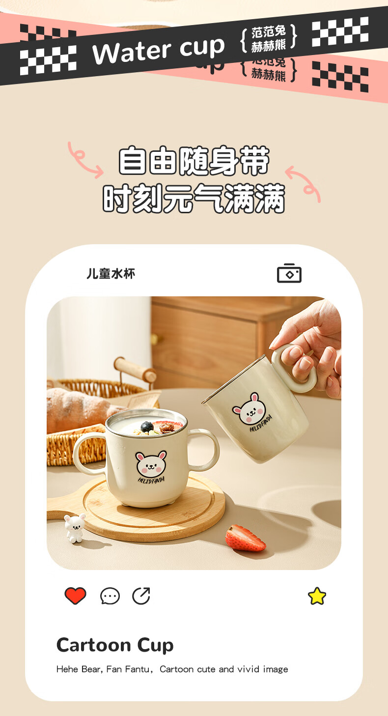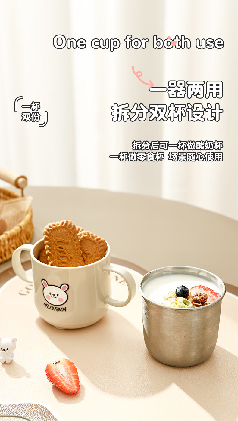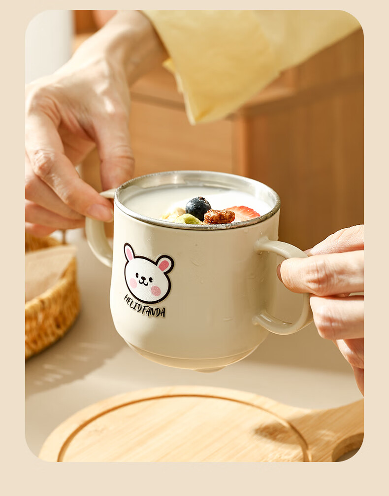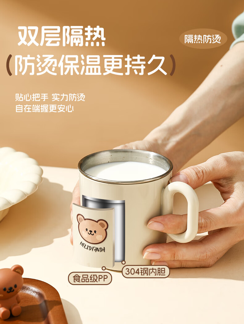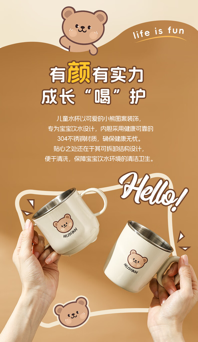 WORTHBUY children's water cup, baby milk cup with handle, anti-scalding and anti-fall direct drinking cup, stainless steel household learning cup, single-ear cup, 1 piece 300ml