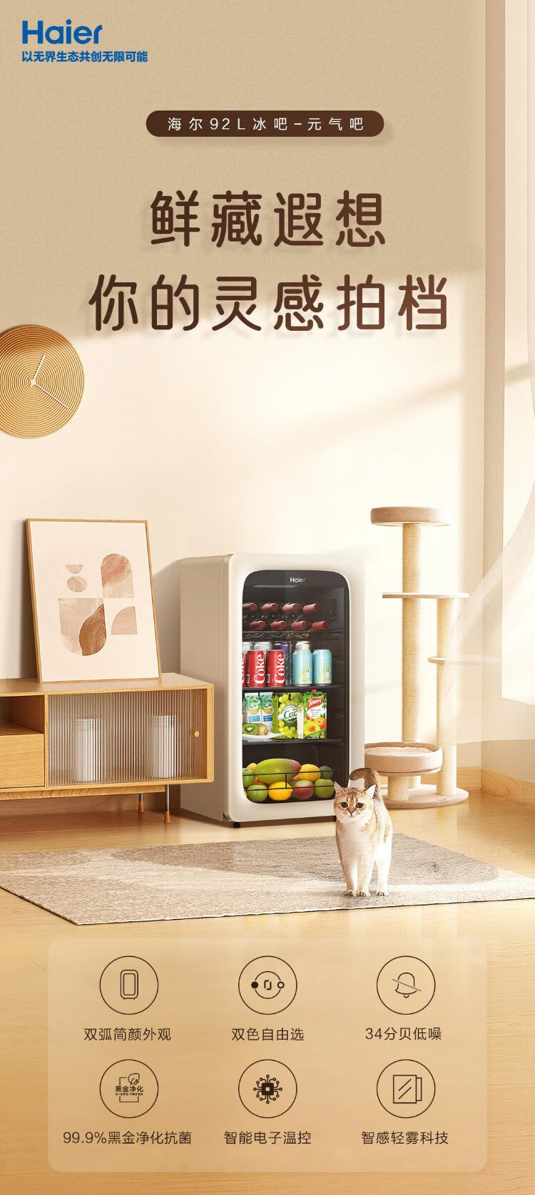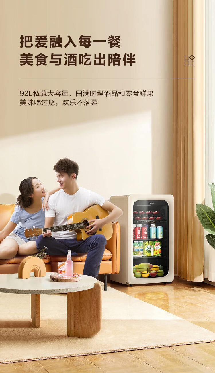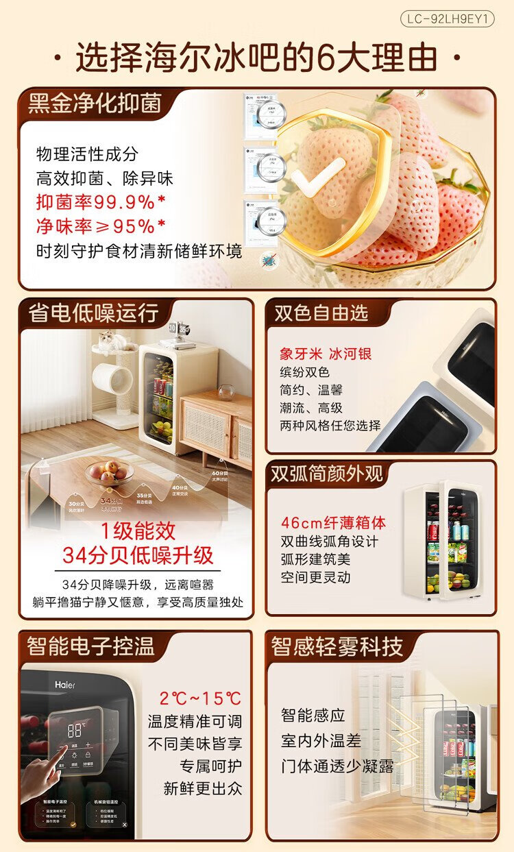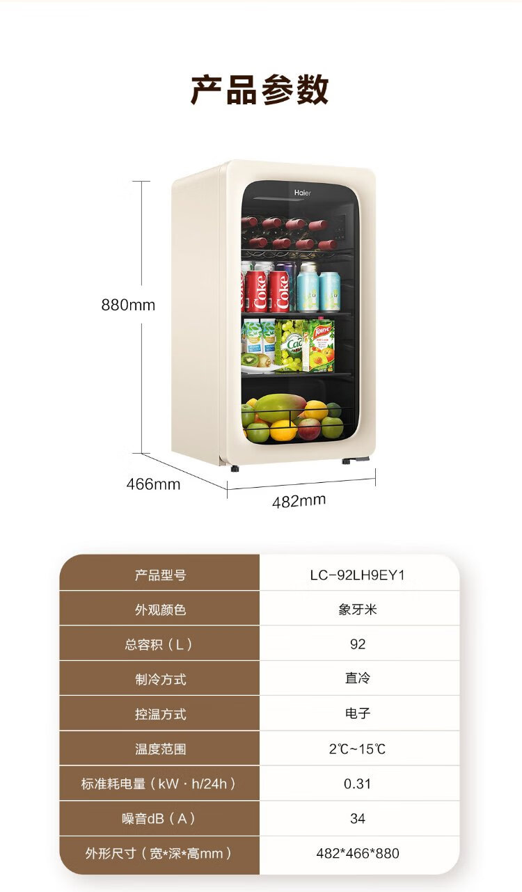 Haier 92 liters living room office ice bar household national subsidy 20% freezer freezer beverage fruit tea fresh cabinet freezer small refrigerator small freezer LC-92LH9EY1