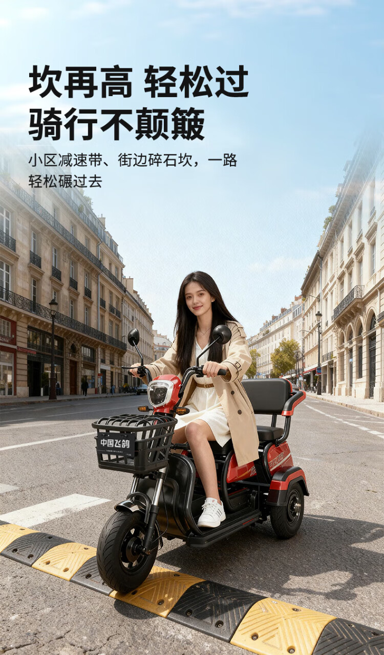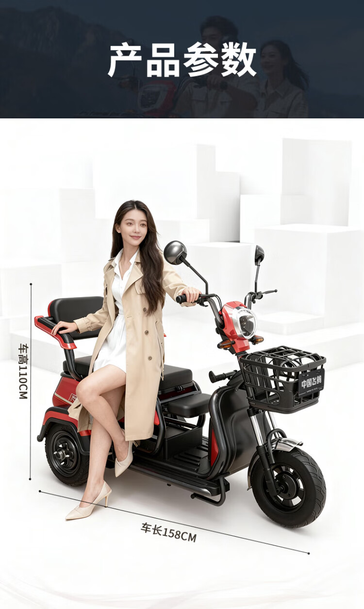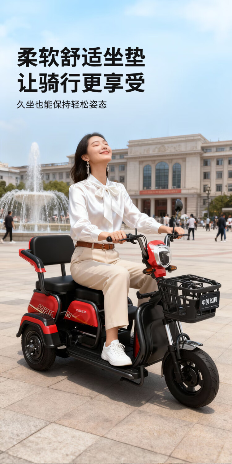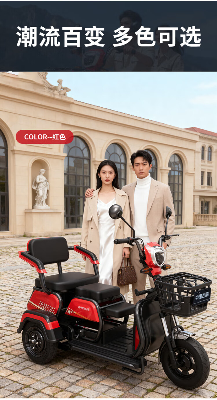 Flying Pigeon Tricycle Electric Car Home Small Elderly Leisure Battery Car Can Bring Carport for Transportation Electric Tricycle 600W Battery Life Version 22A Black Gold + Battery Life 120 Miles