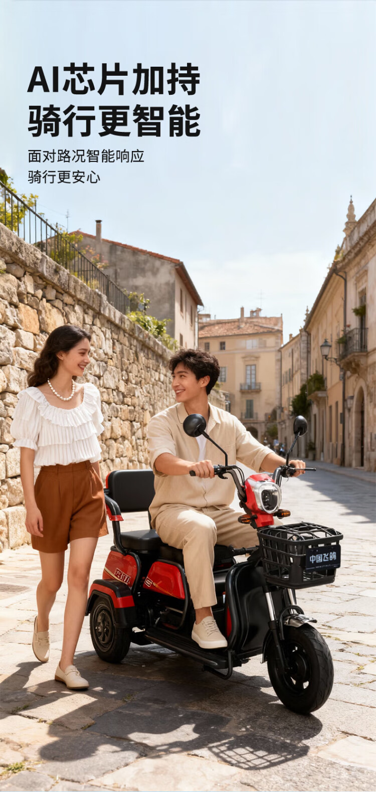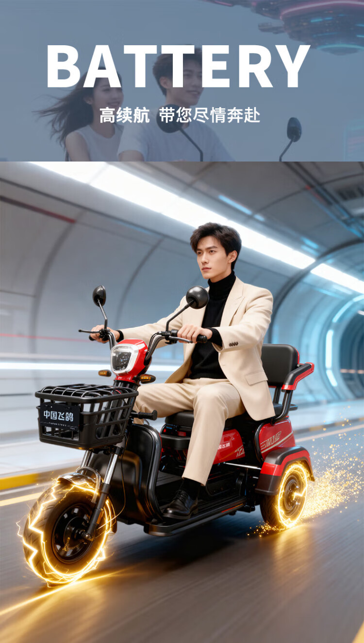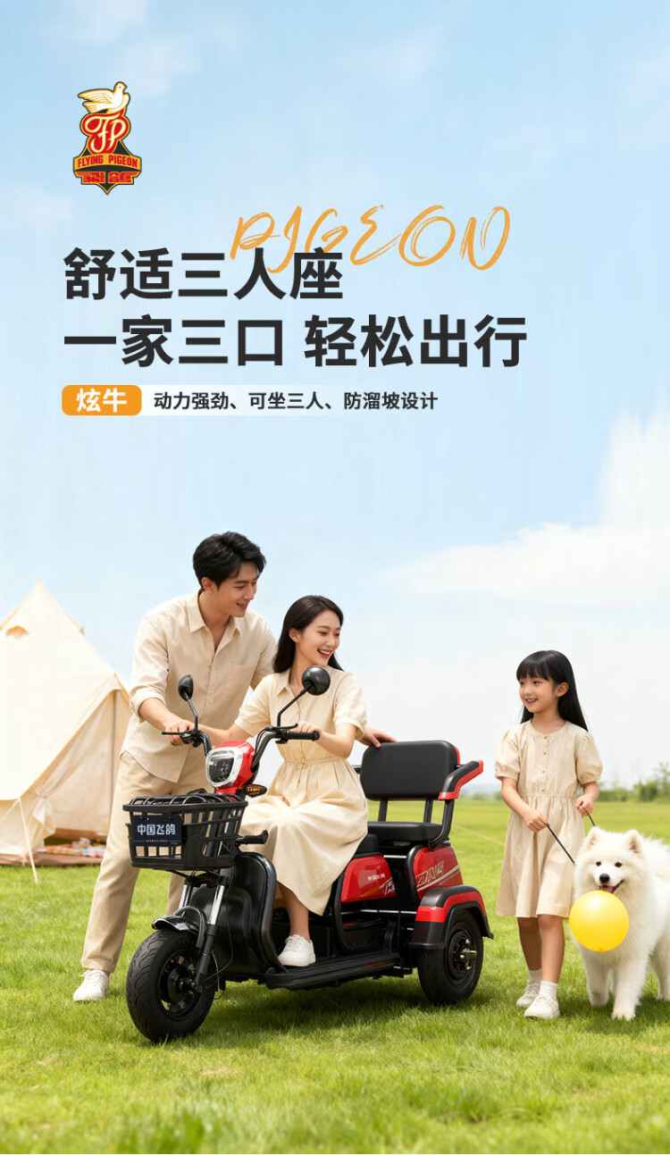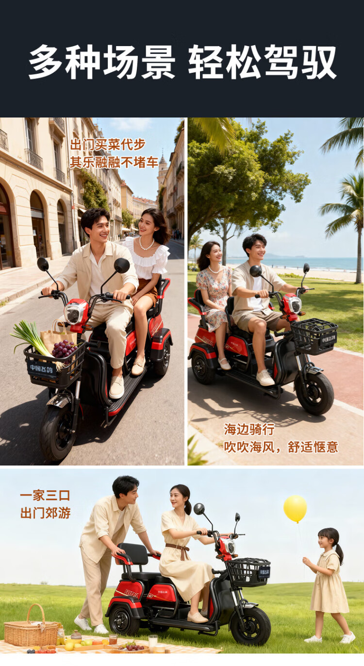 Flying Pigeon Tricycle Electric Car Home Small Elderly Leisure Battery Car Can Bring Carport for Transportation Electric Tricycle 600W Battery Life Version 22A Black Gold + Battery Life 120 Miles