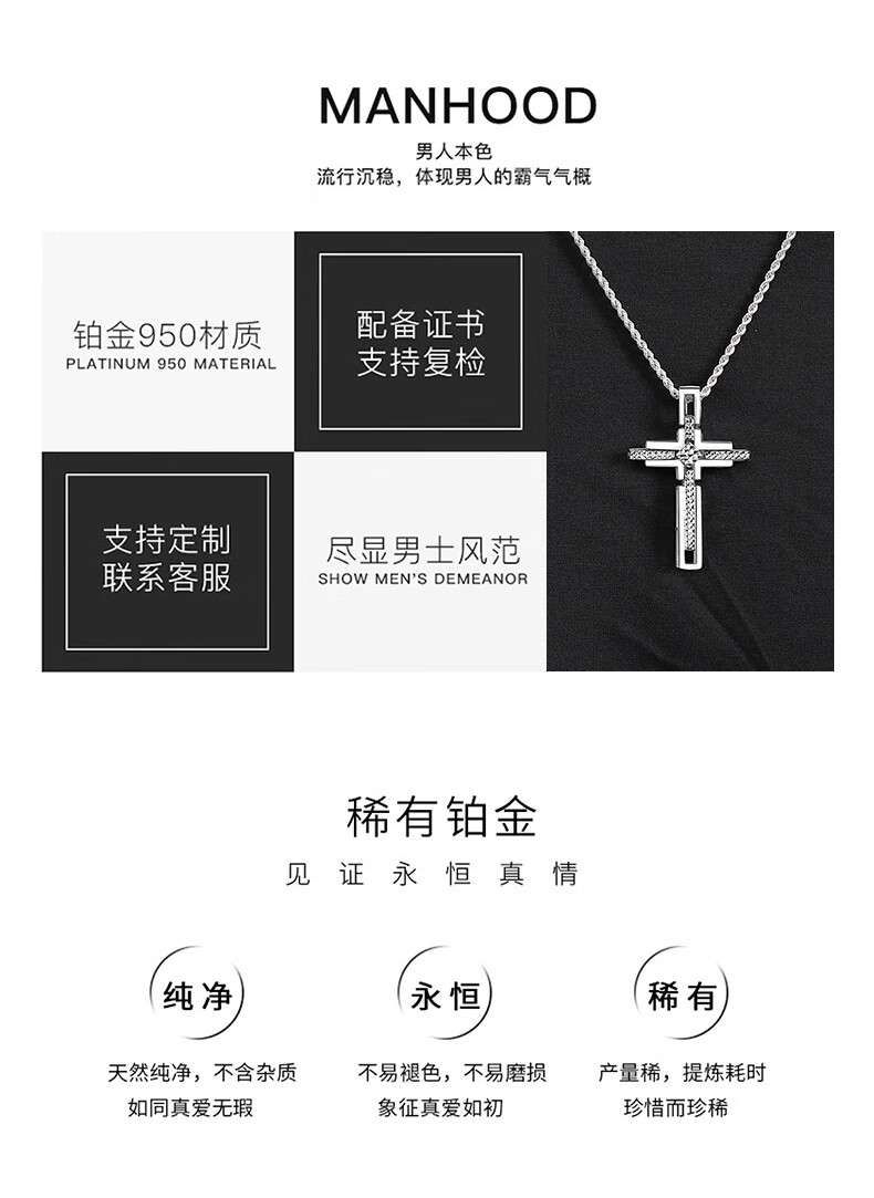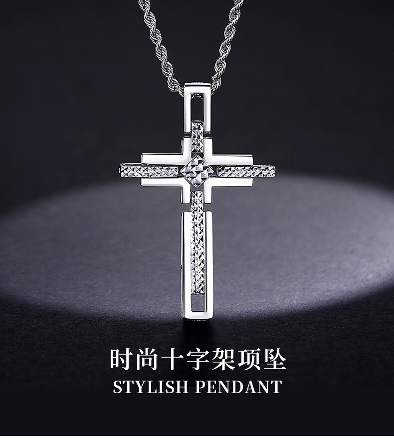 Aido Diamond pt950 platinum pendant for men, platinum cross necklace, fashionable rotatable design pendant for women, pendant 11.7-11.9g+ with black leather rope