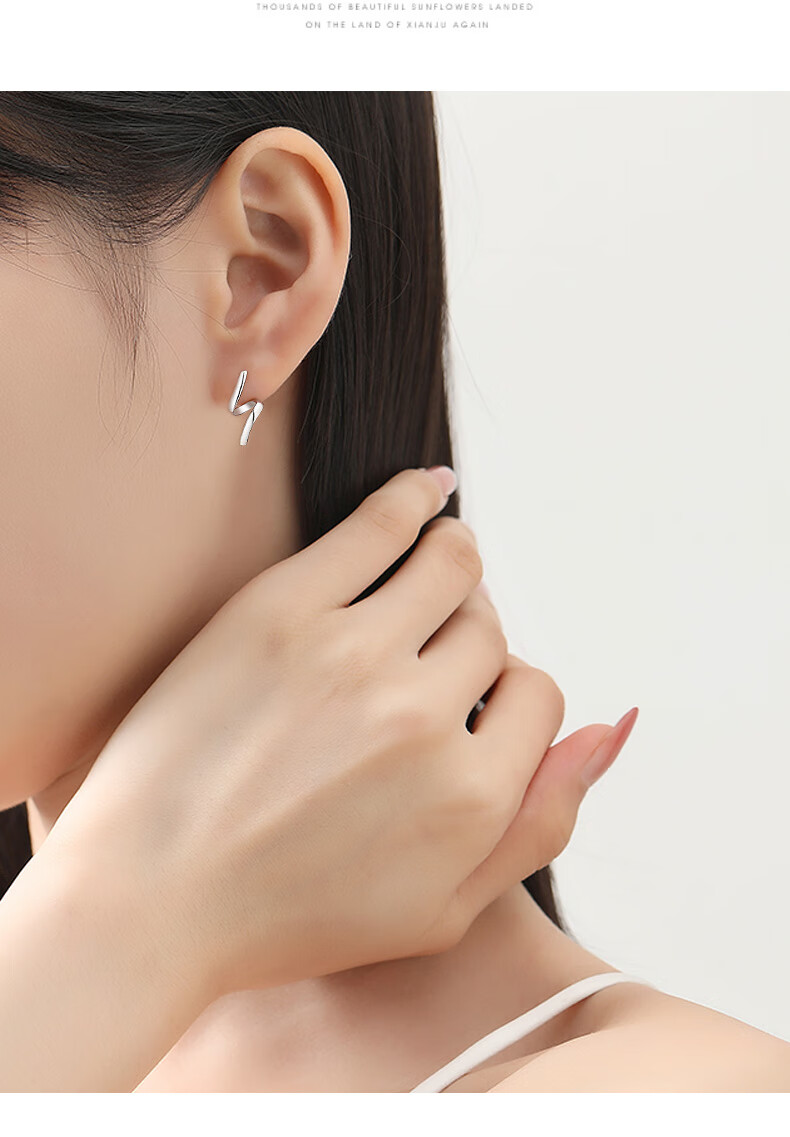 Aido Diamond pt950 platinum earrings for women Z-shaped geometric design platinum earrings versatile fashionable earrings PT950 2.9-3.1g