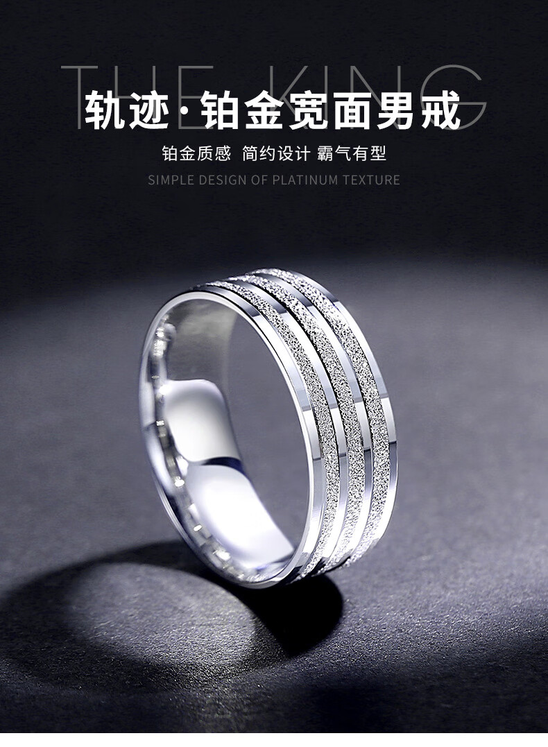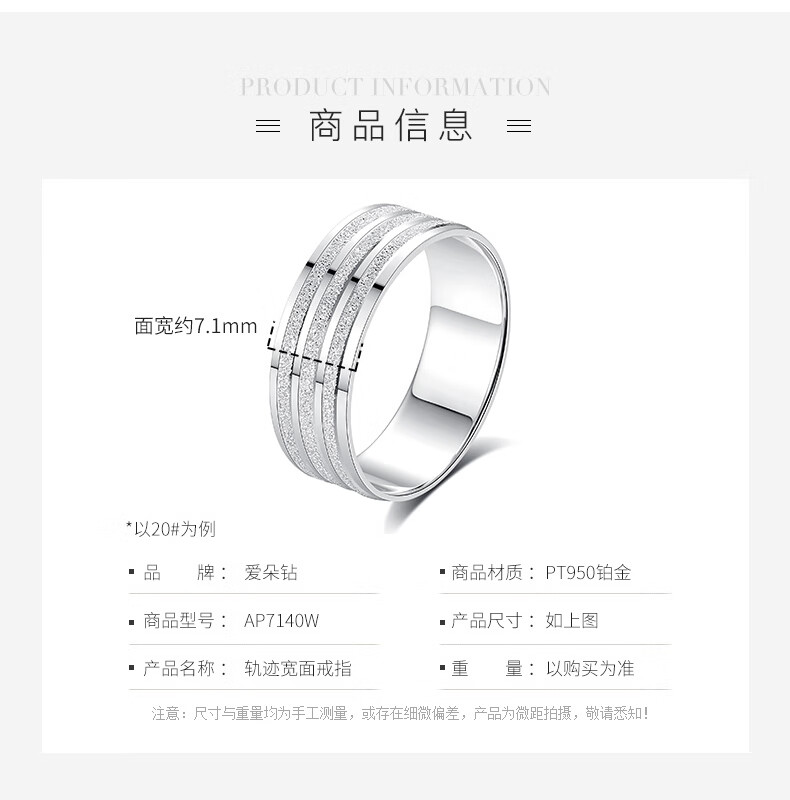 Aido diamond solid platinum ring men's pt950 platinum ring wide face large plain ring 15# 10.0-10.2g width about 7mm