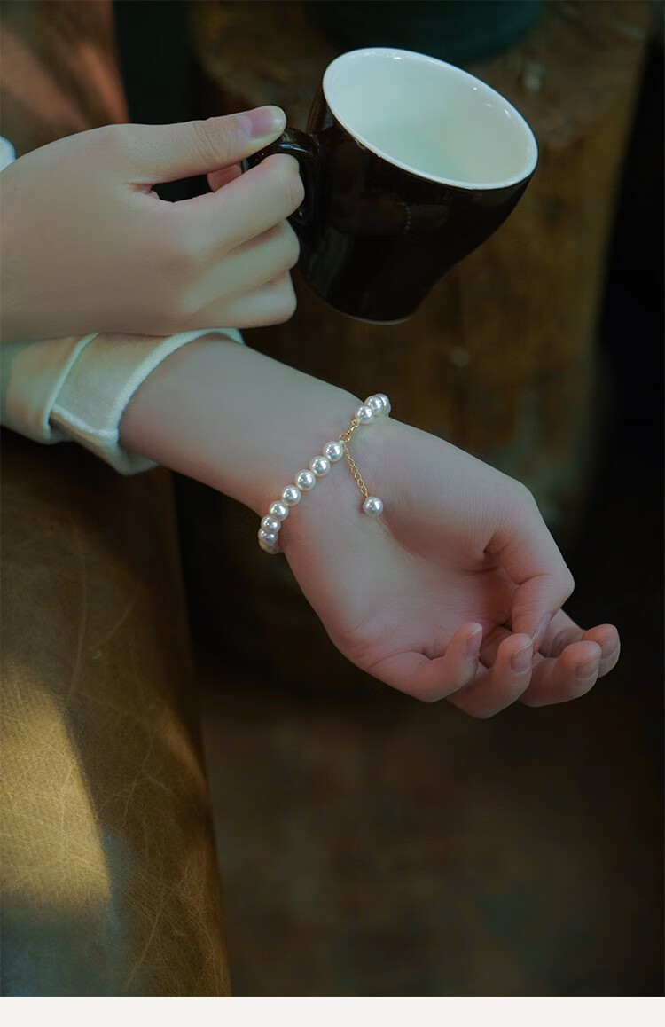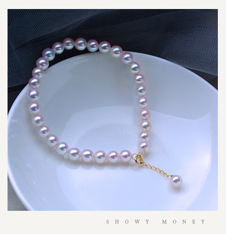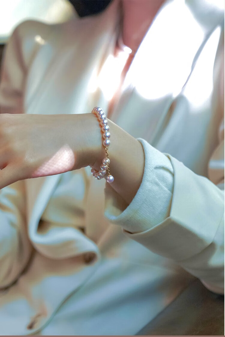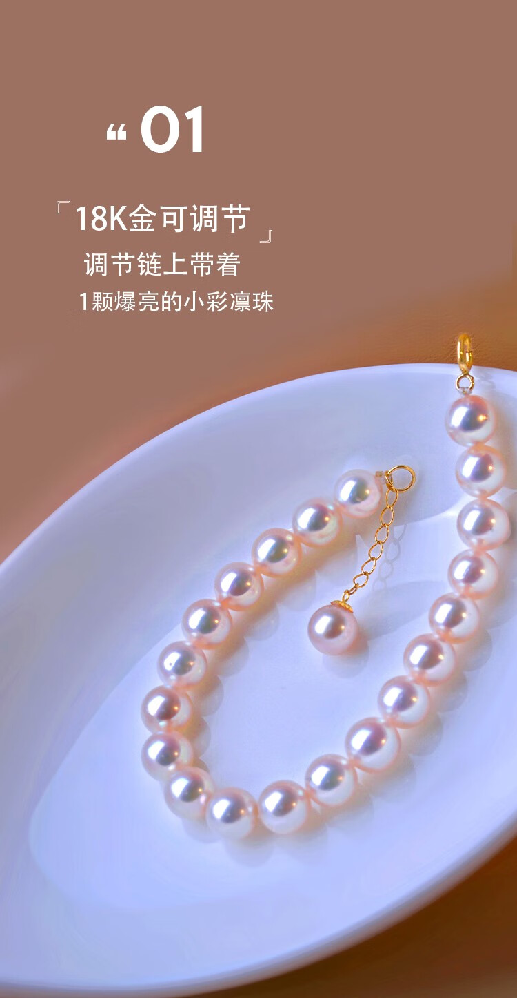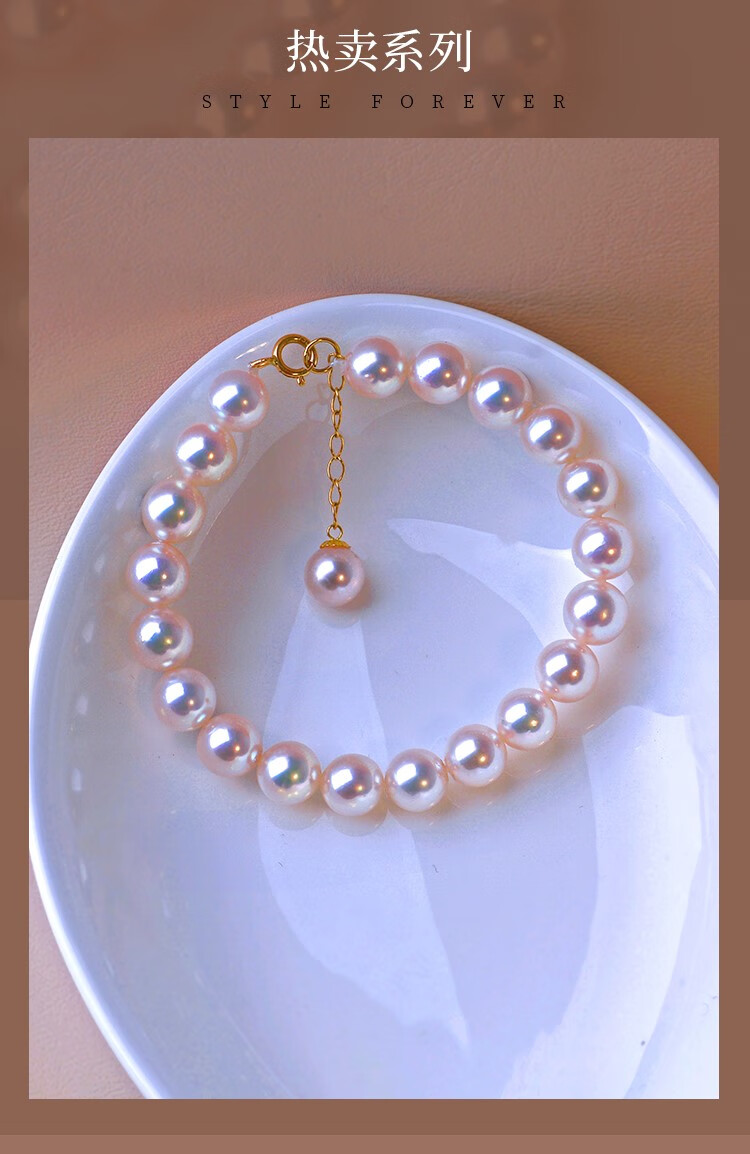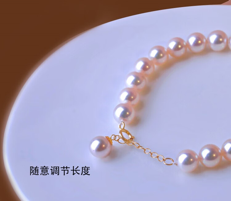 Ancient Japanese aoya natural seawater pearl bracelet 18 gold bracelet bracelet with extremely bright white and transparent pink round beads Style 1 (please note if you want white/pink) 16cm6-7mm