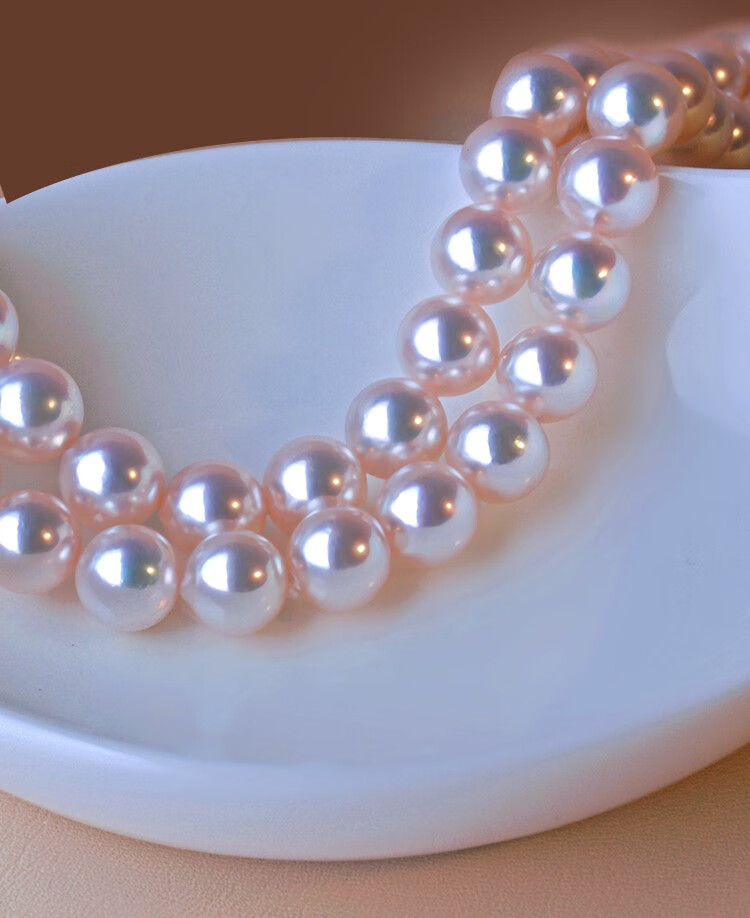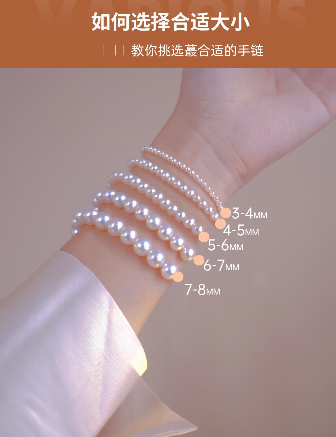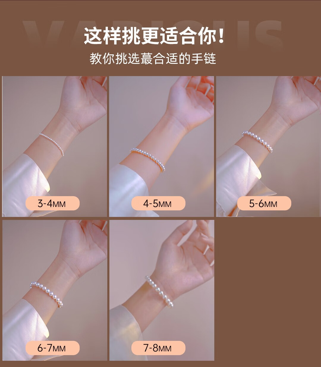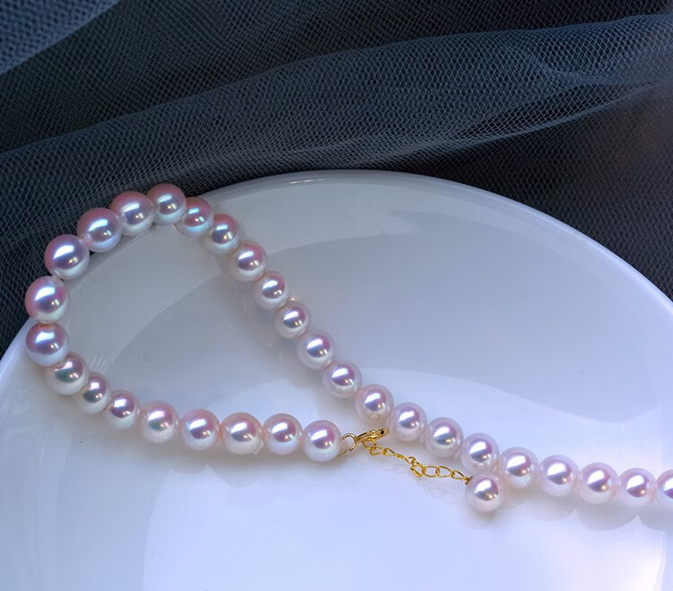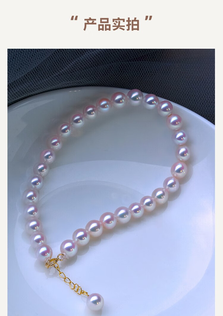 Ancient Japanese aoya natural seawater pearl bracelet 18 gold bracelet bracelet with extremely bright white and transparent pink round beads Style 1 (please note if you want white/pink) 16cm6-7mm