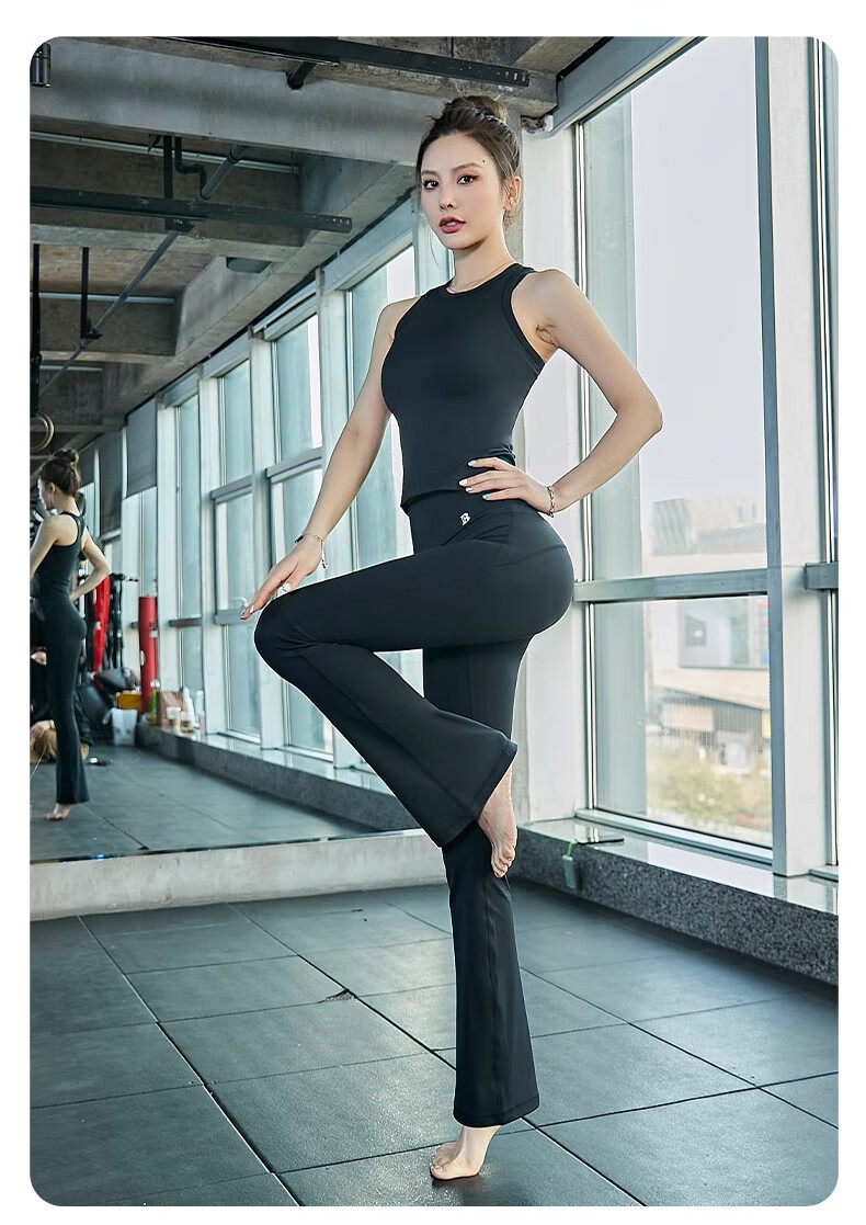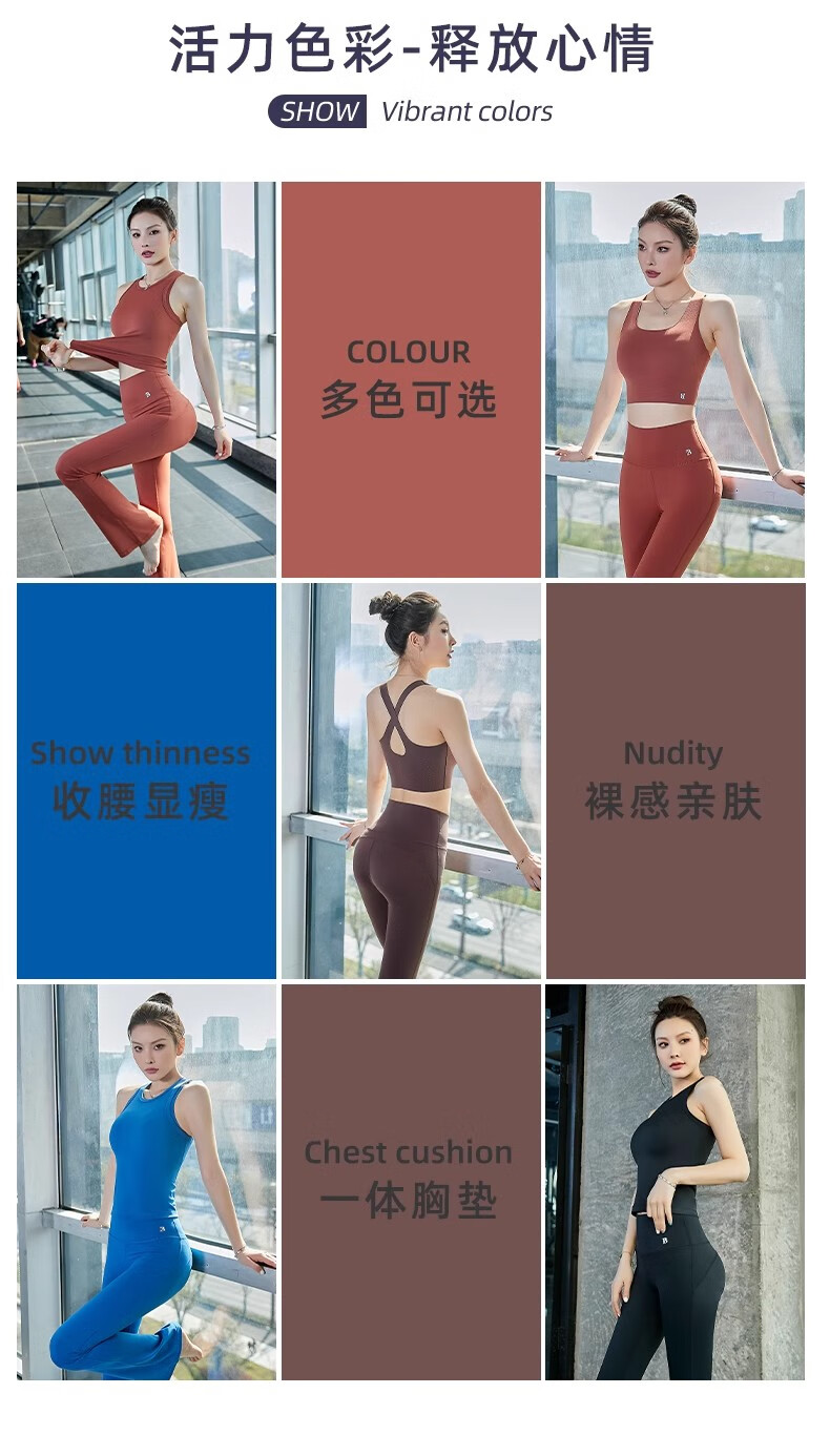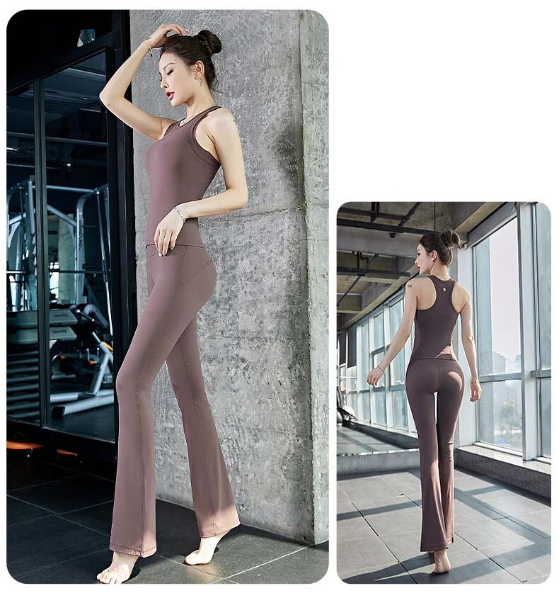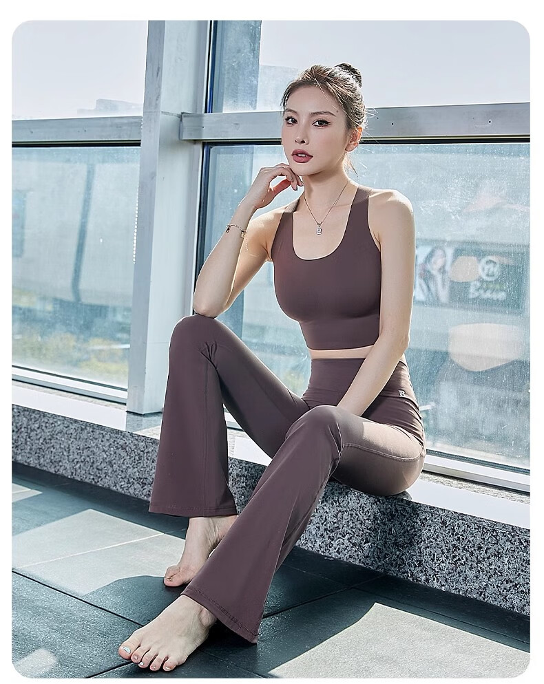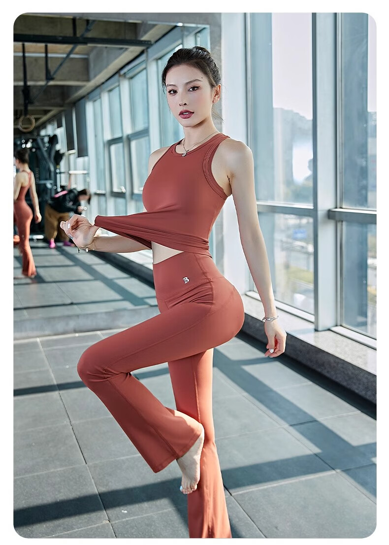 Rodicis Cycling Suit Set Women's Sleeveless Vest Style Yoga Wear Summer Beautiful Back Integrated Chest Pad Morning Running Fitness Sportswear Moka Brown Vest + Moka Brown Pants Without Chest Pad XL