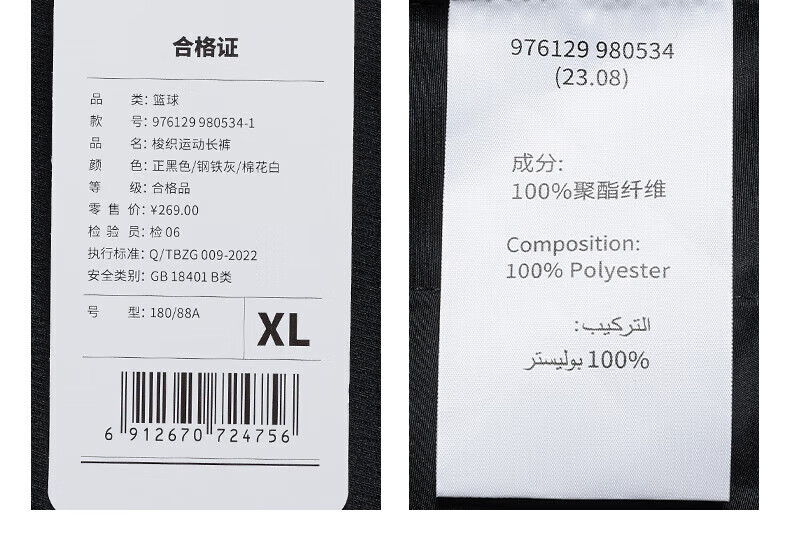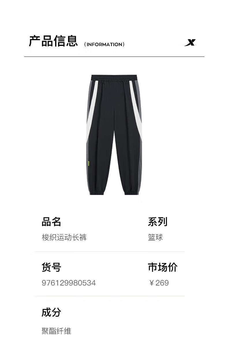 XTEP store same style woven sports trousers for men 2024 spring new loose leggings fashion casual pants men's trousers black/steel gray/cotton white L