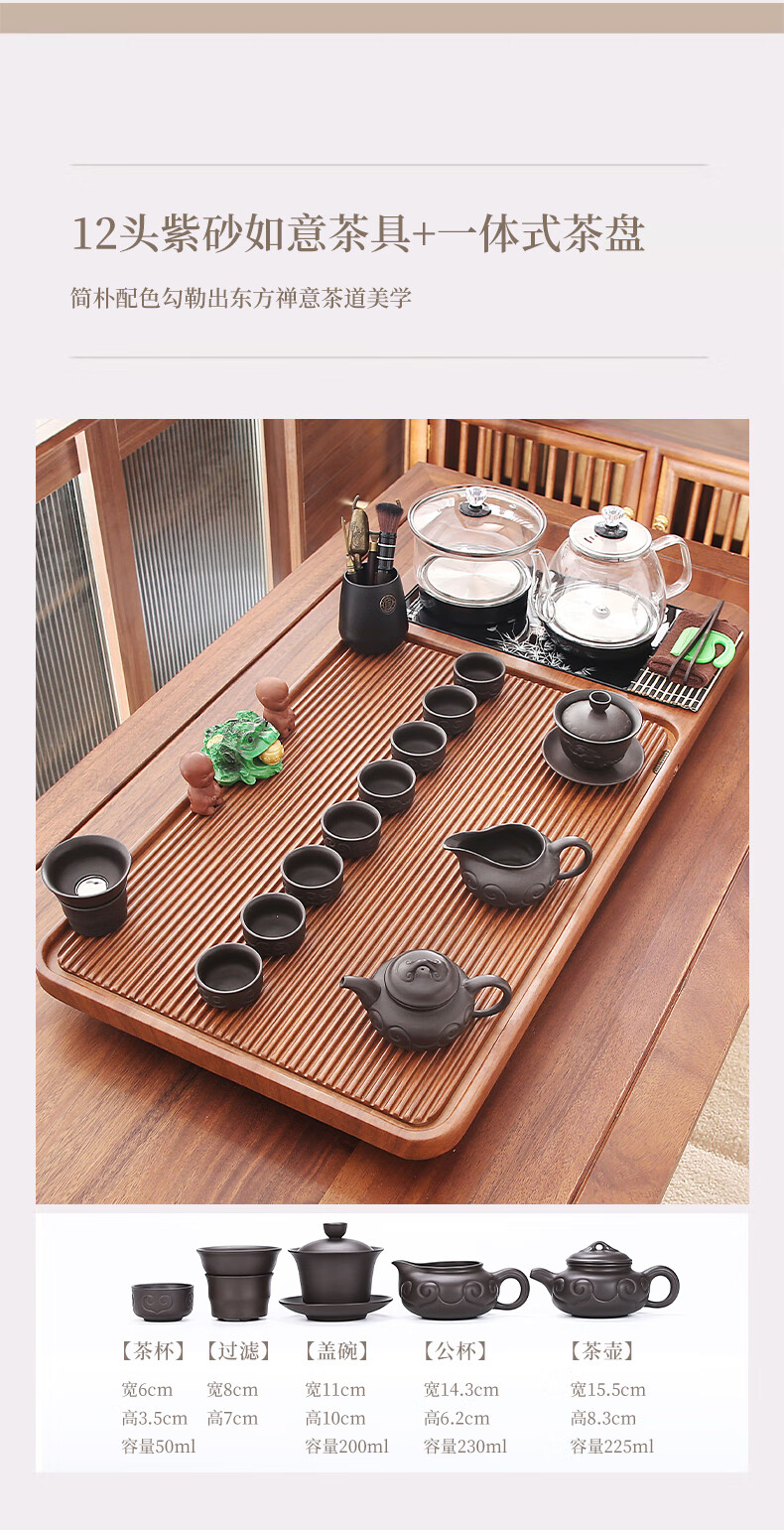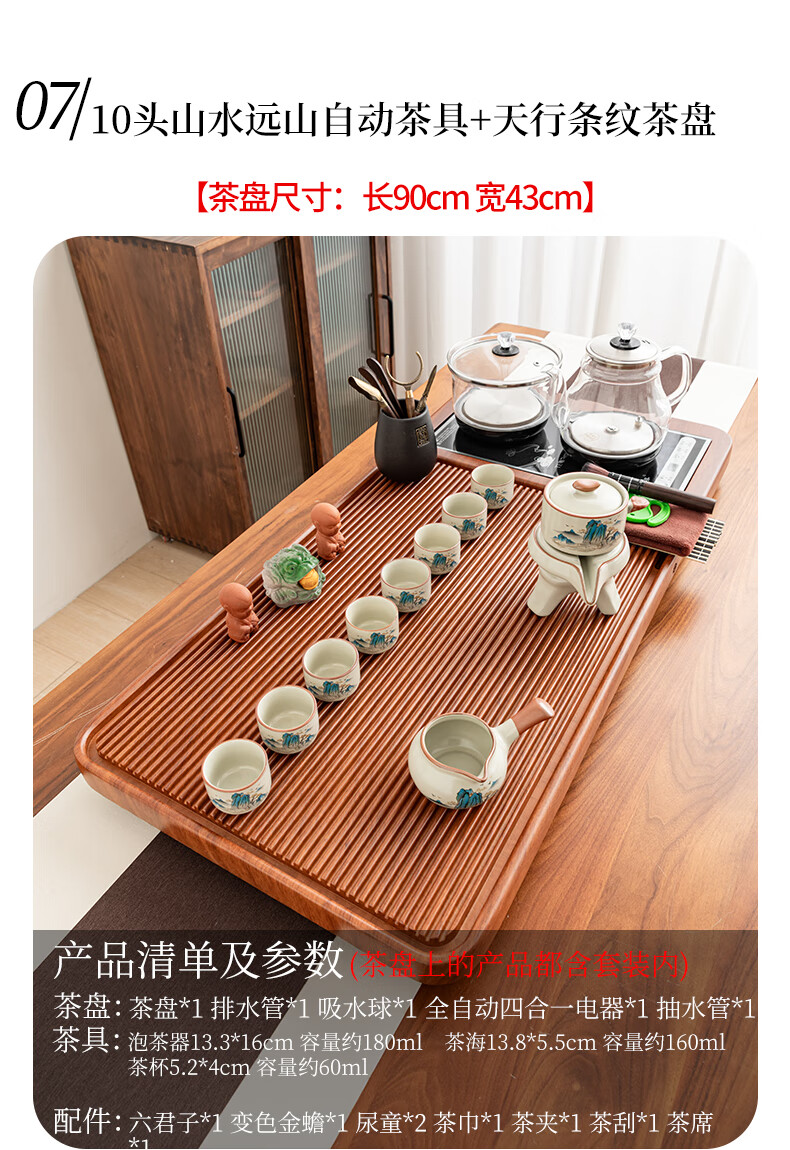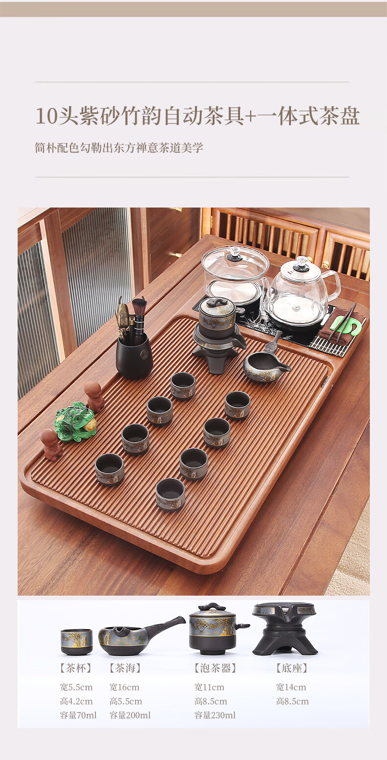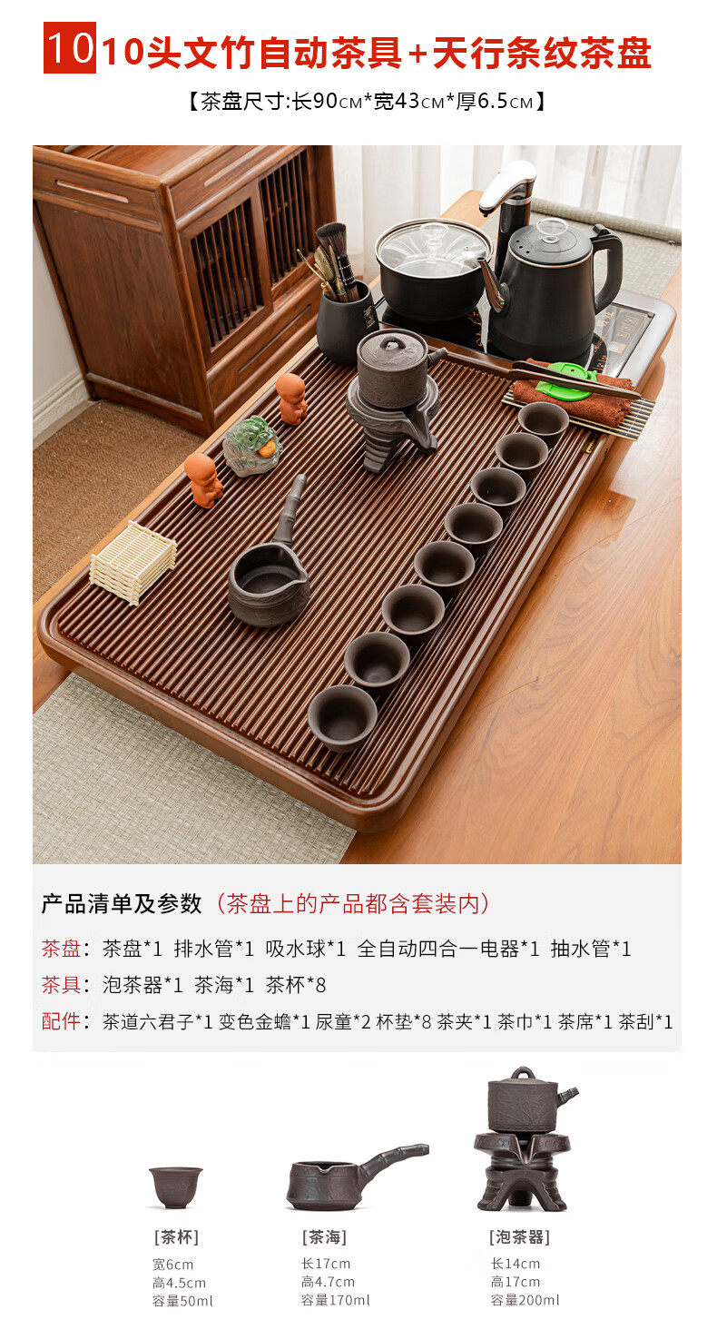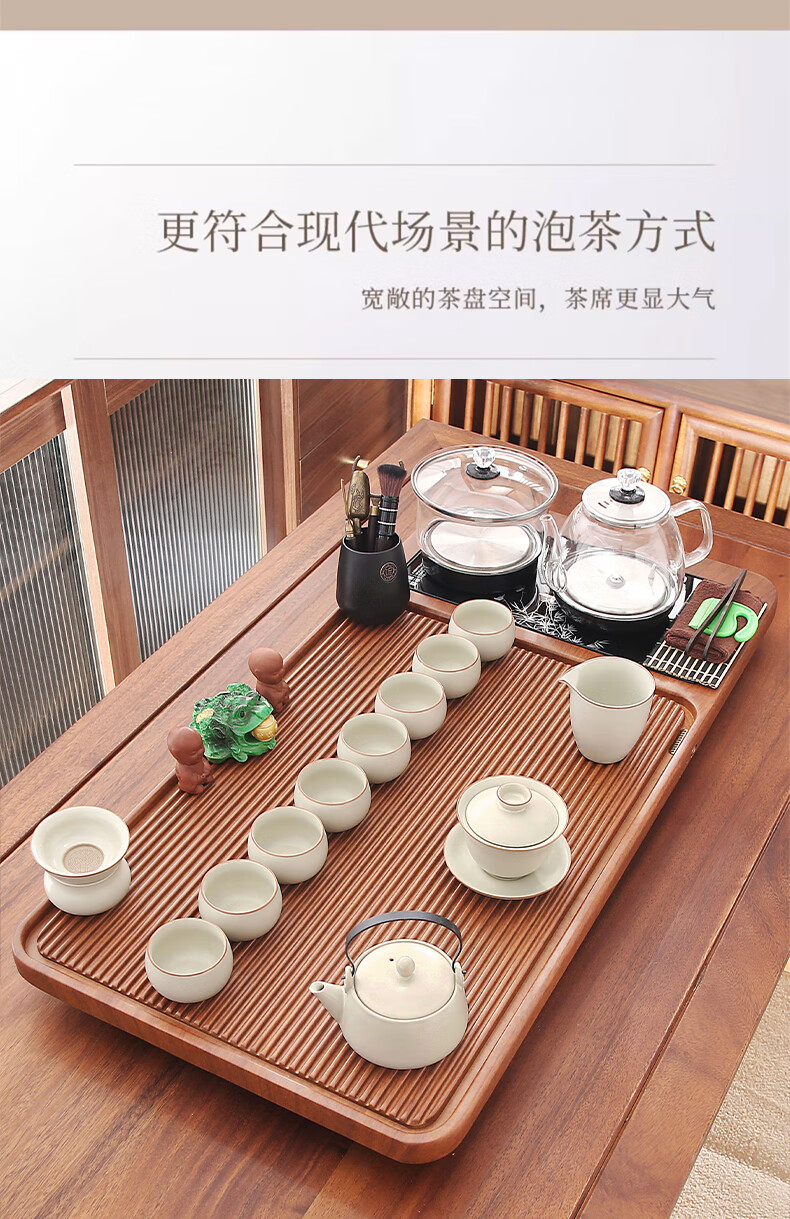 Shangfu Tea Set Fully Automatic Bamboo Tea Tray Thickened Home Tea Table Kettle All-in-One Complete Set of Kung Fu Tea Ceremony Tianxing Striped Tea Tray No Electrical Appliances