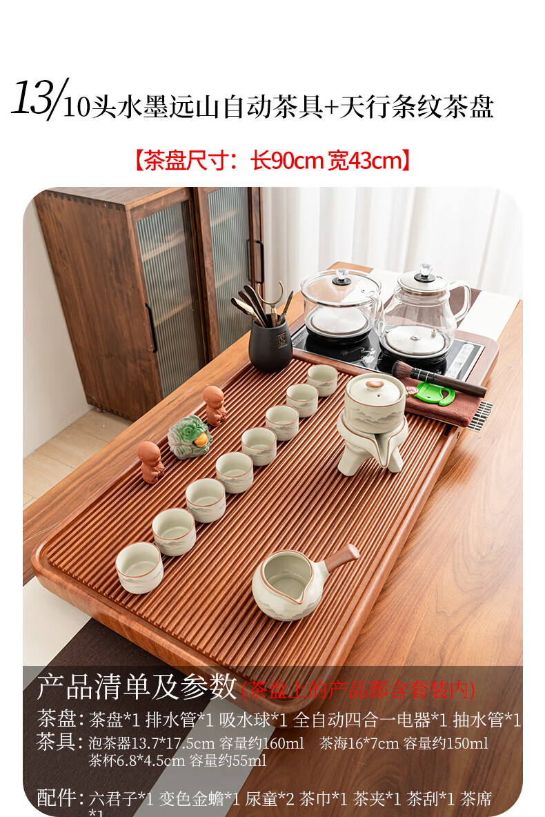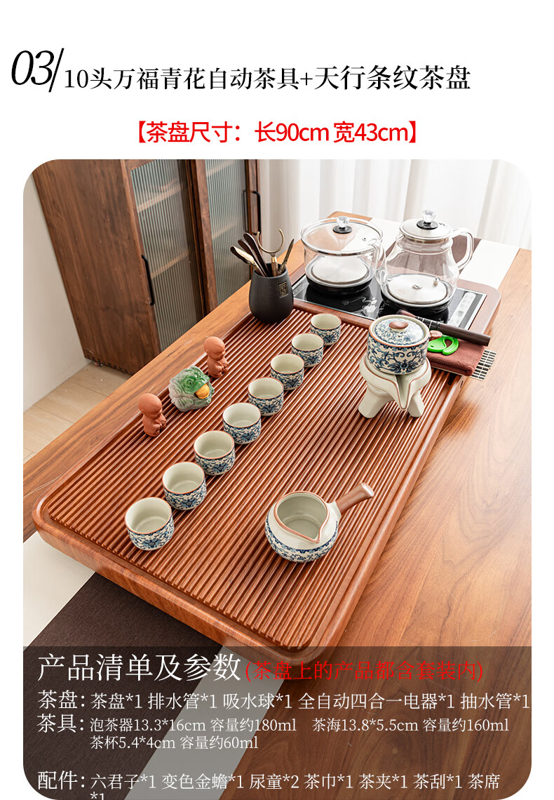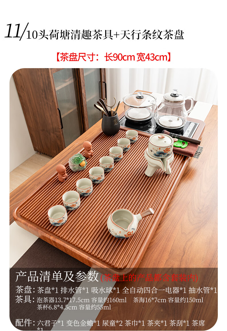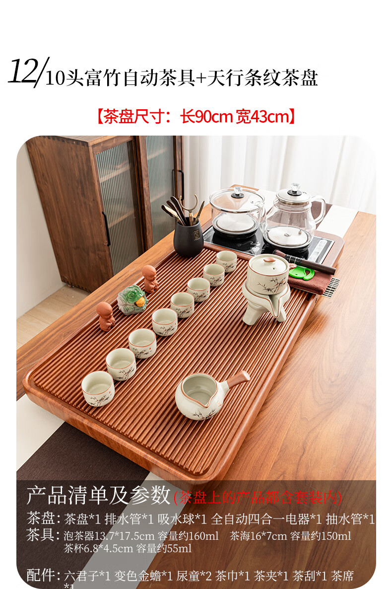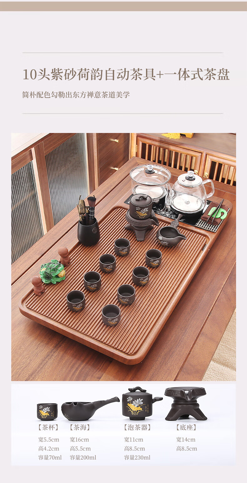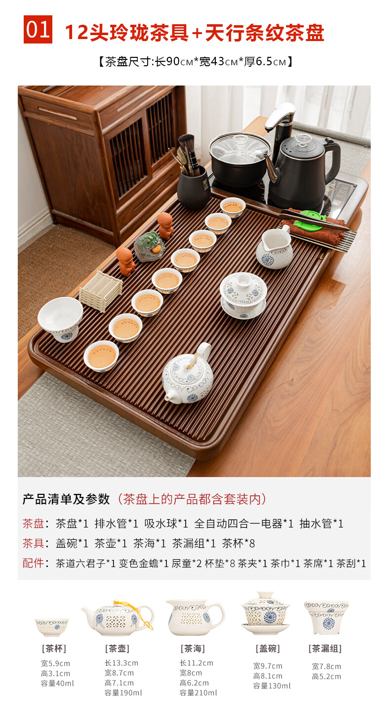 Shangfu Tea Set Fully Automatic Bamboo Tea Tray Thickened Home Tea Table Kettle All-in-One Complete Set of Kung Fu Tea Ceremony Tianxing Striped Tea Tray No Electrical Appliances