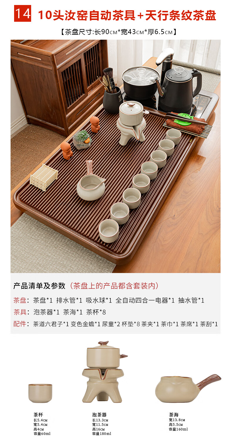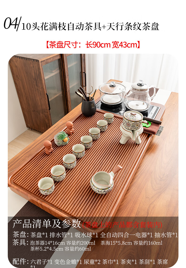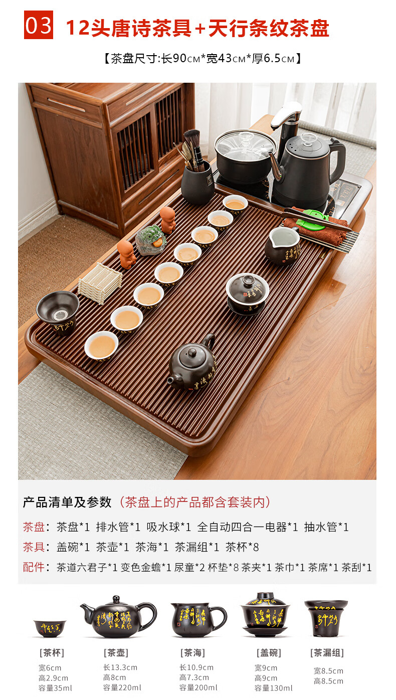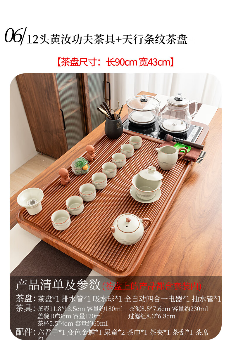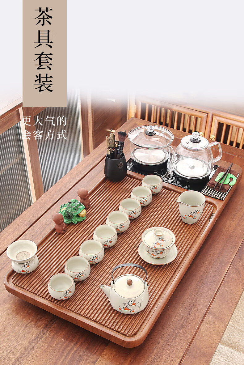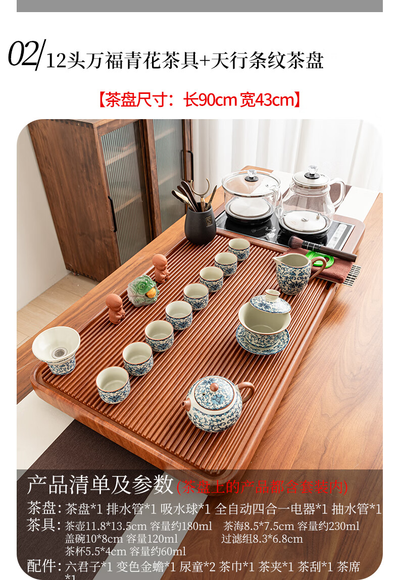 Shangfu Tea Set Fully Automatic Bamboo Tea Tray Thickened Home Tea Table Kettle All-in-One Complete Set of Kung Fu Tea Ceremony Tianxing Striped Tea Tray No Electrical Appliances