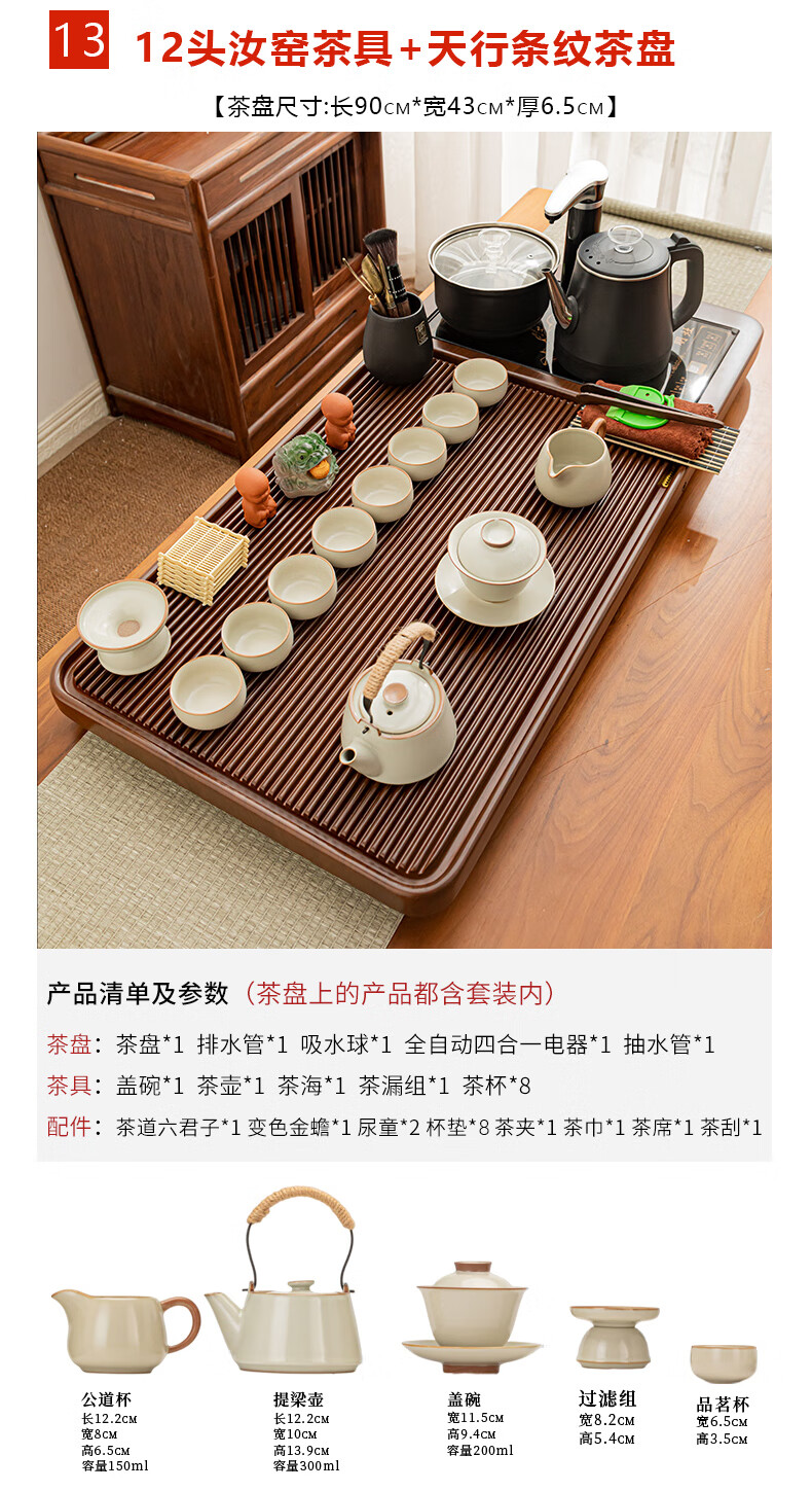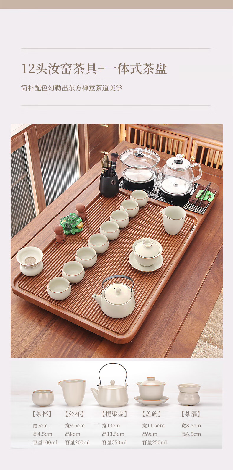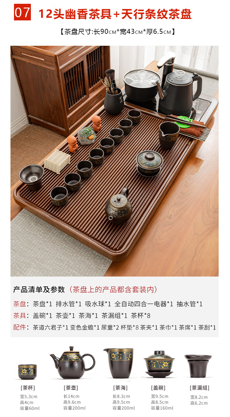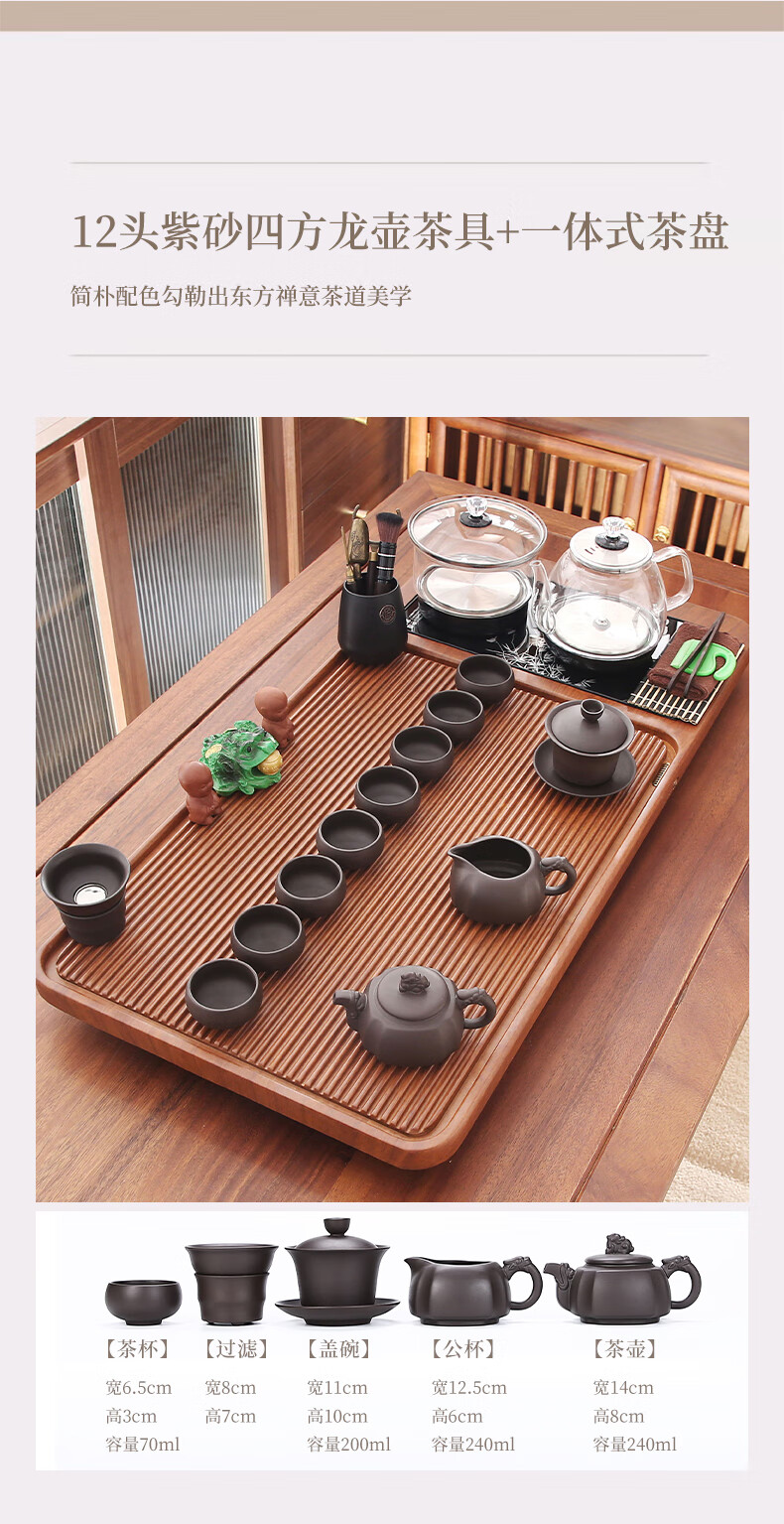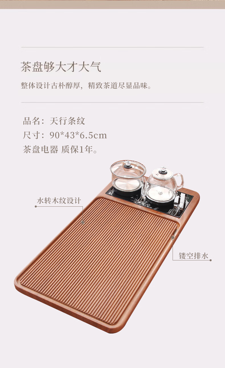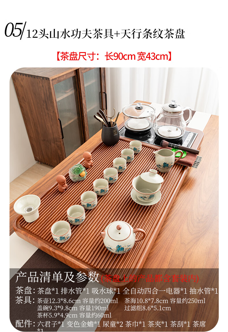 Shangfu Tea Set Fully Automatic Bamboo Tea Tray Thickened Home Tea Table Kettle All-in-One Complete Set of Kung Fu Tea Ceremony Tianxing Striped Tea Tray No Electrical Appliances