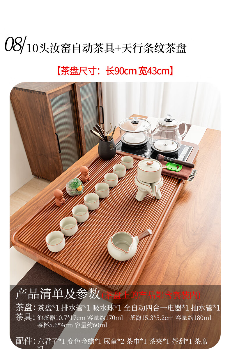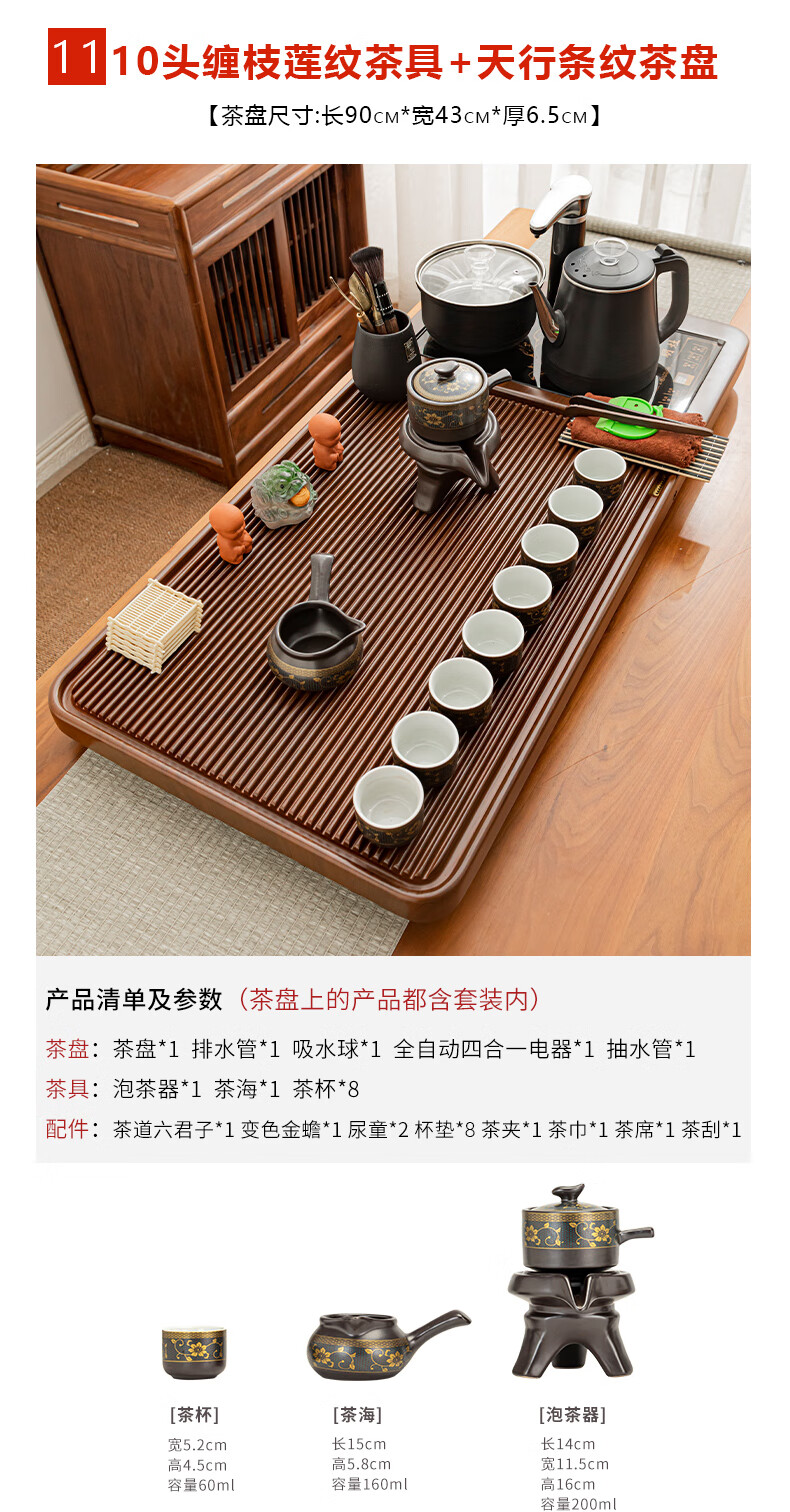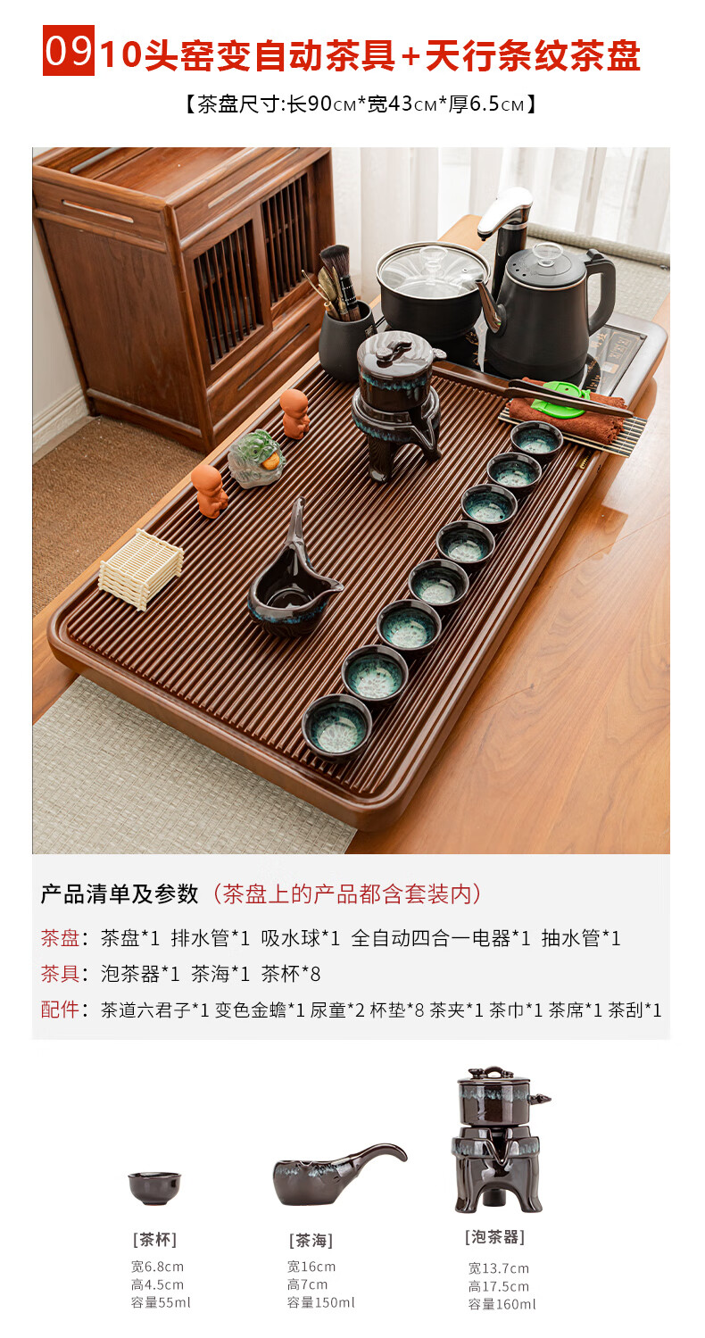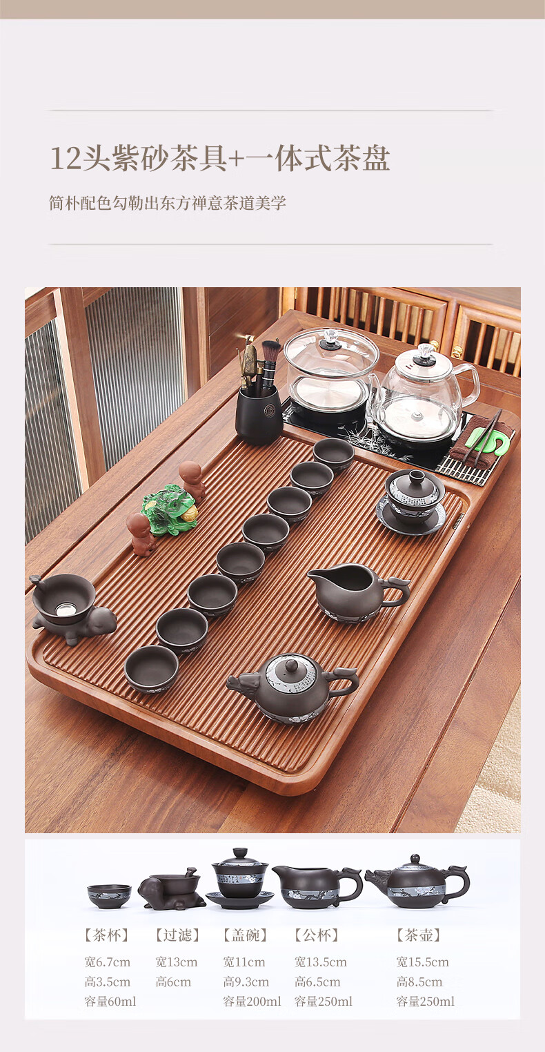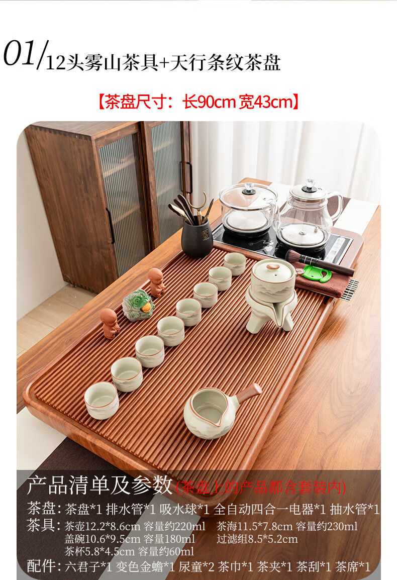Shangfu Tea Set Fully Automatic Bamboo Tea Tray Thickened Home Tea Table Kettle All-in-One Complete Set of Kung Fu Tea Ceremony Tianxing Striped Tea Tray No Electrical Appliances