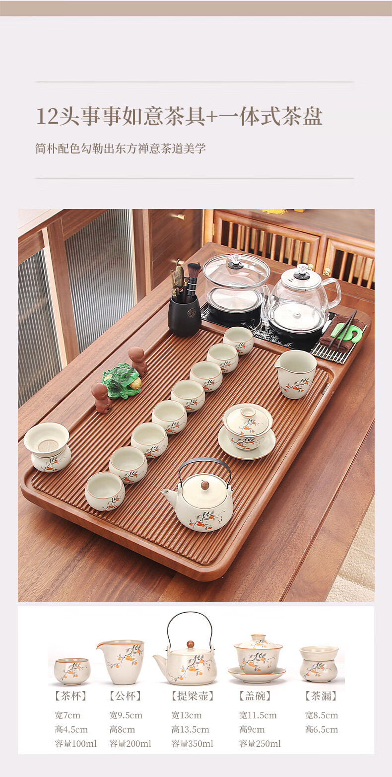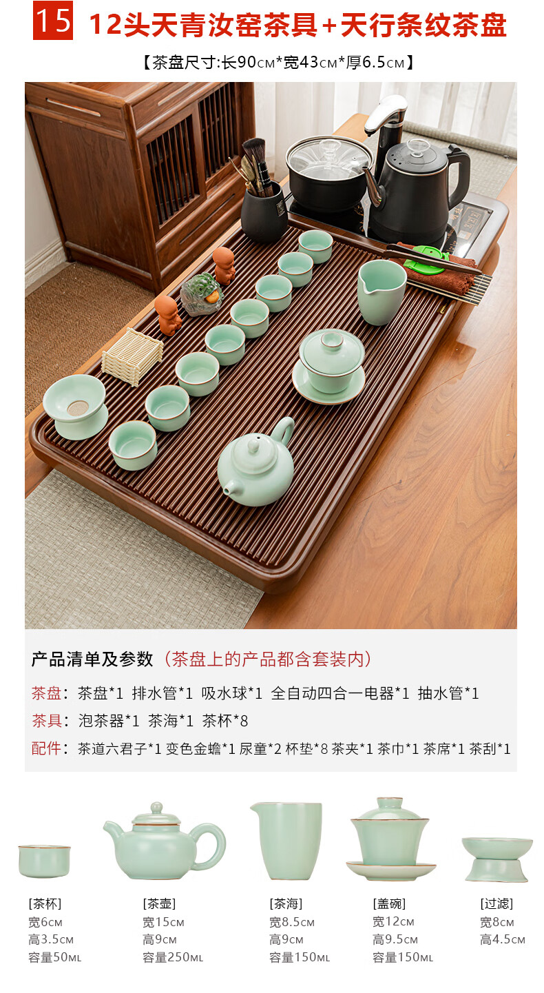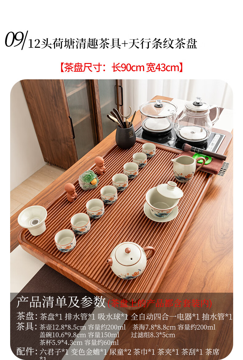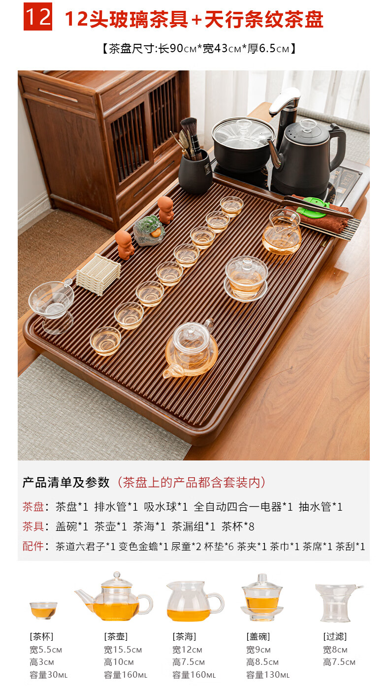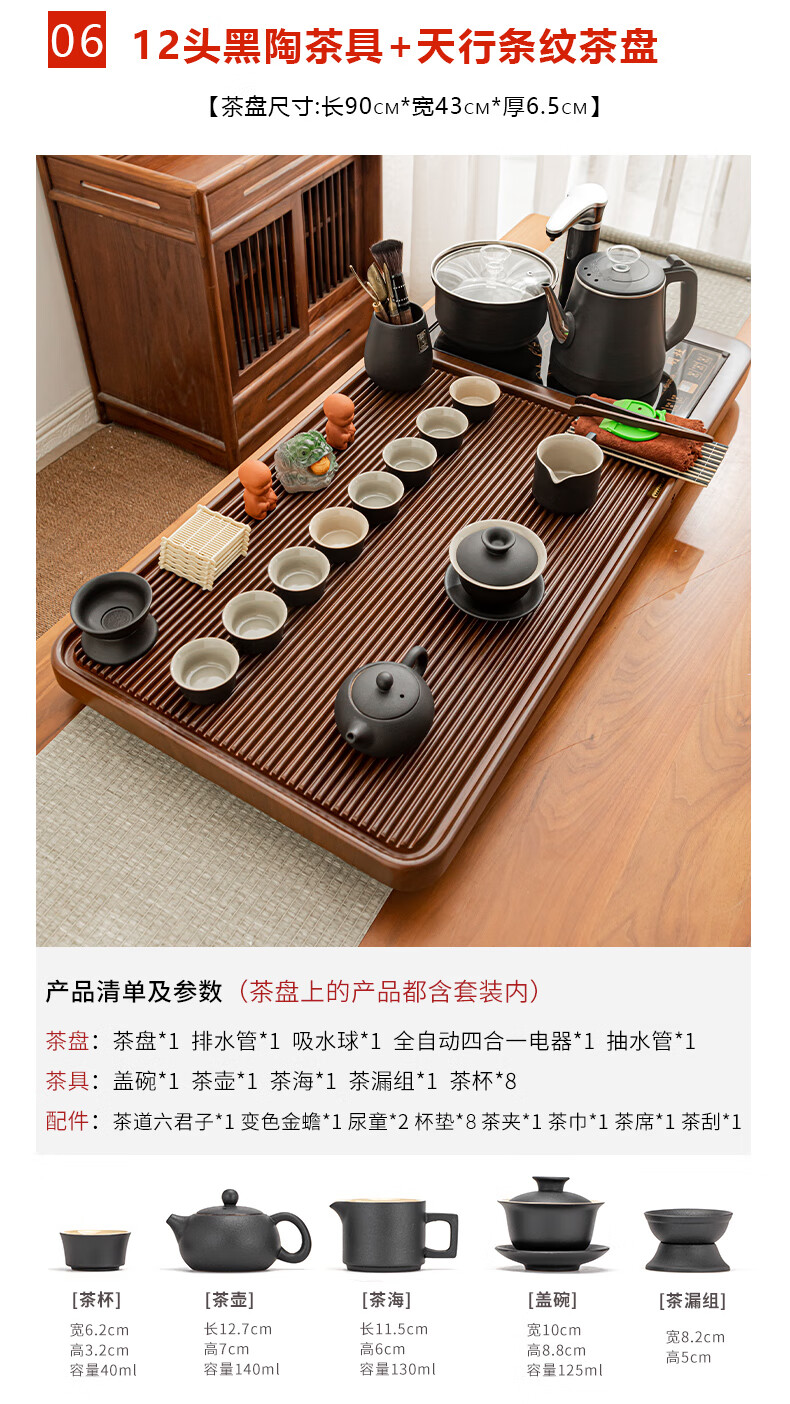 Shangfu Tea Set Fully Automatic Bamboo Tea Tray Thickened Home Tea Table Kettle All-in-One Complete Set of Kung Fu Tea Ceremony Tianxing Striped Tea Tray No Electrical Appliances