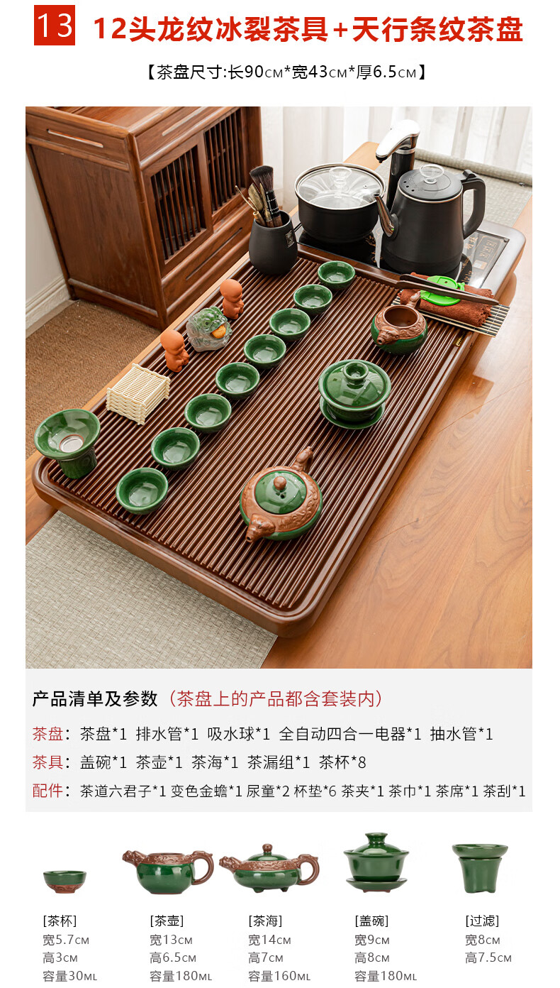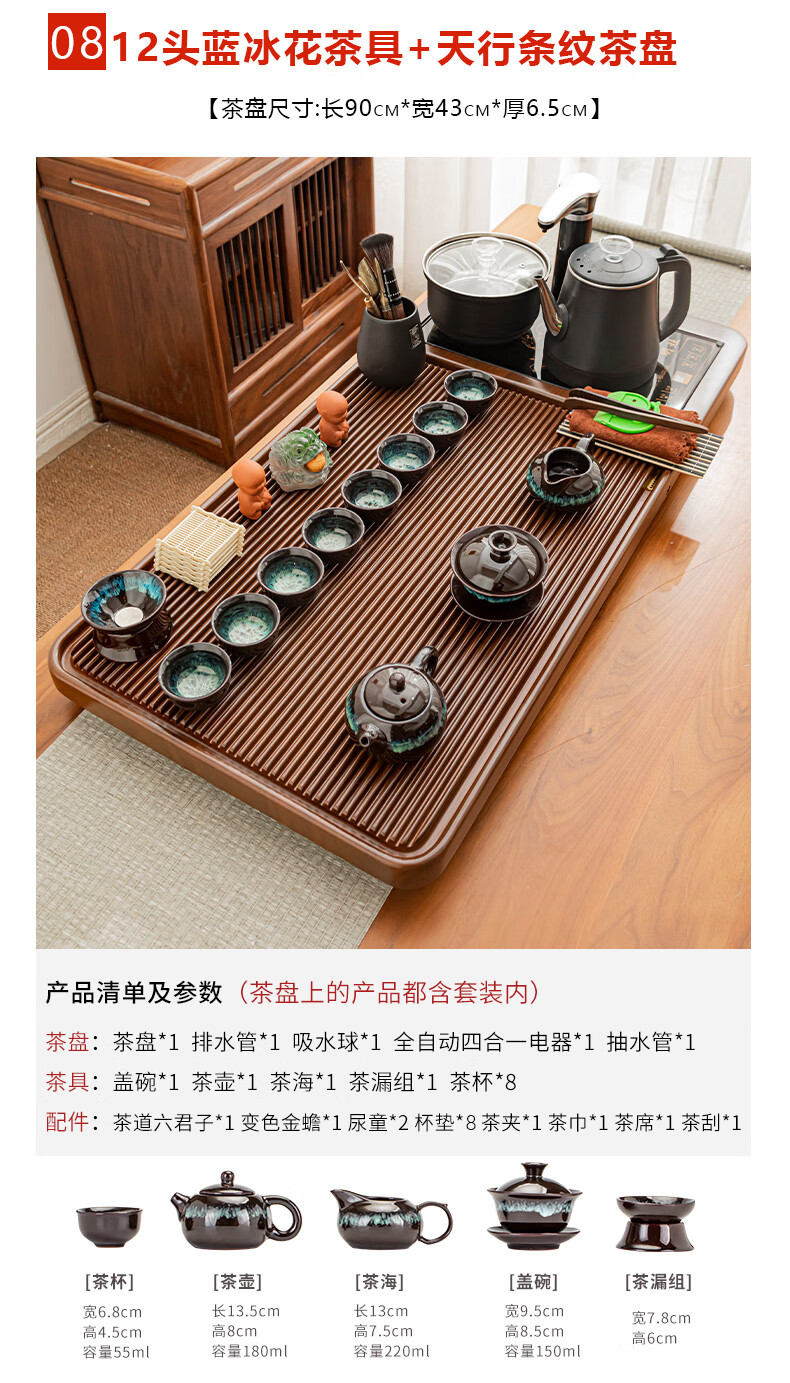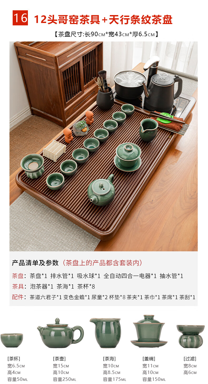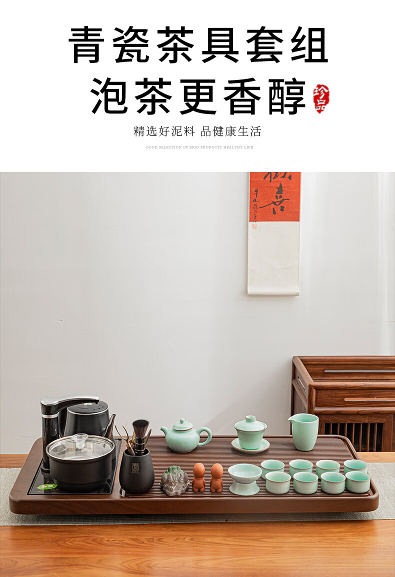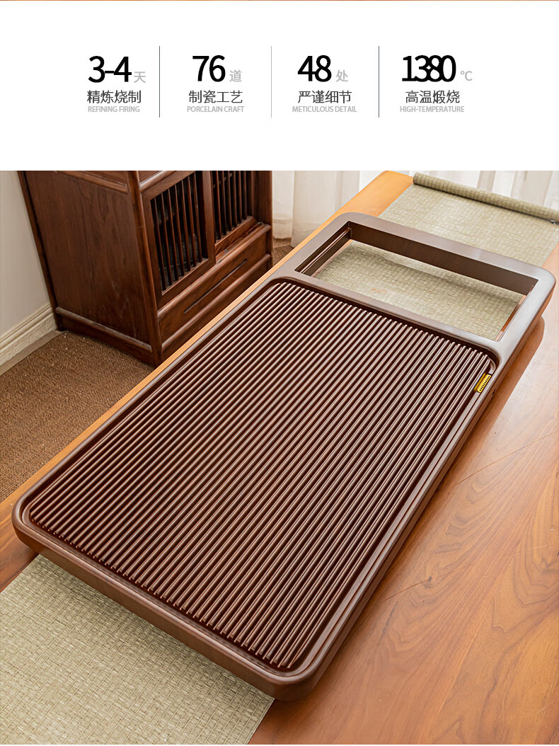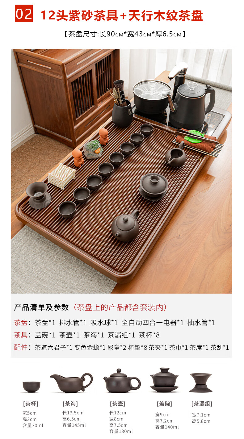 Shangfu Tea Set Fully Automatic Bamboo Tea Tray Thickened Home Tea Table Kettle All-in-One Complete Set of Kung Fu Tea Ceremony Tianxing Striped Tea Tray No Electrical Appliances
