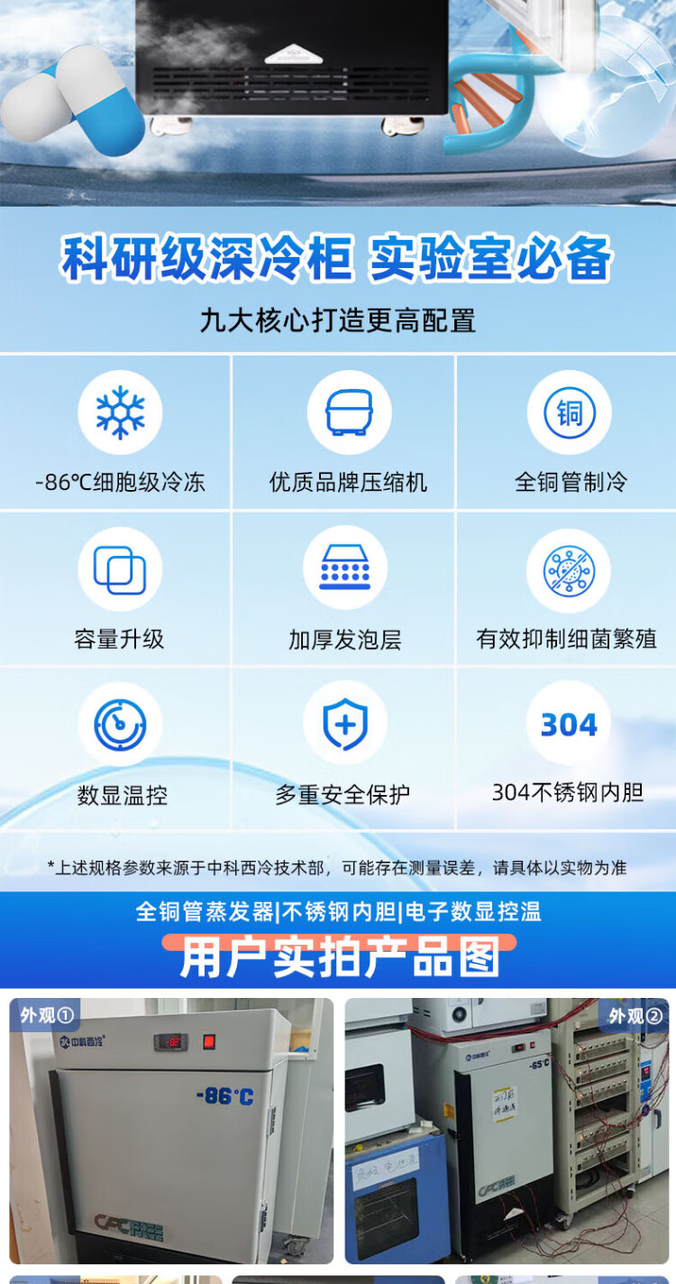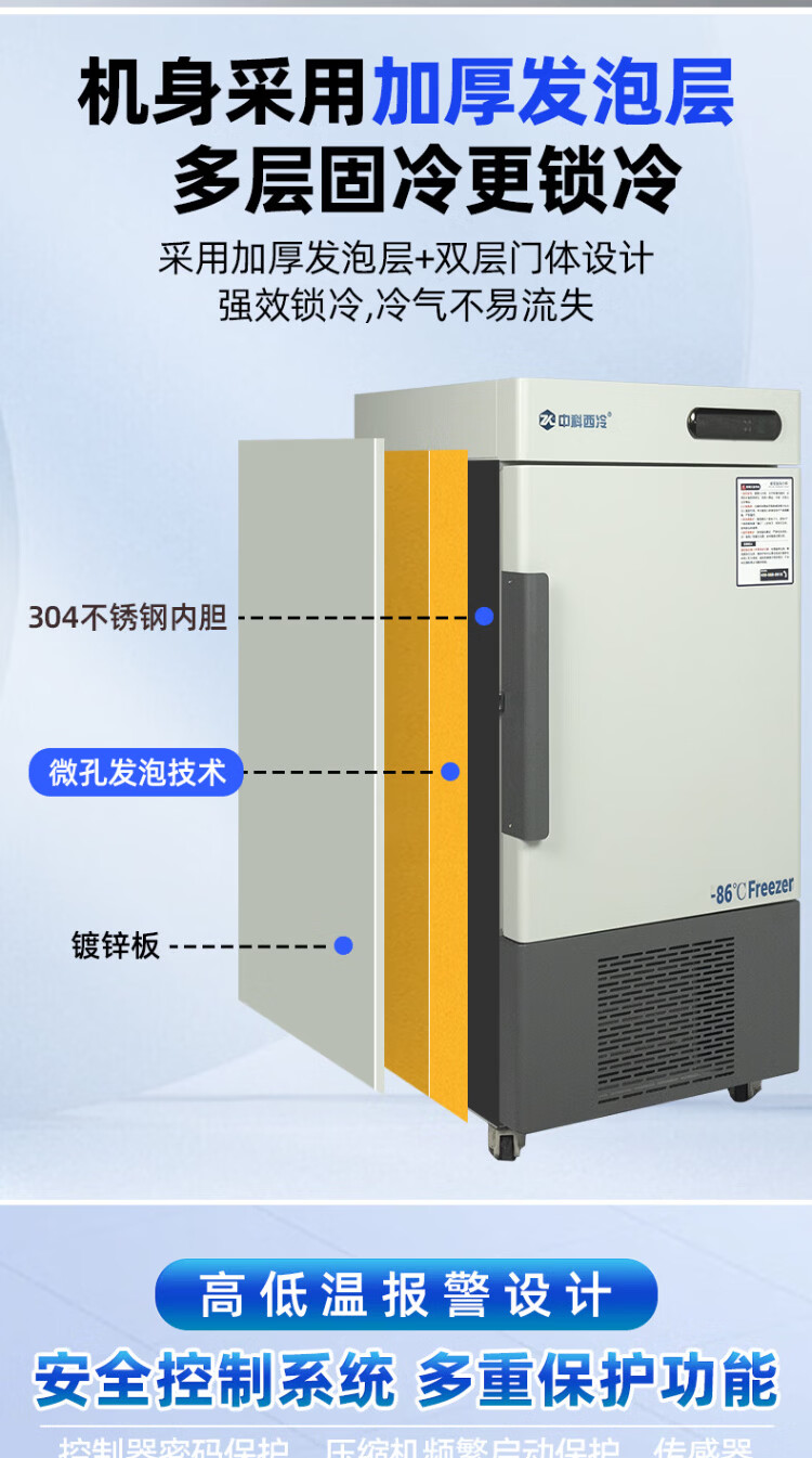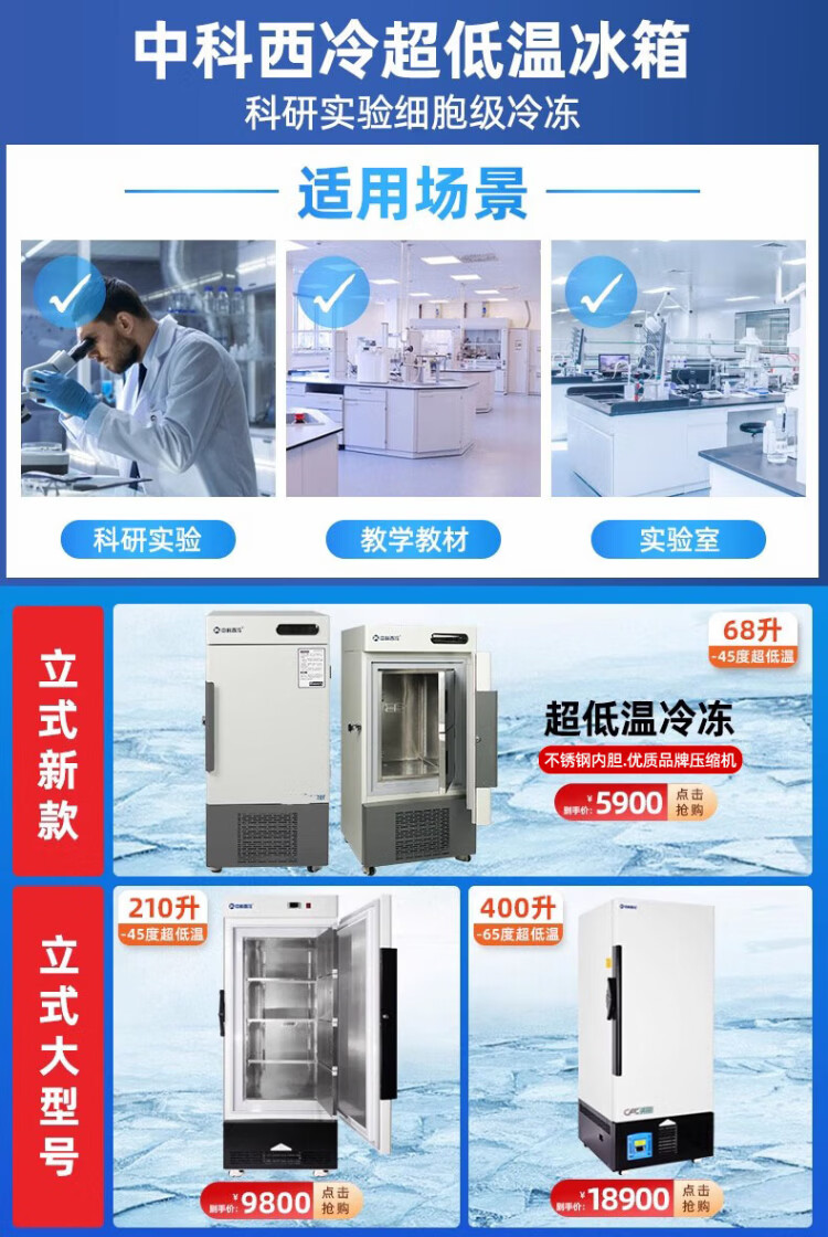 Zhongke Xileng ultra-low temperature refrigerator -80 degrees scientific research laboratory freezer -60 biological dry ice strains -40 commercial specimen cryogenic storage refrigeration and preservation quick-freezer ultra-low temperature 68L -40 to -86 degrees adjustable