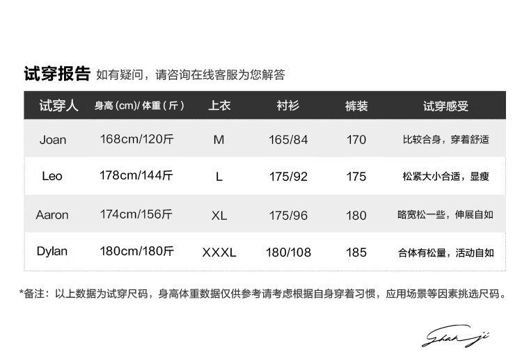 China (cm) 165 / 88-90 170 / 96-98 175 / 108-110 180 / 118-122 185 / 126-130