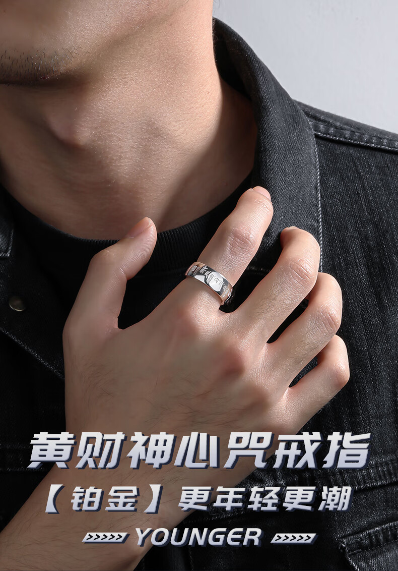 Ruofei platinum ring men's pt950 grand men's platinum ring yellow God of Wealth mantra ring solid plate ring men's wide ring platinum yellow God of Wealth mantra ring No. 28 19-20 grams